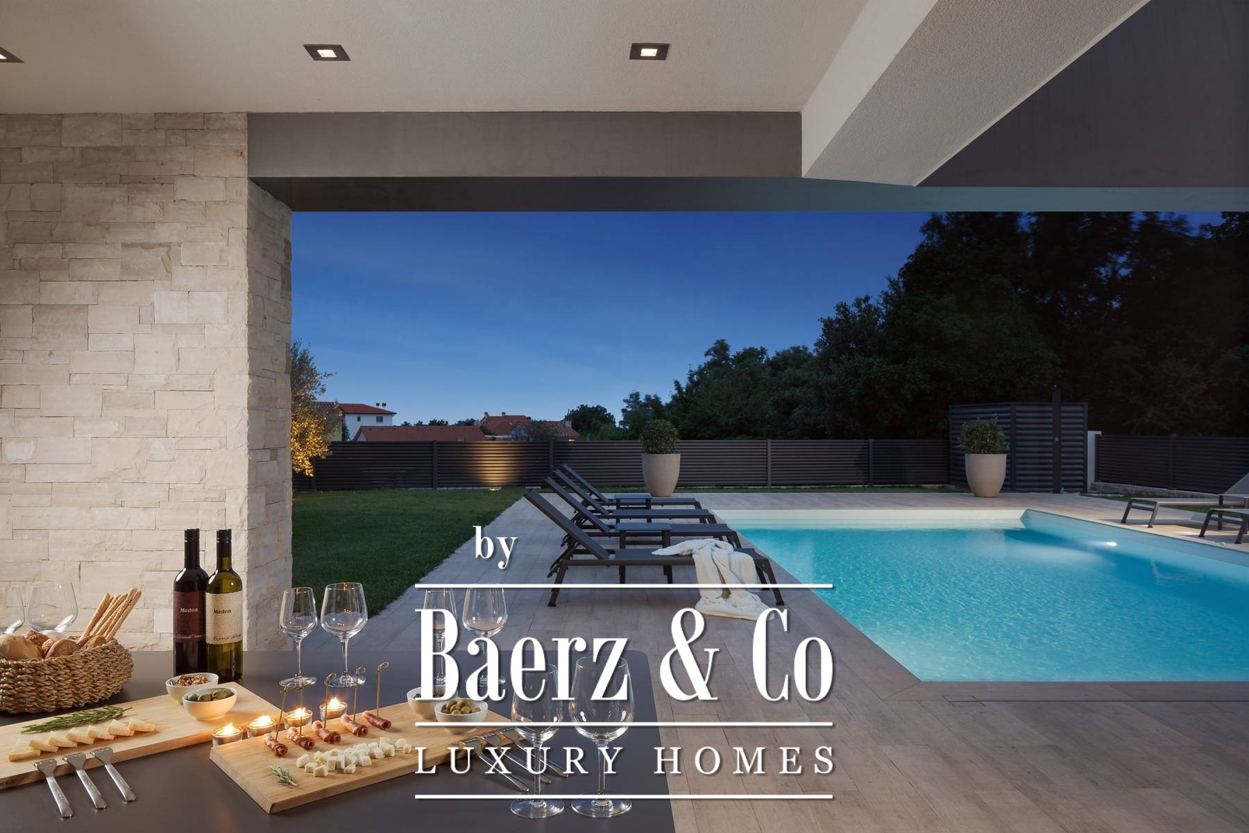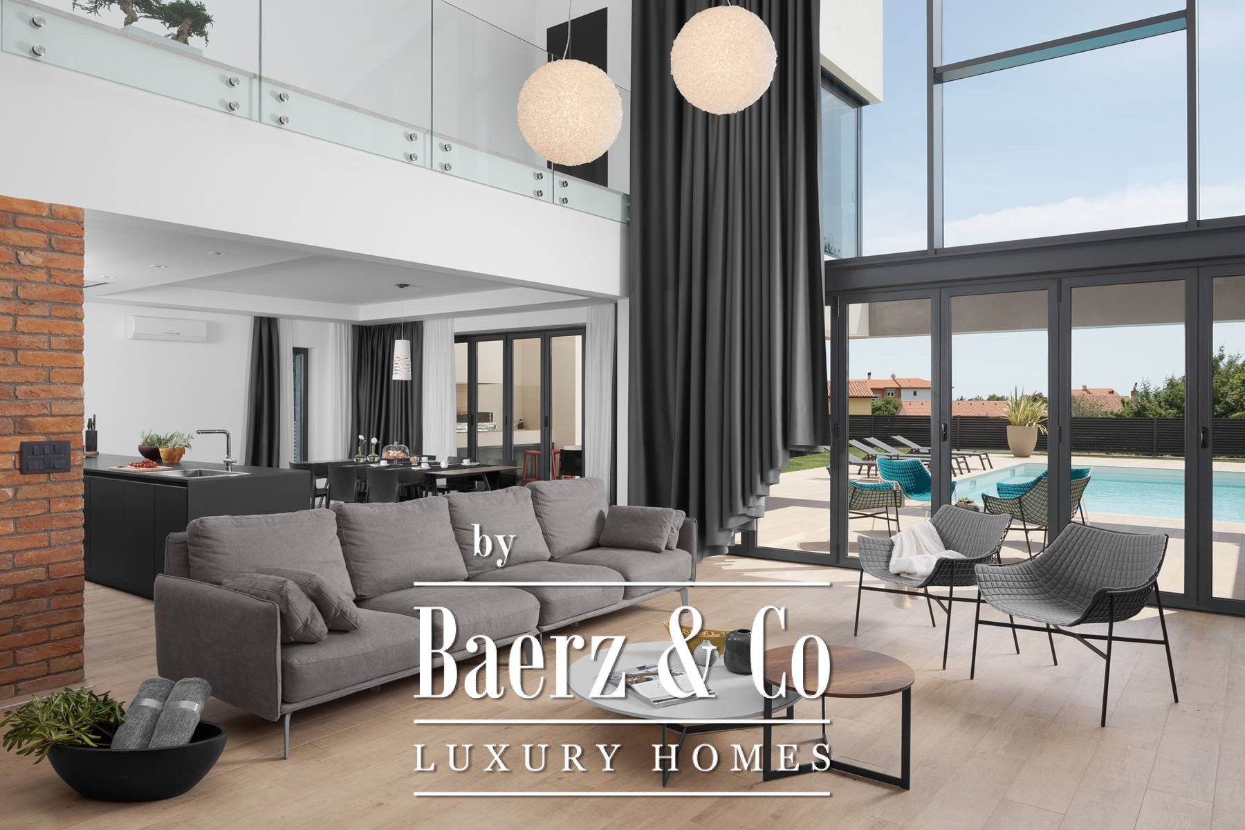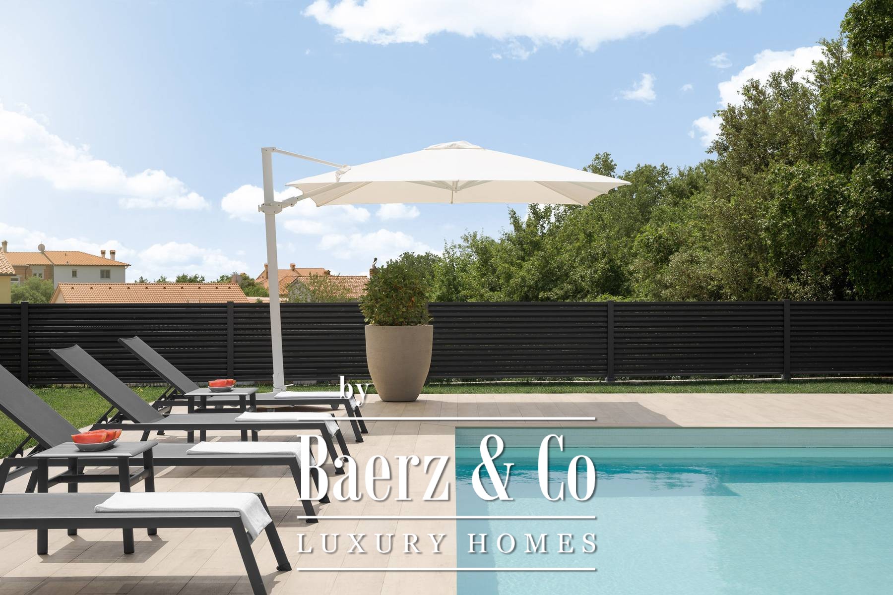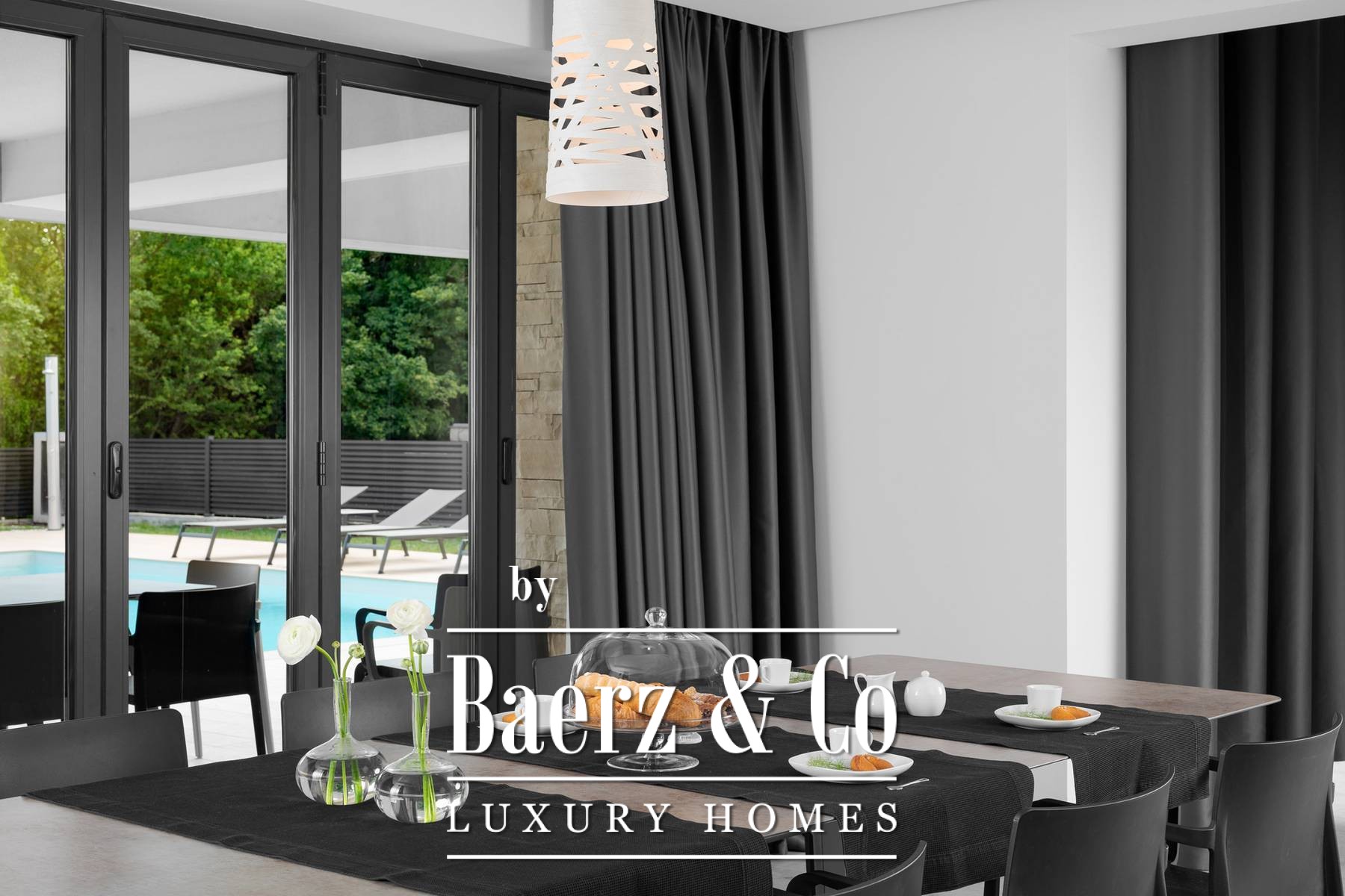 This beautiful modern villa offers large bright spaces that harmoniously integrate indoor and outdoor spaces. Designed for your enjoyment, it is filled with light, views, and a wide sense of space. An elegant hall leads to a unique space of a double-height living room, dining room, and kitchen with access to a covered terrace with a heated pool and a spacious sun deck.