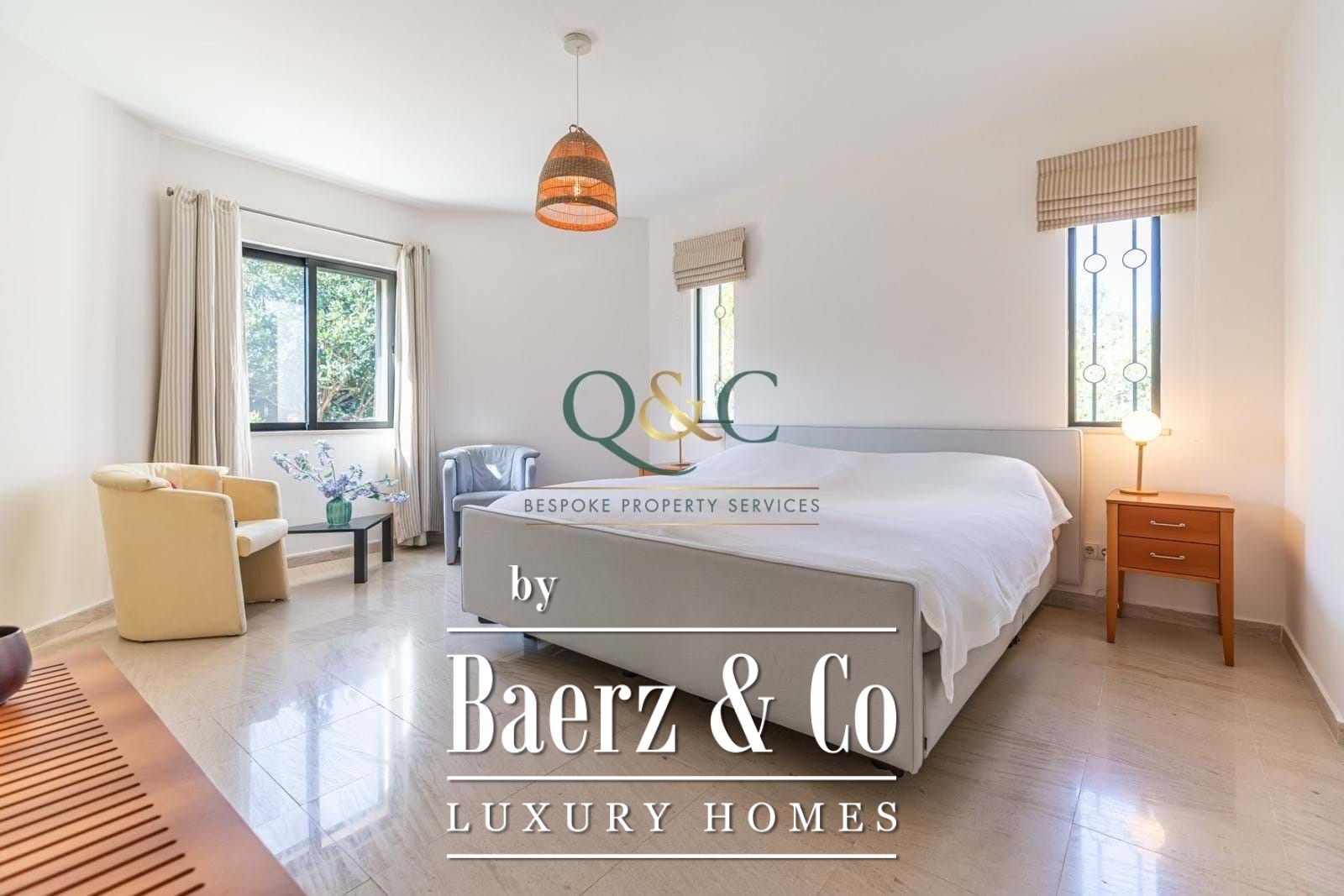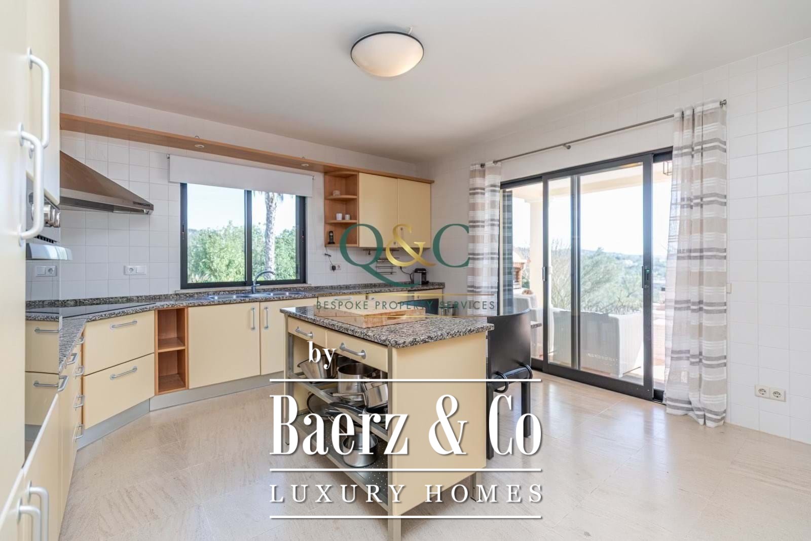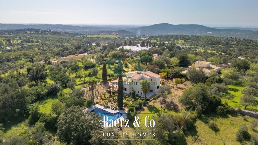 Villa Loulé biedt een zeldzame rust op slechts vijf minuten van het levendige marktstadje Loule, met betoverend uitzicht op zee en het omliggende landschap. Deze villa ligt op een perceel van 6.720 m², omgeven door volgroeide tuinen en een kenmerkende beleving van ruimte en licht. De woning van 440 m² verwelkomt u met een open woon- en eetruimte, voorzien van een sfeervolle haard en directe toegang tot het ruime terras. De keuken is ruim van opzet en volledig ingericht voor dagelijks gebruik. Op de begane grond beschikt de master suite over een royale inloopkast en wordt aangevuld door een moderne gezinsbadkamer.