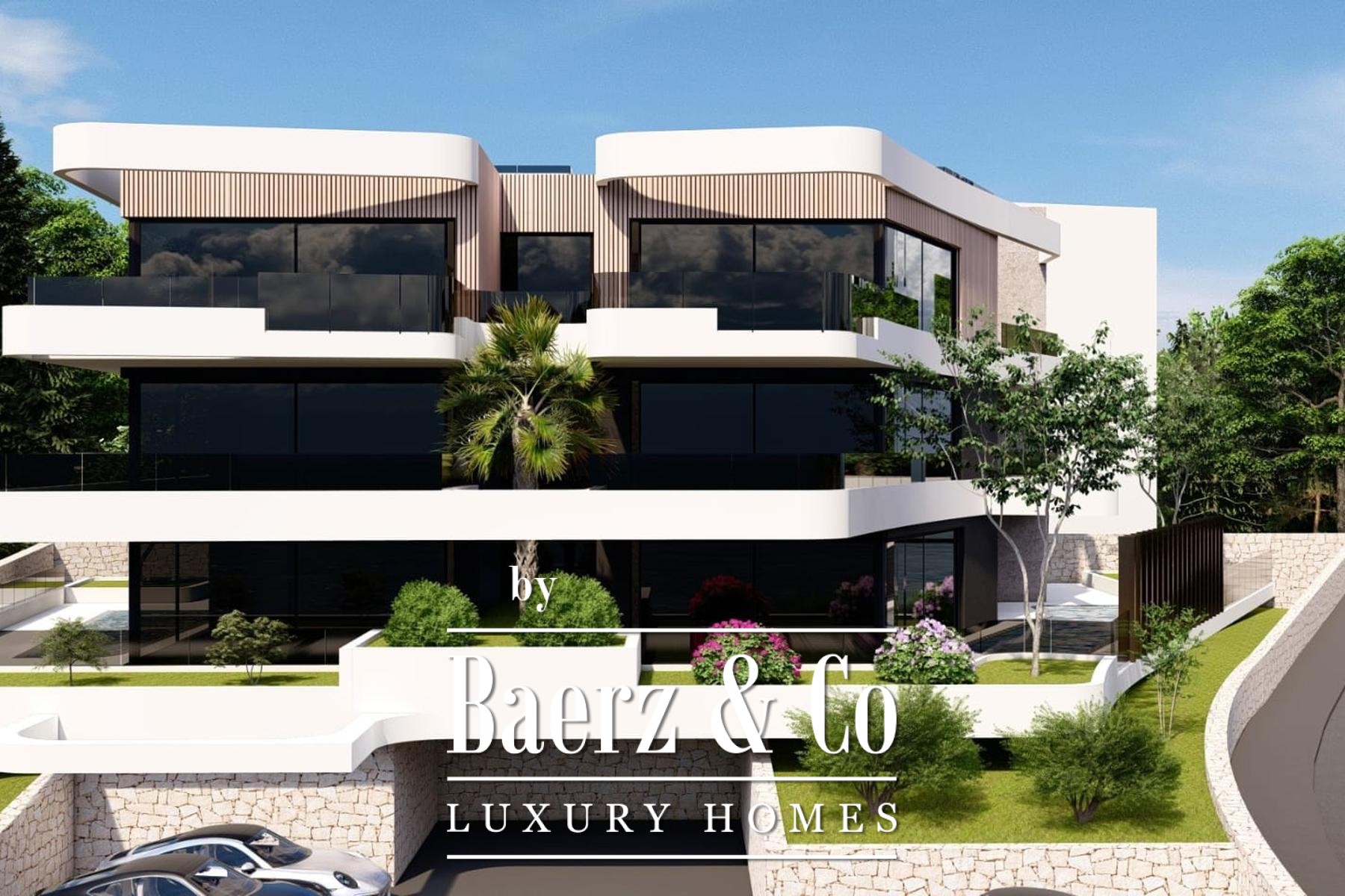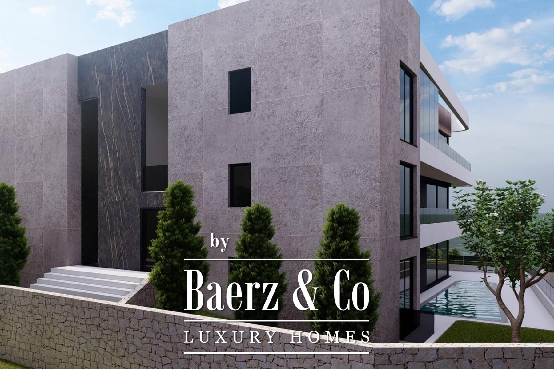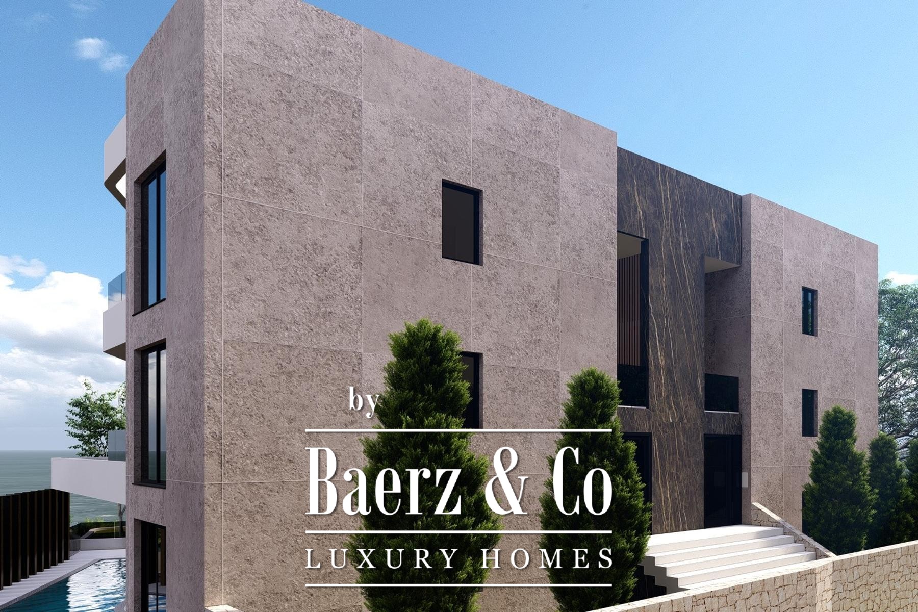 and pleasant ambience. Large glass surfaces made of top-quality Schüco joinery with double-layered glass allow for plenty of natural light and at the same time ensure excellent thermal and sound insulation. To ensure maximum comfort throughout the year, each room is equipped with air conditioning, while the heating and cooling system with a heat pump ensures optimal temperatures in all seasons. The villa's courtyard has been carefully landscaped and is complemented by a private swimming pool, ideal for relaxing and enjoying the Mediterranean surroundings. A special experience is provided by the spectacular sea view, which further contributes to the exclusivity of this property. Construction is scheduled to begin in February 2025, and completion is planned for March 2026.
