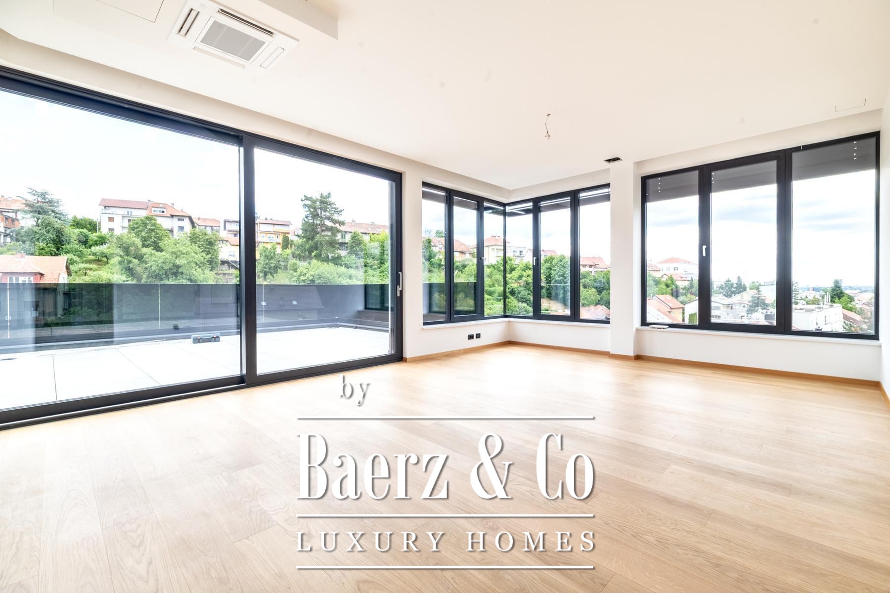 Srebrnjak, Dugi dol, NEW CONSTRUCTION, one of the most beautiful microlocations for living in the immediate vicinity of the city center. Beautiful luxury building with a total of 4 floors and 5 apartments built to the highest standards. Move-in autumn 2025.APARTMENT S5 - four-room apartment on the second floor, closed area 116,65 m2, terrace 60.15 m2, garage parking space 17.15 m2. Total calculated NKP 140,27 m2. The apartment consists of a hallway, a living room, a dining room and an open floor plan kitchen with access to the terrace, three bedrooms, two bathrooms and a guest toilet.CONSTRUCTION: Bearing reinforced concrete walls 20-25 cm thick. AB mezzanine construction. Clear floor height about 295 cm. Waterproofing and thermal insulation of flat roofs with a vapor barrier, TPO foil and EPS in the fall.PARTITION WALLS - plasterboard walls on a galvanized substructure and double GK panels with sound insulation on both sides. All interior wall surfaces of facade walls coated with double GK board and additional thermal insulation.FACADE - ETICS - EPS and stone wool 12-15 cm thick. Finishing layer Rofix. Parts of the basement in the driveway decorated with a decorative brick finish. All windows have blinds that are controlled by an electric motor.EXTERNAL JOINERY: aluminum external carpentry with interrupted thermal bridge Schüco AWS 75.SI+/AD UP 75/ADS 75.SI. Double ISO glass filled with Argon. Sliding walls on the terrace exits.JOINERY: entrance doors to apartments of burglar-proof and fire-proof design manufactured by Dierre - soundproof, interior joinery: MDF 4 mm on both sides, door frames covered with HDF against moisture, magnetic lock, hidden hinges. The height of the interior door leaf is extra-standard h=230 cm.FLOORS: three-layer oak parquet designed for