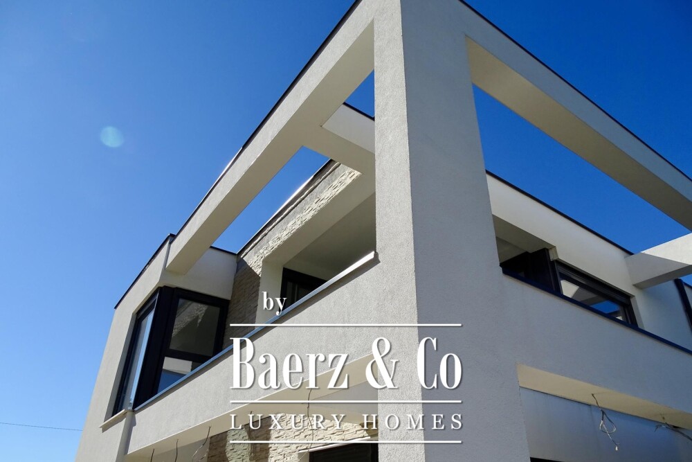 Townhouse Krk in Malinska-Dubašnica biedt een rustig gecomponeerd toevluchtsoord op het eiland Krk, ontworpen voor wie comfort en privacy waardeert. Deze moderne woning bestaat uit twee afzonderlijke appartementen, elk met een eigen entree en privé tuin, gelegen op een royaal perceel van 632 m². Samen beslaan de interieurs 260 m², met een heldere, natuurlijke lichtinval en een harmonieus lijnenspel.