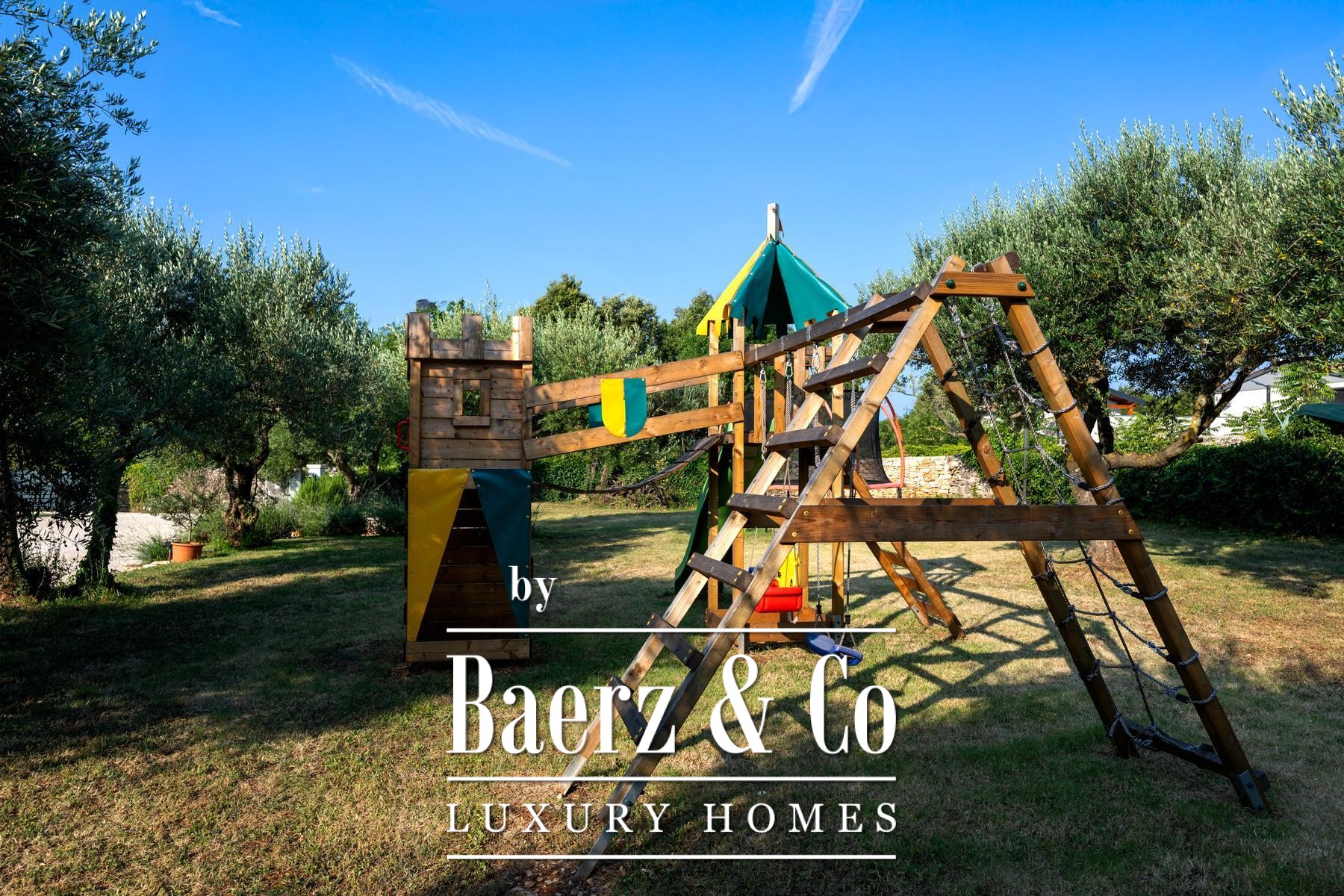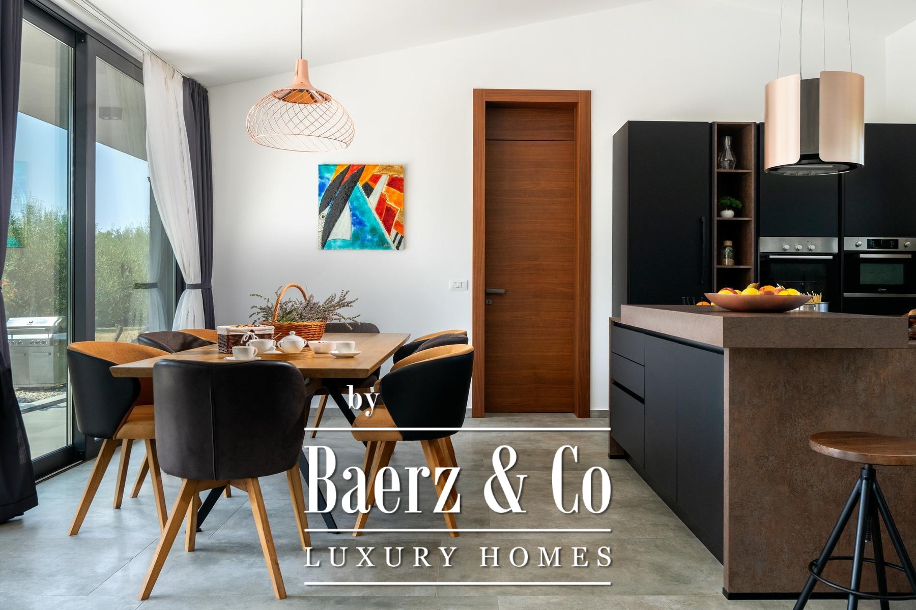 The exterior is dominated by a 50 m2 heated swimming pool (electrolysis), and those who prefer to swim in the blue Adriatic can find the nearest beach less than a kilometer away.This attractive villa with a swimming pool in Istria does not have a single superfluous detail - and those that are there give the house an additional refined impression. Its specialty is certainly the garden of 4000 m2, of which 1575 m2 is building land, which is currently adorned with about 60 olive trees.Only 2 km from the villa are the beautiful pebble beaches of Luka and Kalavojna, where you can refresh yourself in the turquoise sea. Smaller supermarkets can be reached on foot from the villa. Pula is ideal for shopping tours or larger purchases: you can reach Istria's largest city after a 30-minute drive. The nearest international airport Pula (PUY) is 21 km away.For additional information or viewing, feel free to contact us.