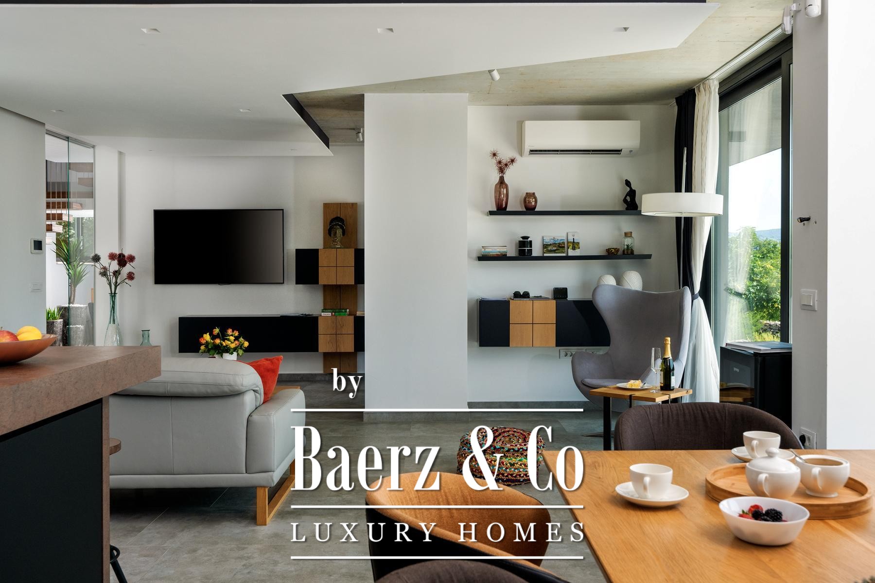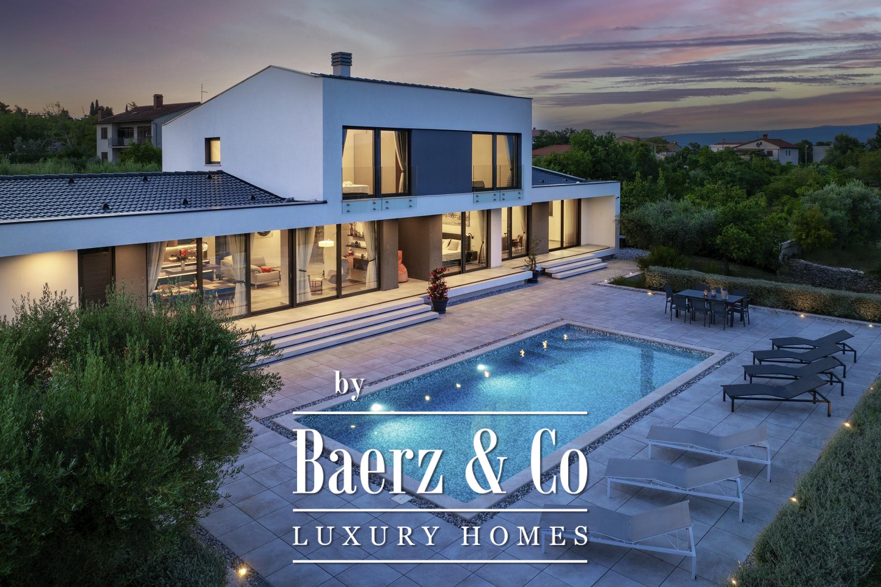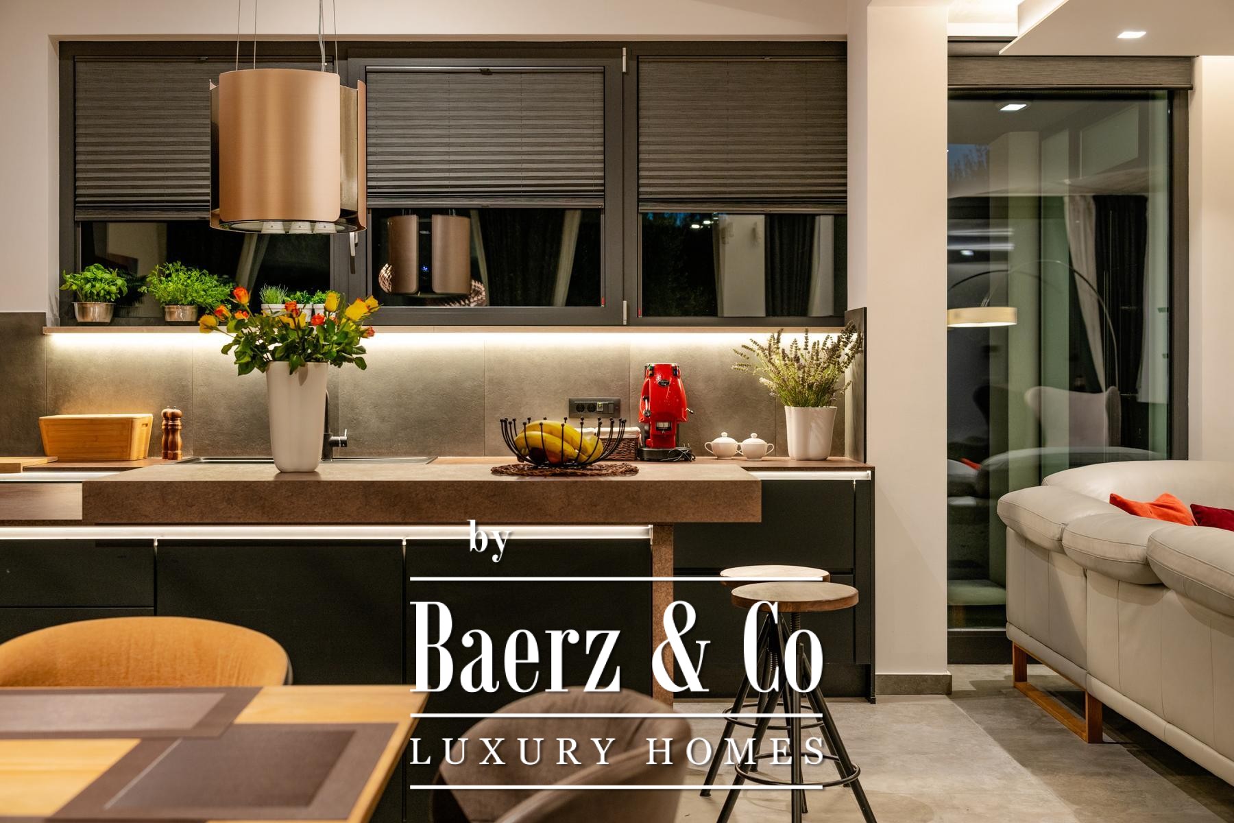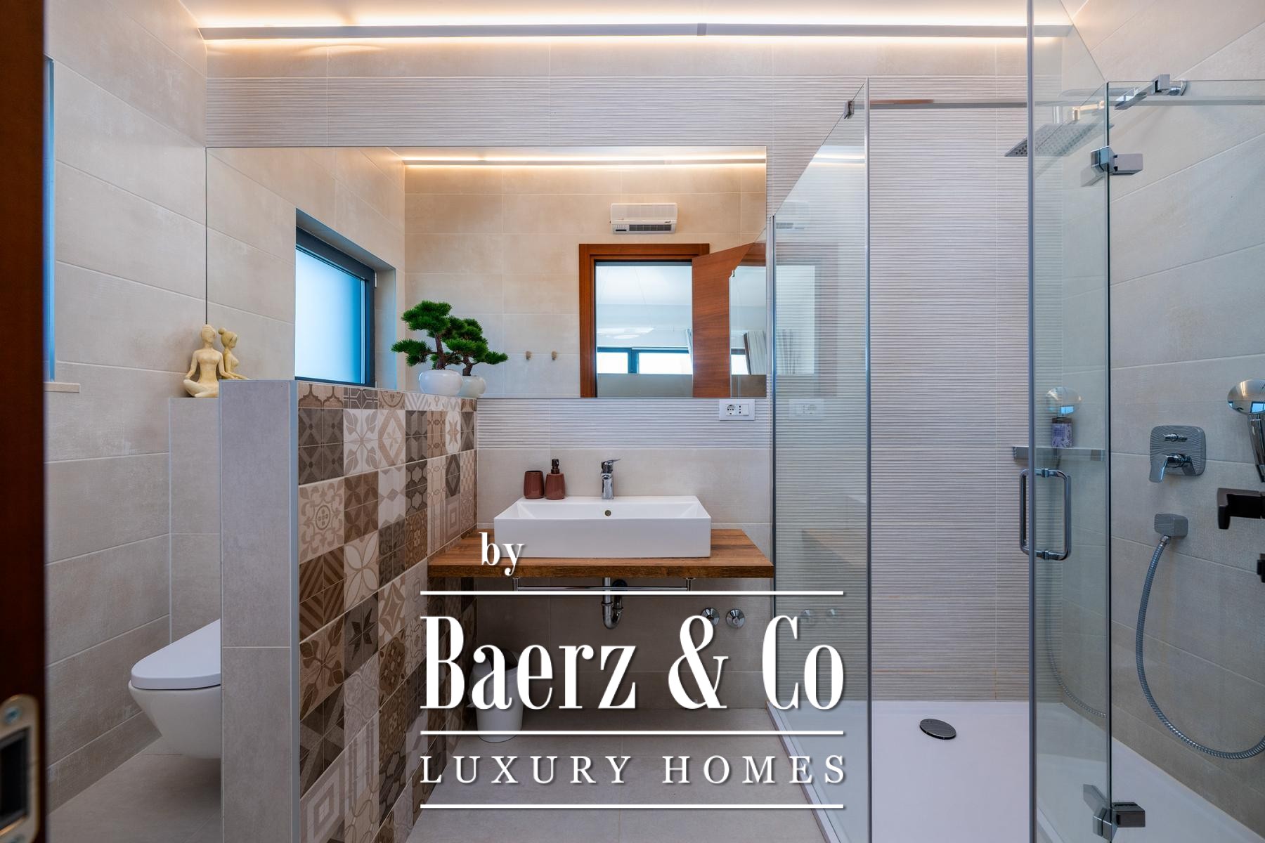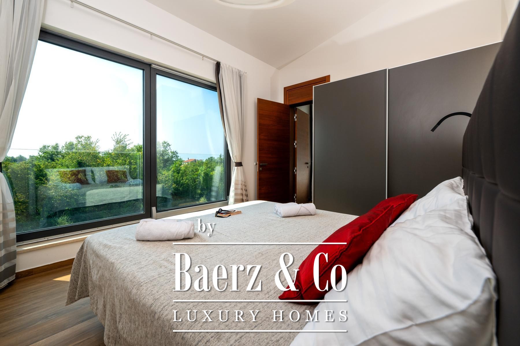 We are proud to present an ultra-modern villa located on the east coast of Istria between the popular cities of Labin and Pula. This stunning modern villa with a total area of 350 m2 is located in a quiet village, on a plot of land of up to 4000 m2. It is very exclusive and stylistically balanced.The heart of the villa lies in its open-concept living space, where the fully equipped Celine kitchen, dining room, and living room blend seamlessly. The ground floor, decorated with a large glass wall, offers a unique dining experience with a picturesque view of the pool and greenery - a perfect blend of sophistication and nature. On the ground floor, there are also 2 bedrooms, each with its bathroom and access to the swimming pool and sunbathing area, a laundry room and toilet, and a playroom that has all the necessary installations for a Wellness oasis. Ascending an elegant solid wood staircase to the first floor, we are greeted by a gallery, perfect for those looking for a quiet workspace. On this level, there are two more bedrooms, each with its bathroom, with a beautiful view of the greenery and Učka. The rooms on the first
