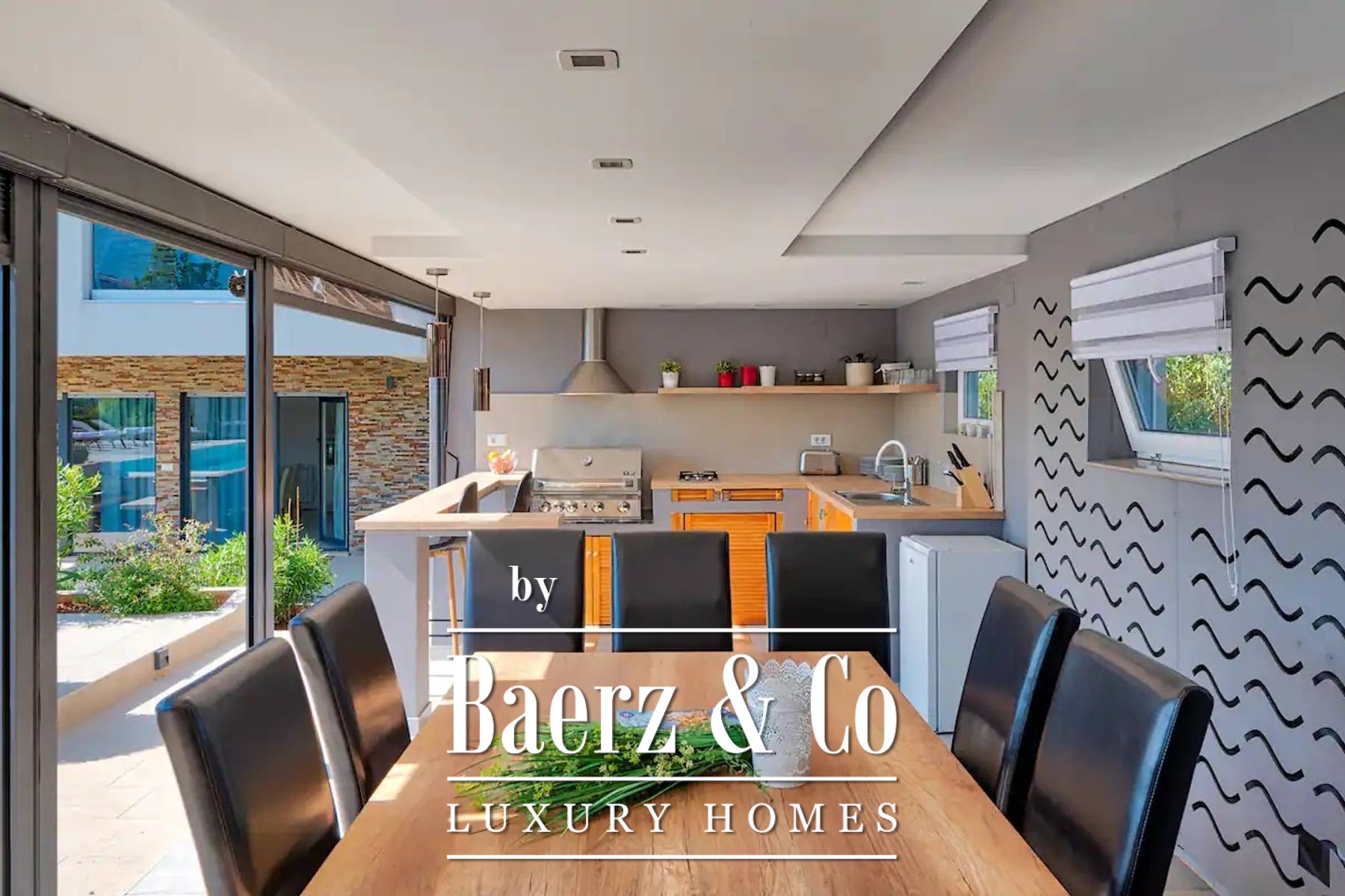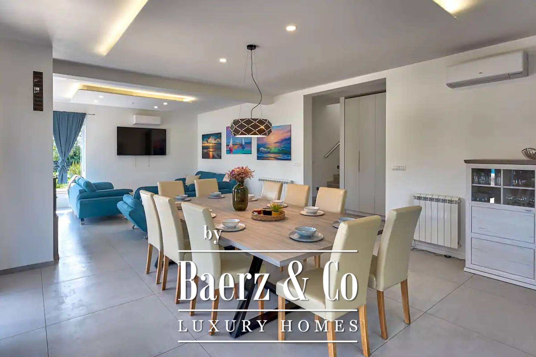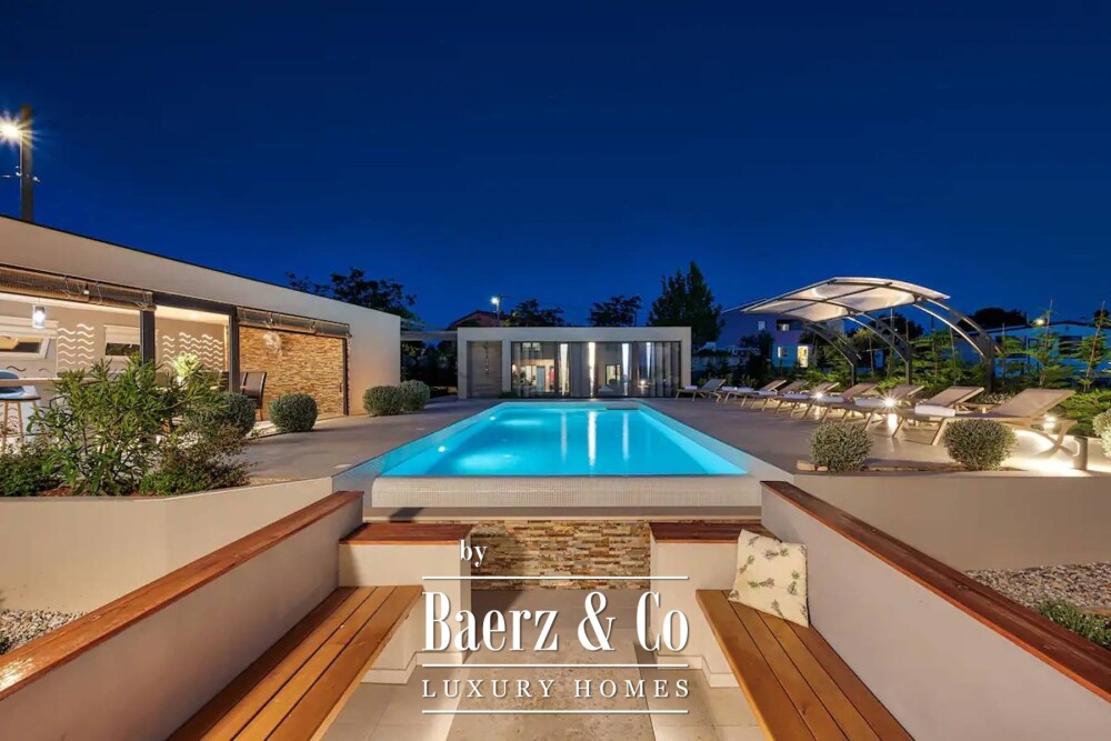 Villa Rakalj in Marčana, Kroatië, biedt een weloverwogen balans tussen moderniteit en rust. Deze villa beschikt over een woonoppervlakte van 315 m² in een serene omgeving, omgeven door een royaal perceel van 1.150 m². De architectuur staat in het teken van openheid, met veel natuurlijk licht in alle zes de slaapkamers en badkamers, en een beheerste, verfijnde sfeer door het hele huis. Twee zorgvuldig ingerichte keukens versterken het dagelijkse comfort en faciliteren zowel intieme bijeenkomsten als feestelijke momenten.