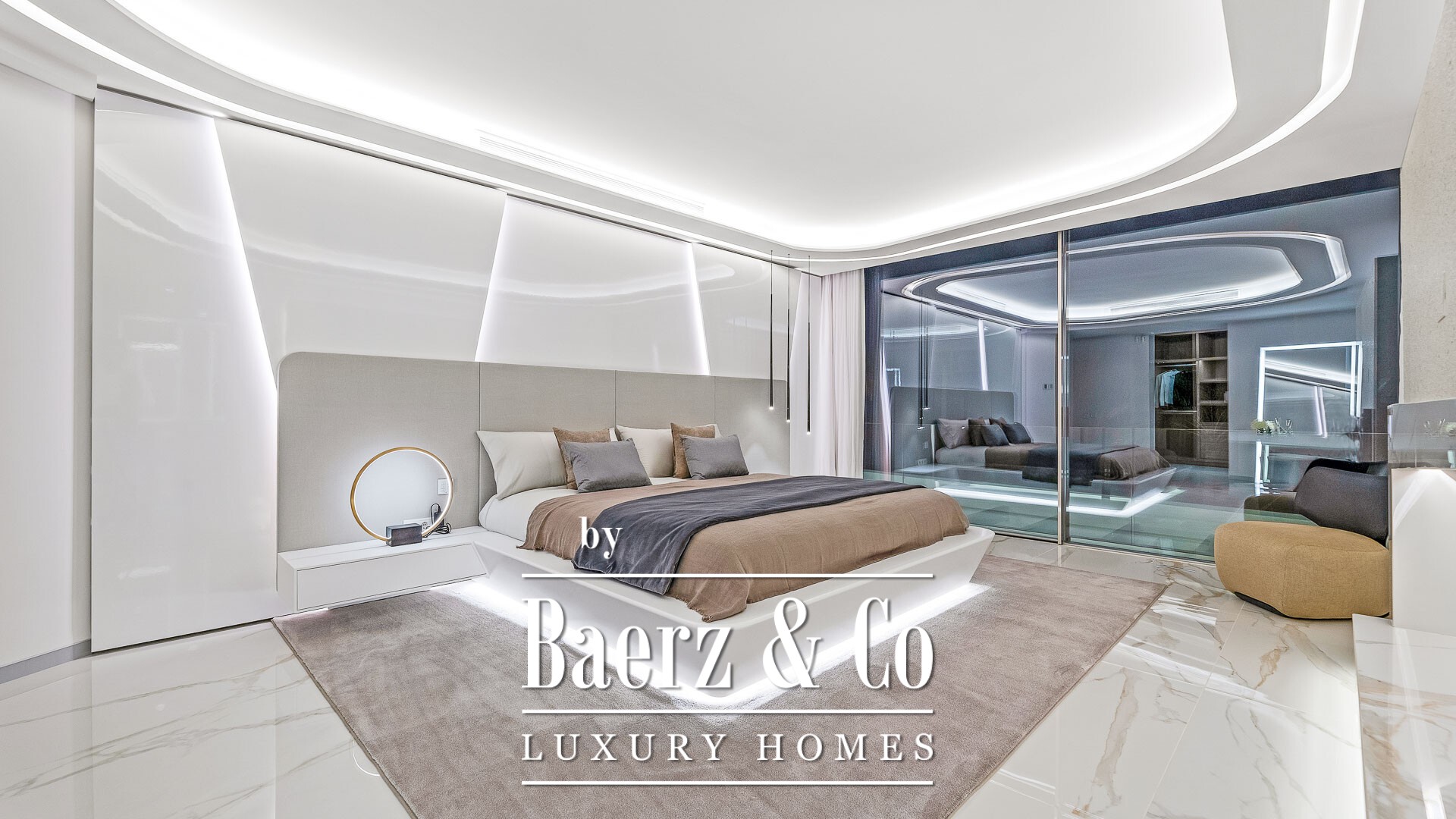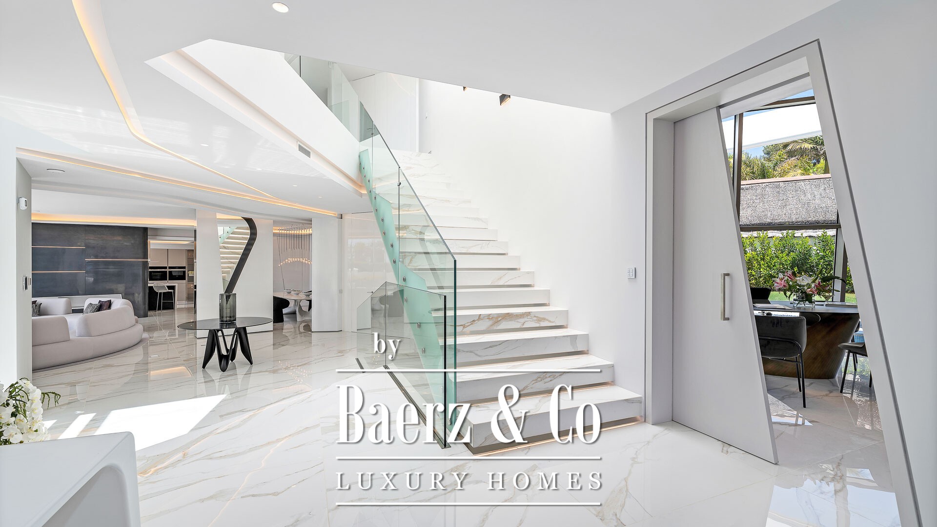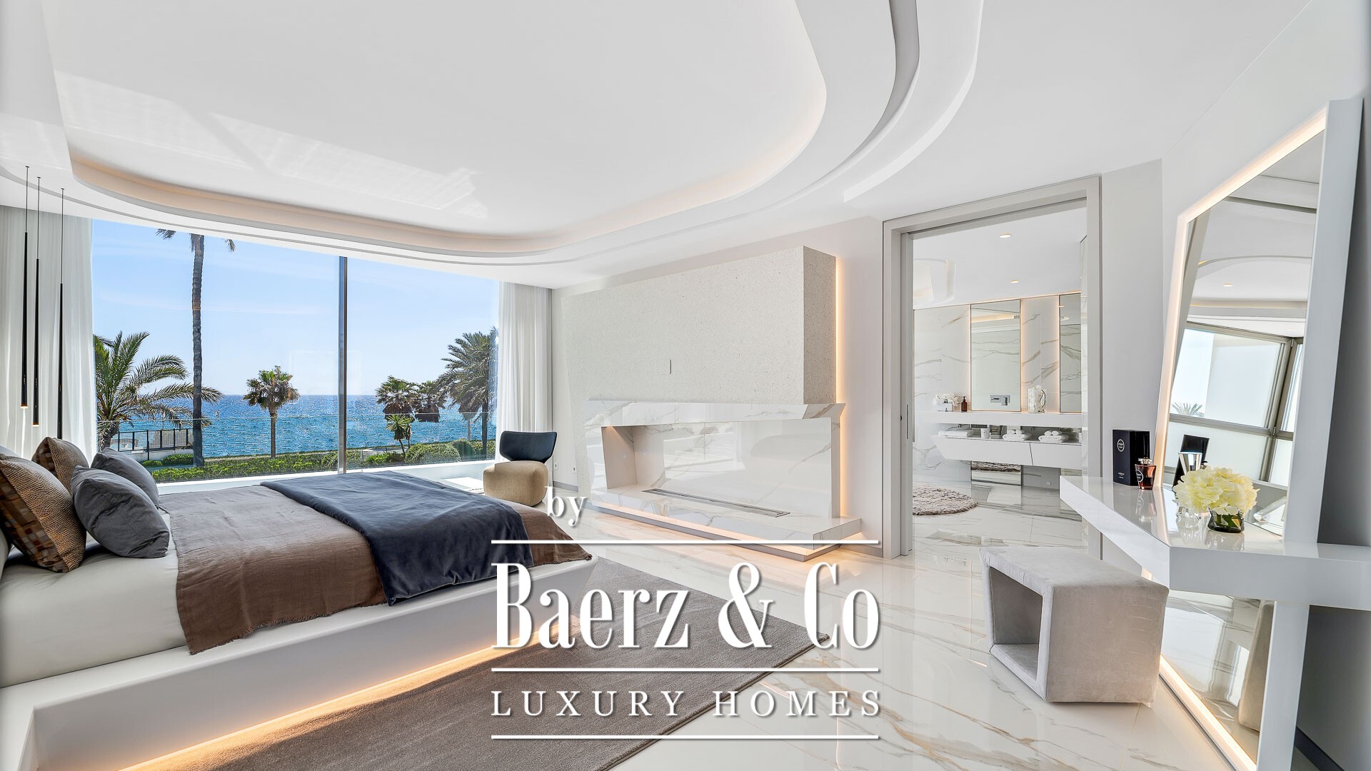 This architectural masterpiece boasts exquisite design and luxurious finishes throughout. As you step inside through the grand entrance hall, you are immediately greeted by the open-plan living and dining area, seamlessly connected to a partially enclosed kitchen. From here, you can access the marvelous terrace, offering panoramic views of the glistening sea. On the same floor, a master bedroom suite awaits, providing a haven of tranquillity and indulgence. Adjacent to it, you'll find a unique office space with a modern boat-style design, featuring double-height ceilings and surrounded by water—an inspirational setting for your work or creative endeavors. Additionally, there is a guest toilet for added convenience. To effortlessly move between levels, a private lift is at your service, granting access to the basement or the first floor. The basement is bathed in natural daylight and features a state-of-the-art garage capable of accommodating up to 5 cars. Furthermore, there is an additional bedroom and a versatile multi-use room that can be transformed into a private gym, sauna, bar, or home cinema, catering to your personal desires. Completing the basement are a laundry room, a storage room, and a spacious technical room. Ascending to the first floor, you will discover three out of the four en-suite bedrooms, each offering breath-taking views of the sea. The master suite on this level is a true embodiment of luxury and space, providing the utmost comfort and serenity. A crowning jewel of this extraordinary property is the rooftop terrace, where you can unwind and bask in pure bliss. Immerse yourself in the Jacuzzi pool or lounge on the expansive decking areas, all enclosed with glass walls that guarantee uninterrupted vistas of the sea, Africa, Gibraltar, and the Bay of Marbella. Notable features of this prestigious villa include under-floor heating throughout the property, an advanced alarm system, 24-hour security for peace of mind, and a cutting-edge home automation system. Moreover, you will enjoy direct access to the beach, allowing you to relish the sun, sand, and sea at your leisure.