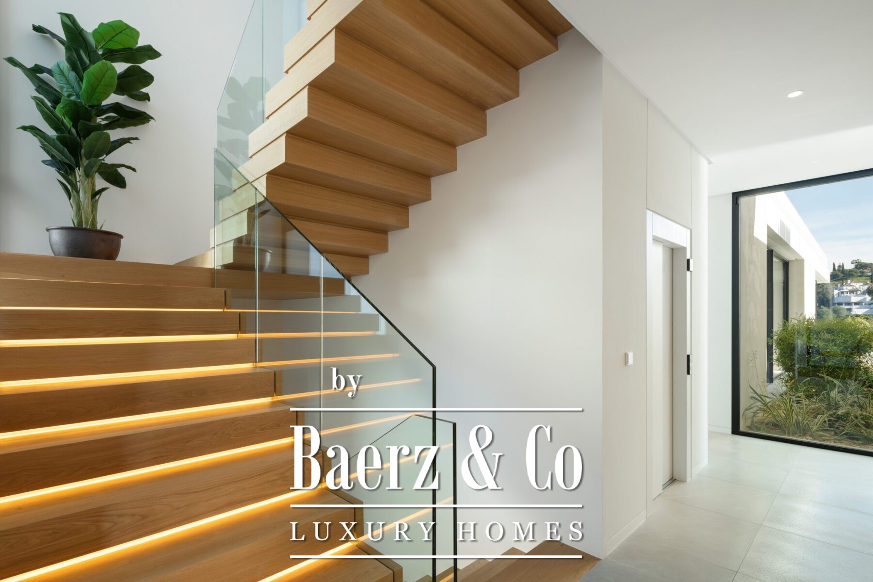 Binnen de beveiligde community genieten bewoners van 24-uursbeveiliging, rust en een gevoel van verbondenheid. El Madroñal ligt op enkele minuten van de kust van Marbella, terwijl het natuurpark Sierra de las Nieves, toonaangevende golfbanen en de befaamde gastronomie van Benahavís binnen handbereik zijn. Essentiële voorzieningen, internationale scholen en boetieks in San Pedro de Alcántara en Puerto Banús zijn makkelijk bereikbaar. Deze villa, ideaal gepositioneerd in Marbella, vormt een toevluchtsoord waar modern design en natuurlijke rust het decor scheppen voor een sublieme levensstijl.