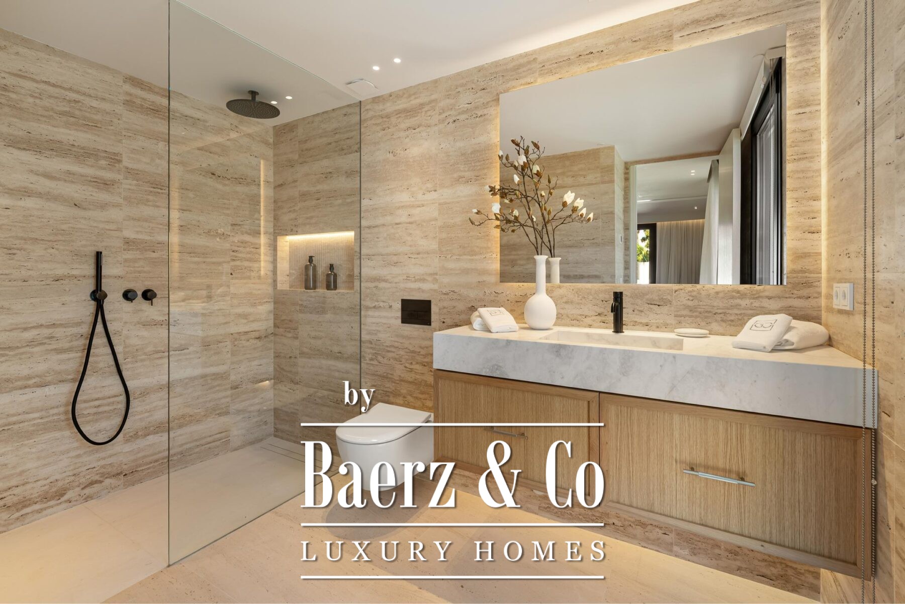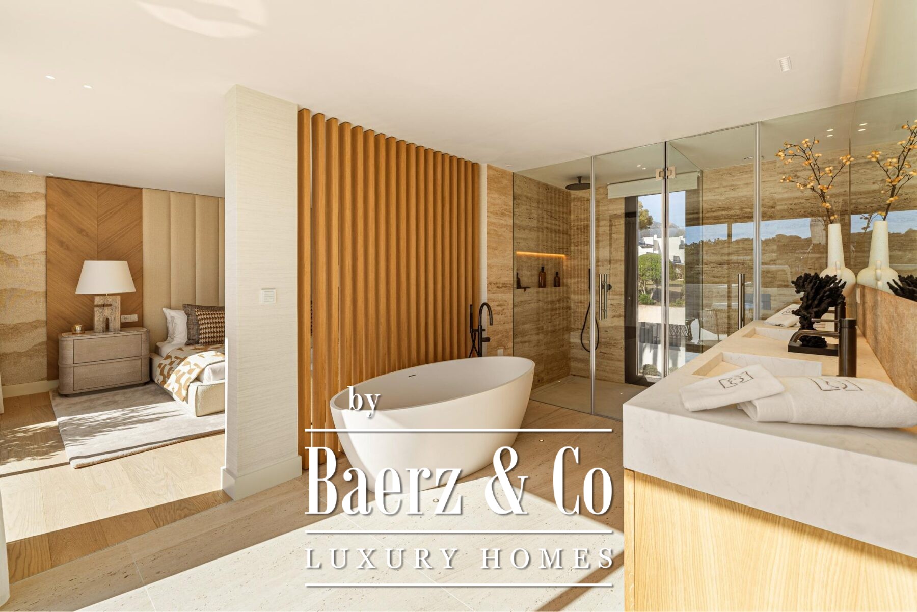 Architecture and interiors reflect a refined balance of innovation and tradition. The construction was done by large Spanish builders with impeccable craftsmanship, while the lush landscaping enhances the villa’s ambiance. Advanced home installations were executed by Techno Clima, ensuring the highest standards in comfort and efficiency.
