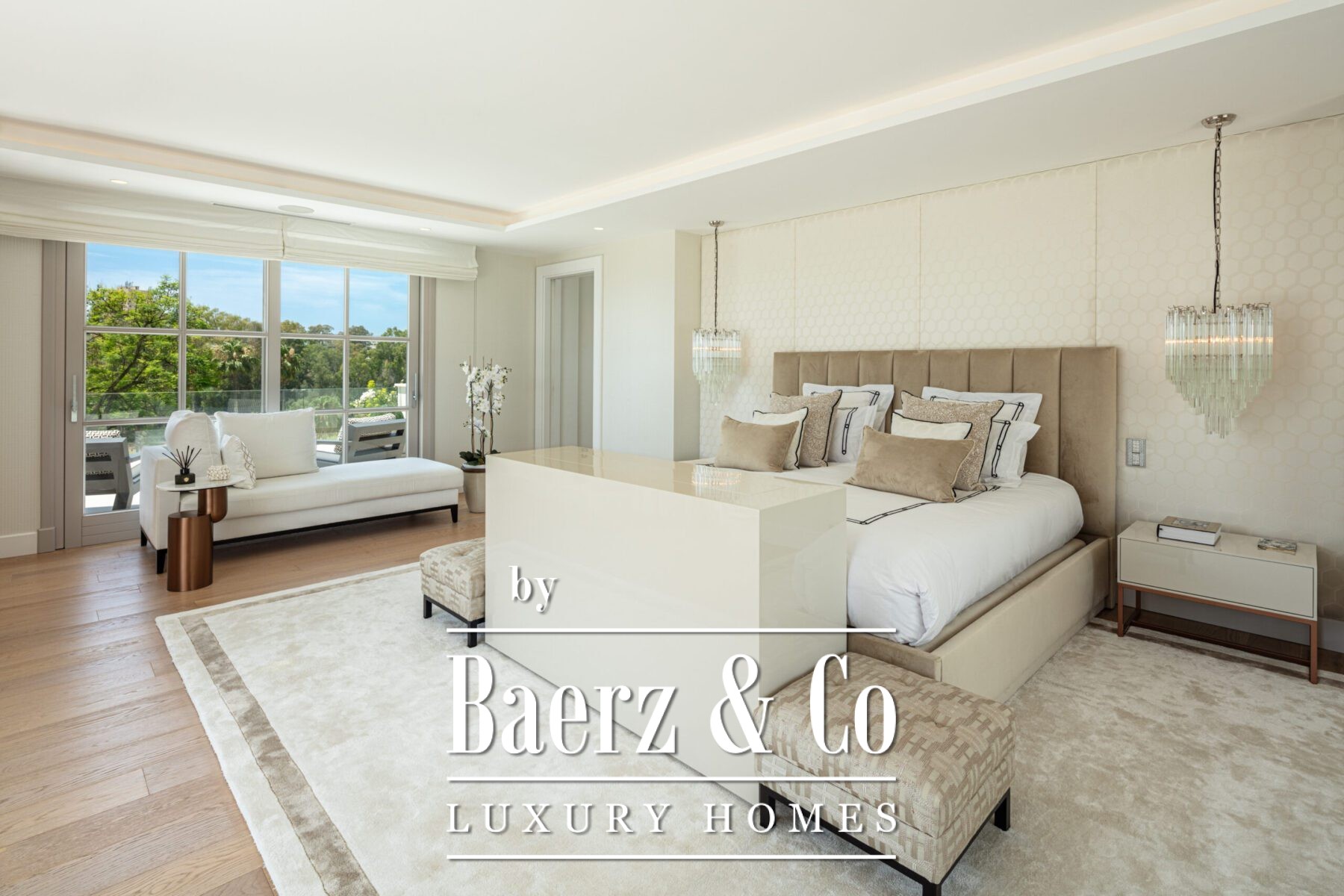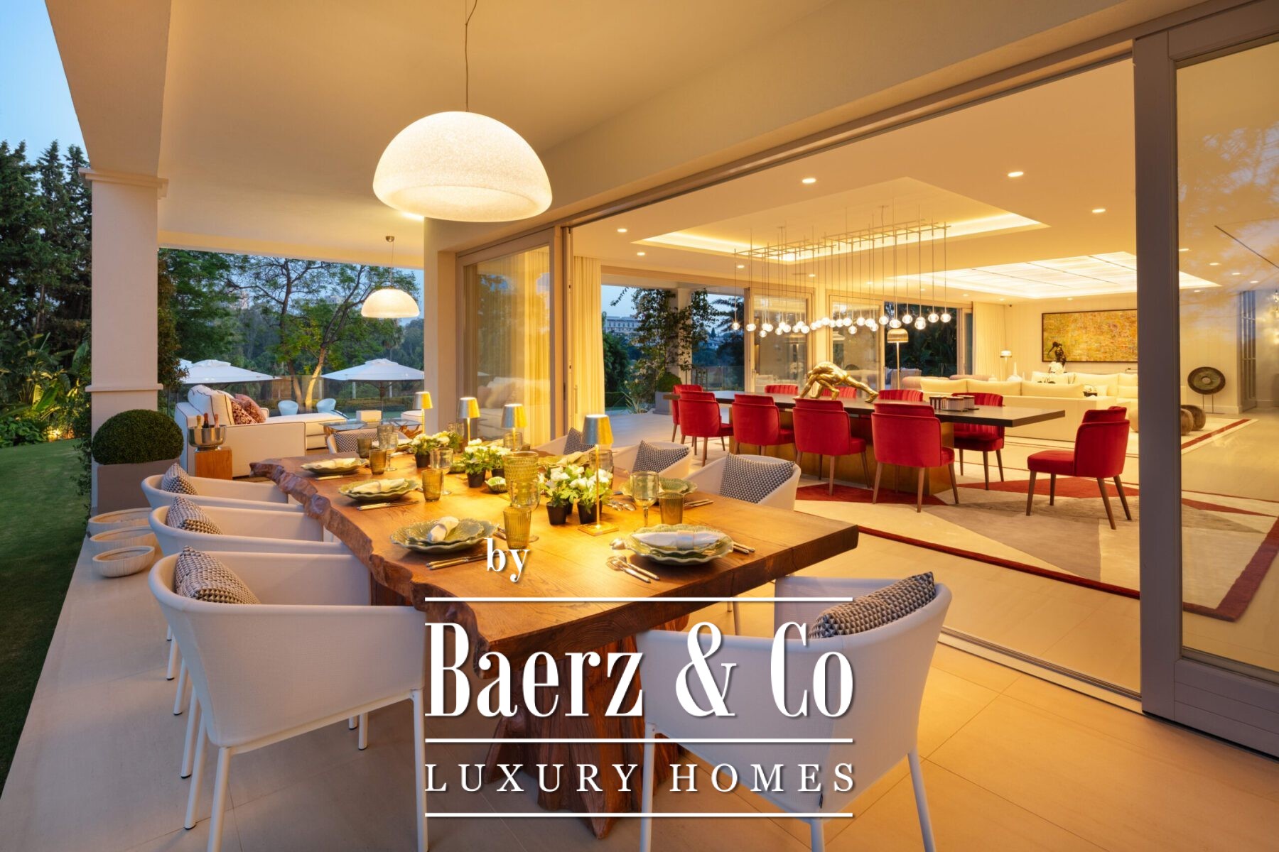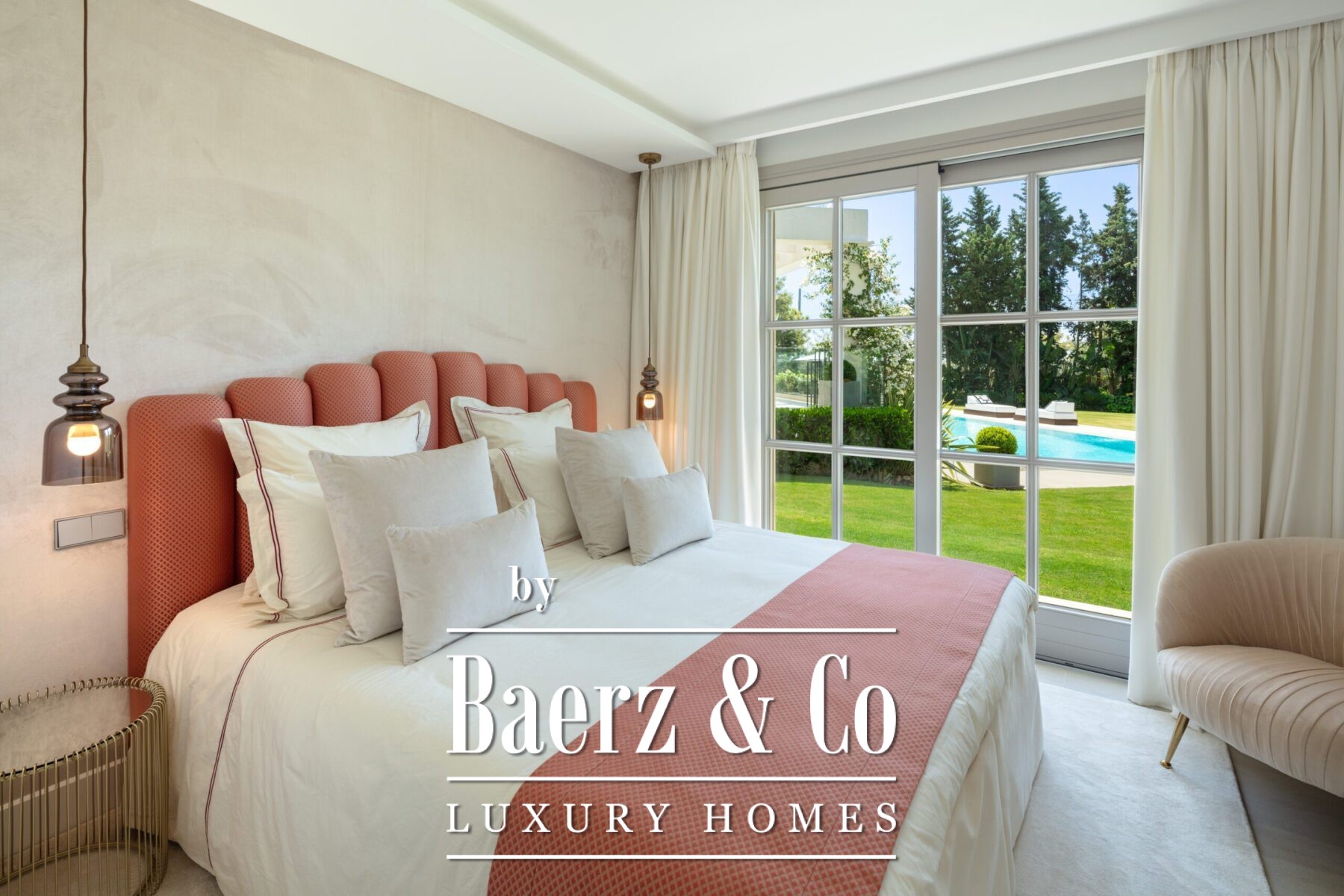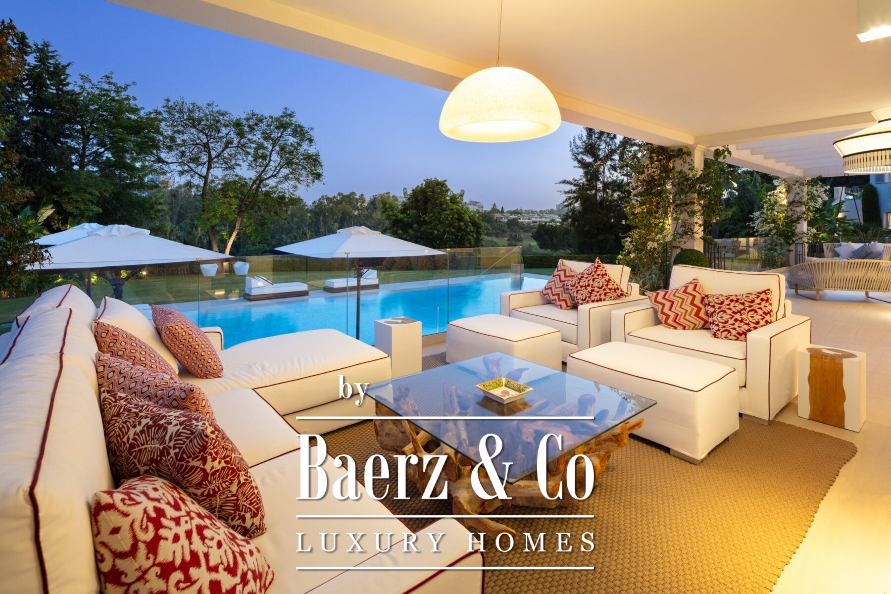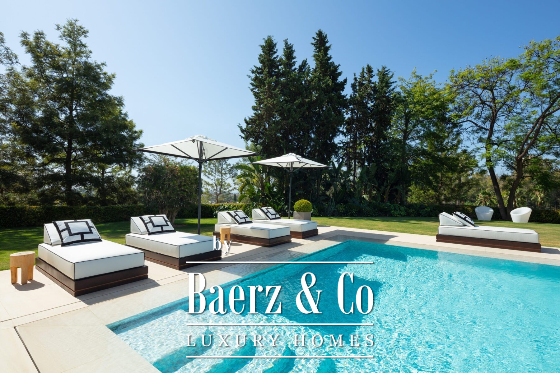 The property comprises a main residence with 5 generously sized bedrooms, including a luxurious master suite with a dressing room. The bedrooms exude individuality with their distinct touches, yet their cohesiveness is a testament to the clever design decisions. There is a separate 1-bedroom guest house, perfect for accommodating staff or visitors. The allure of this property lies in its enchanting outdoor areas, where a lush green garden and spacious terraces offer the ideal setting for enjoying Marbella's perfect climate throughout the year. The verdant surroundings of the main house are adorned with greenery, which seamlessly blends with the other green areas of the property. This unique mansion boasts spectacular views and luxurious amenities, making it an unparalleled gem in the highly sought-after area of Marbella.