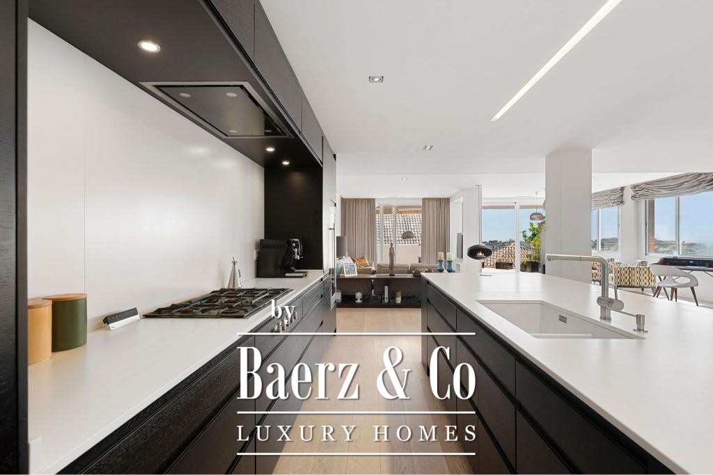 De hoofdverdieping kenmerkt zich door een open ontwerp met een high-end keuken voorzien van premium Gaggenau-apparatuur, een riante woonkamer en een stijlvolle eetruimte. Hoogwaardige houten vloeren, elektrische rolluiken, een geavanceerd alarmsysteem en een lift onderstrepen het samenspel van elegantie en functionaliteit. Twee ondergrondse parkeerplaatsen en twee bergingen verhogen het dagelijkse gemak.