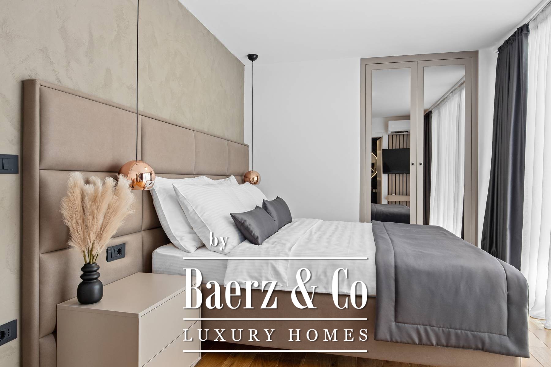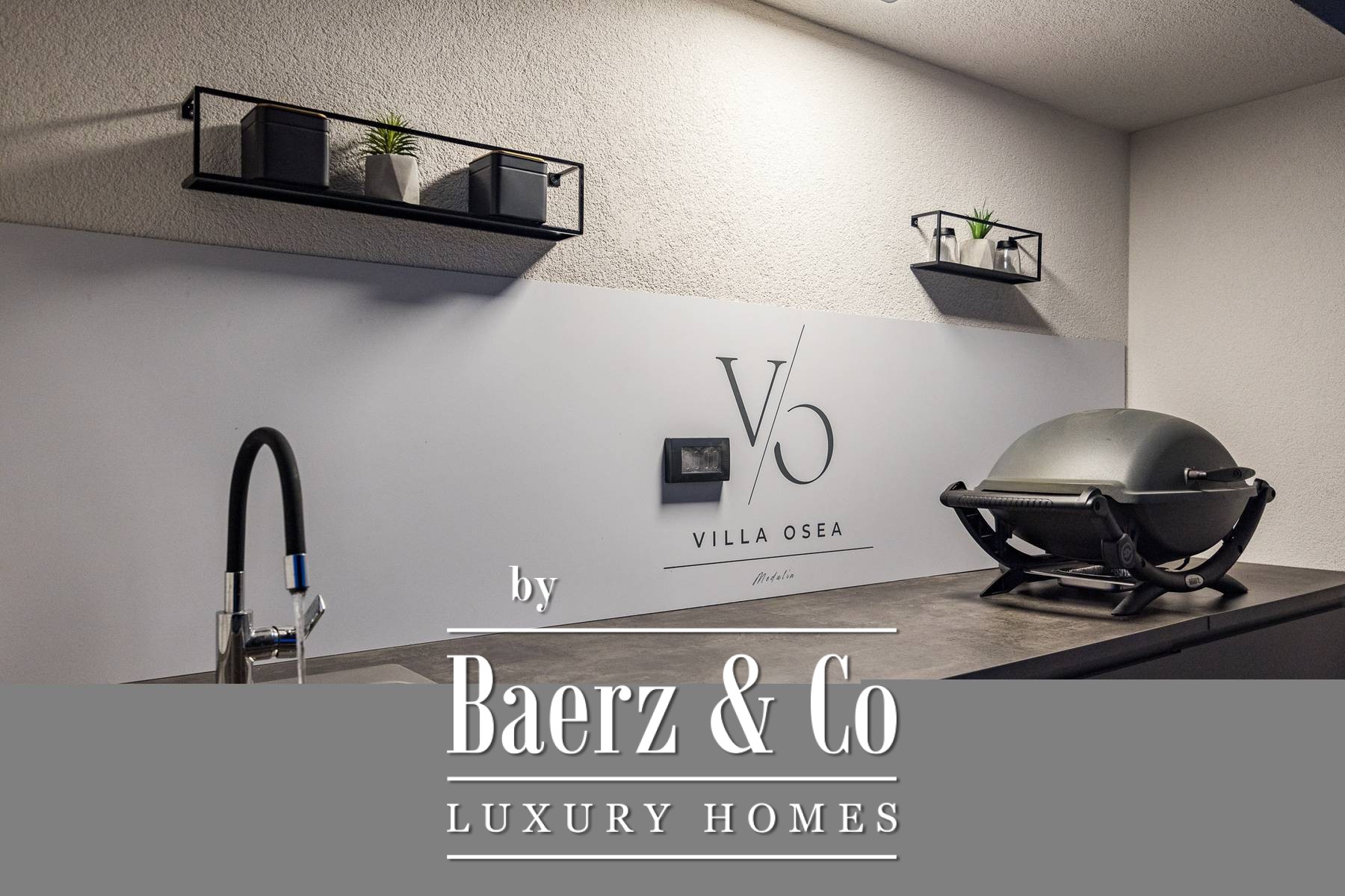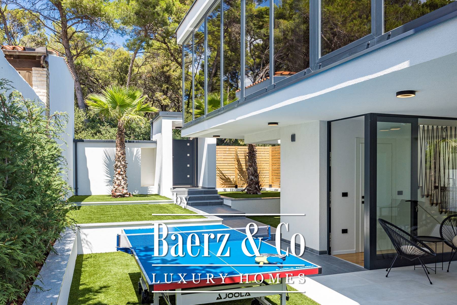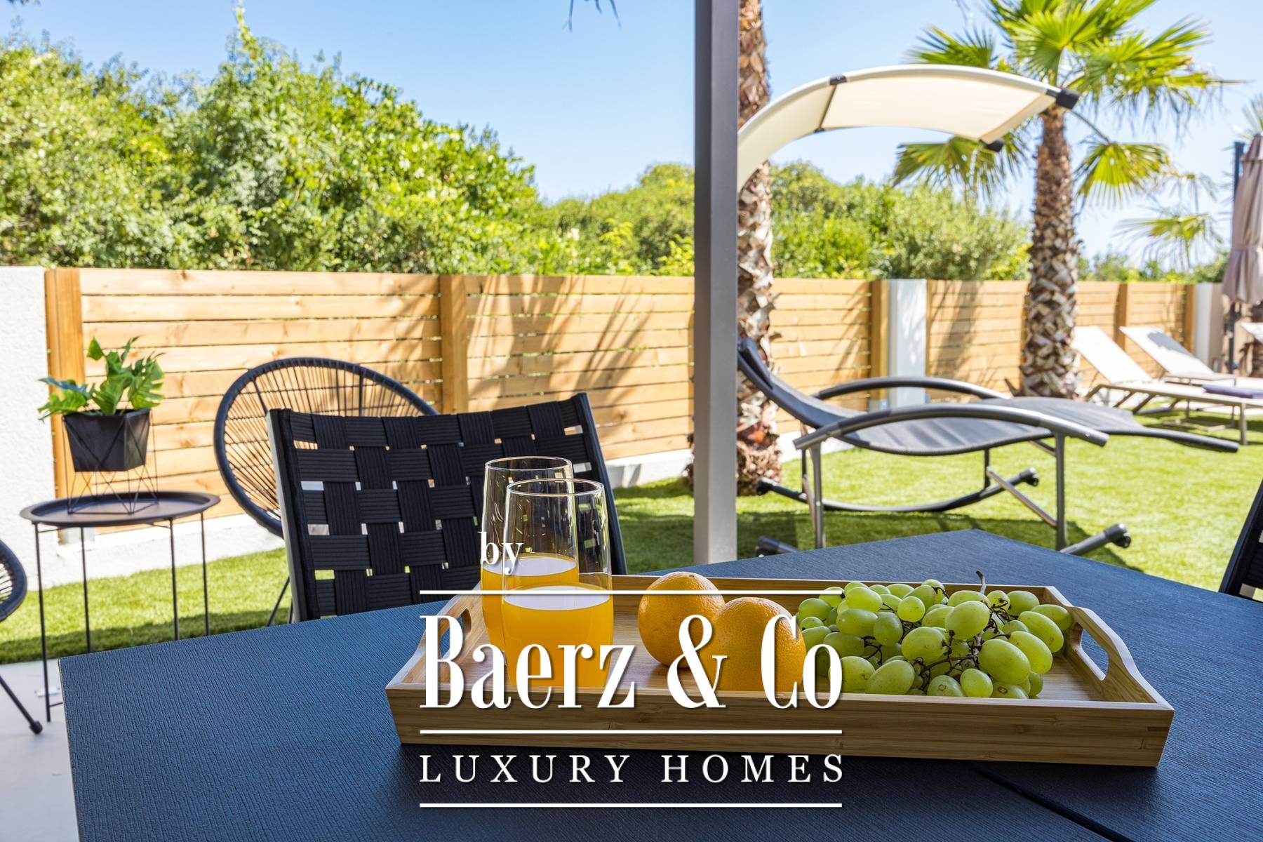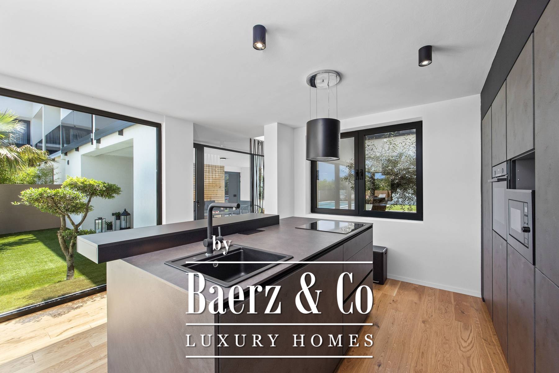 In Medulin, one of the most attractive tourist destinations, there is this modern meticulously decorated semi-detached villa NKP 220 m2.The villa is located in a quiet part of Medulin. It extends over 500 m2 of garden and is spread over two floors.The ground floor is dominated by a large and bright living room, a beautiful electric fireplace, an aluminum sliding wall with access to the 40 m2 pool that can be used even during the winter.Modern Dan Kuhen kitchen fully equipped. An internal staircase leads to the first