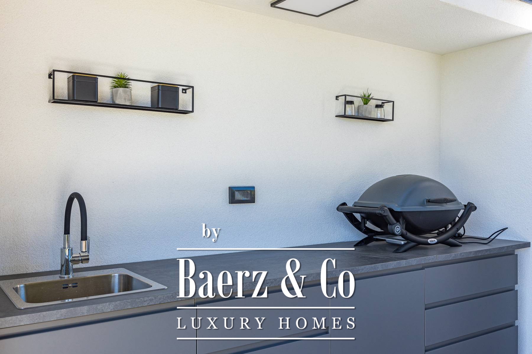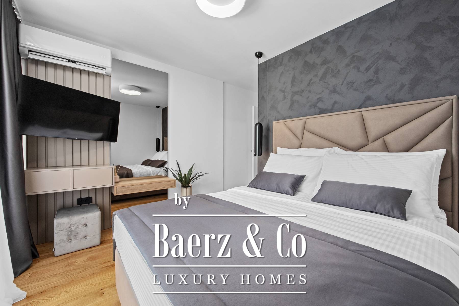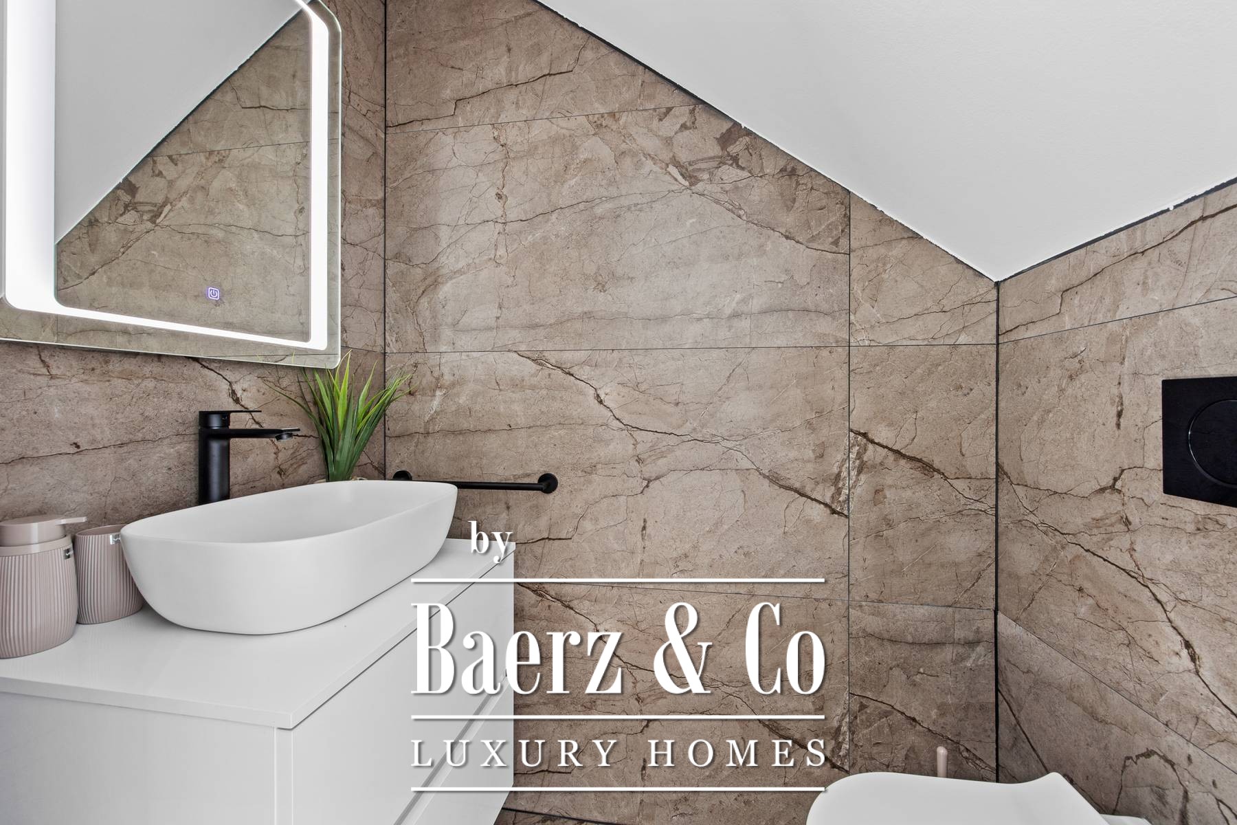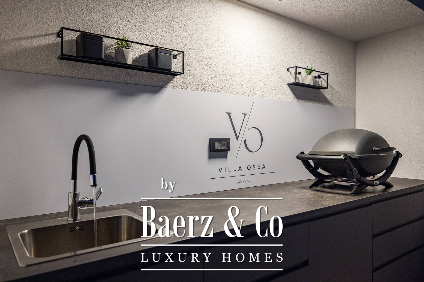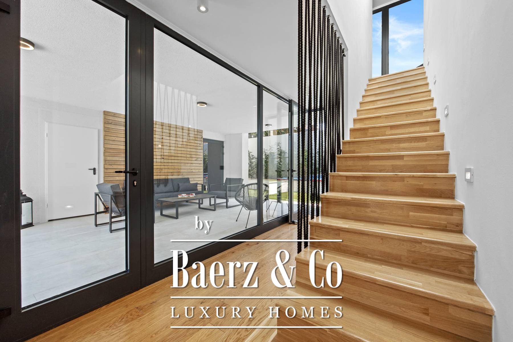 In Medulin, one of the most attractive tourist destinations, there is this modern meticulously decorated semi-detached villa NKP 220 m2.The villa is located in a quiet part of Medulin. It extends over 500 m2 of garden and is spread over two floors.The ground floor is dominated by a large and bright living room, a beautiful electric fireplace, an aluminum sliding wall with access to the 40 m2 pool that can be used even during the winter.Modern Dan Kuhen kitchen fully equipped. An internal staircase leads to the first