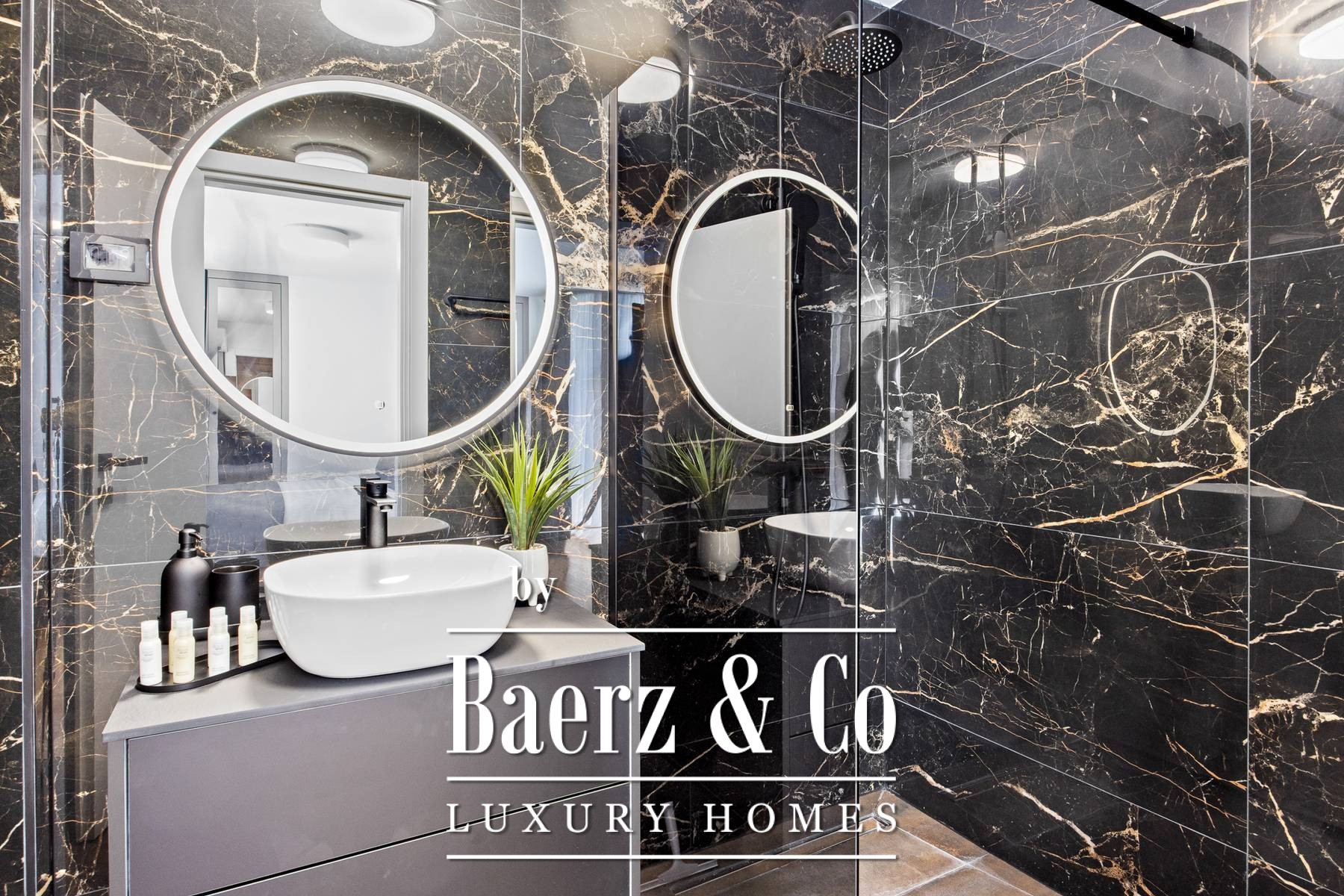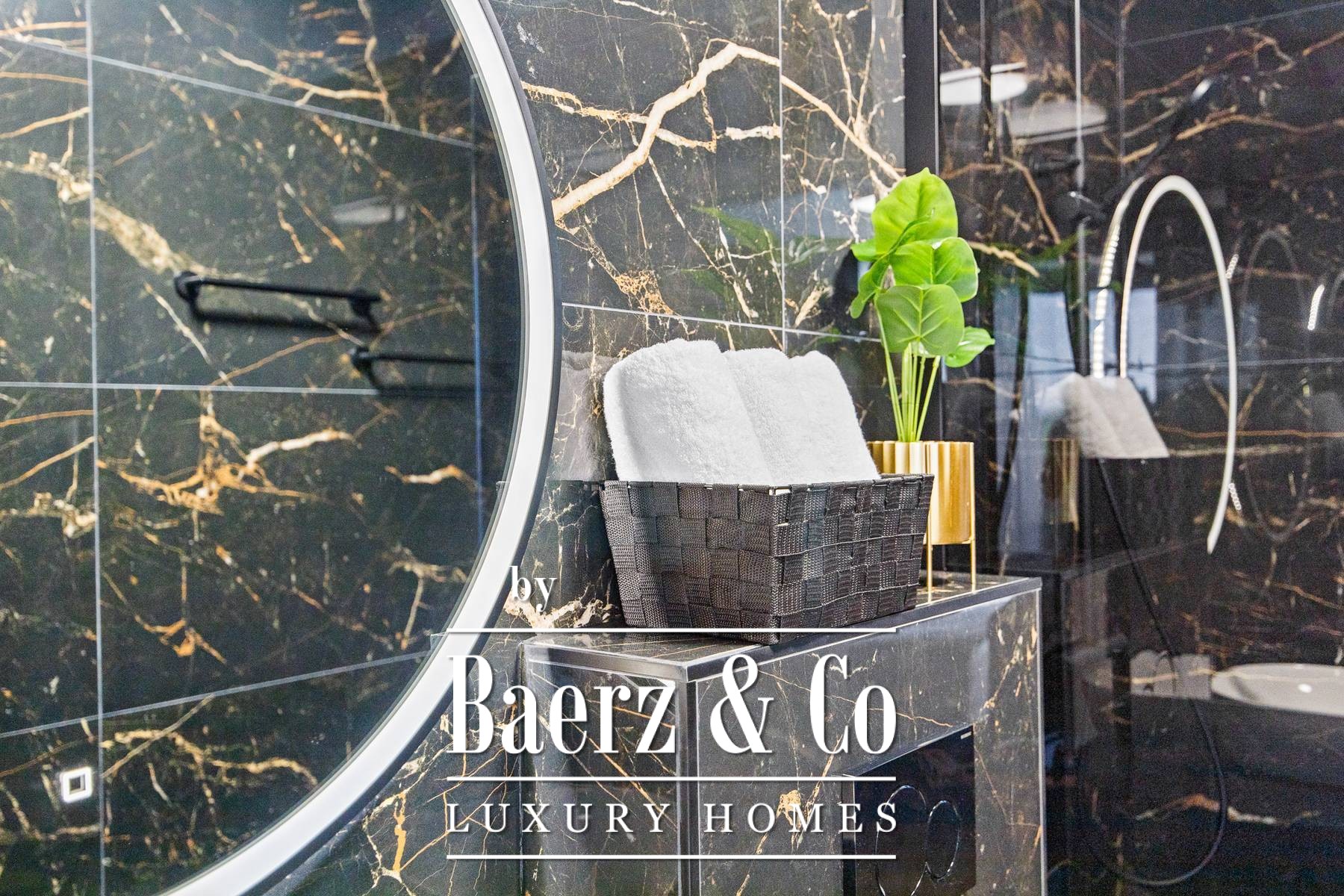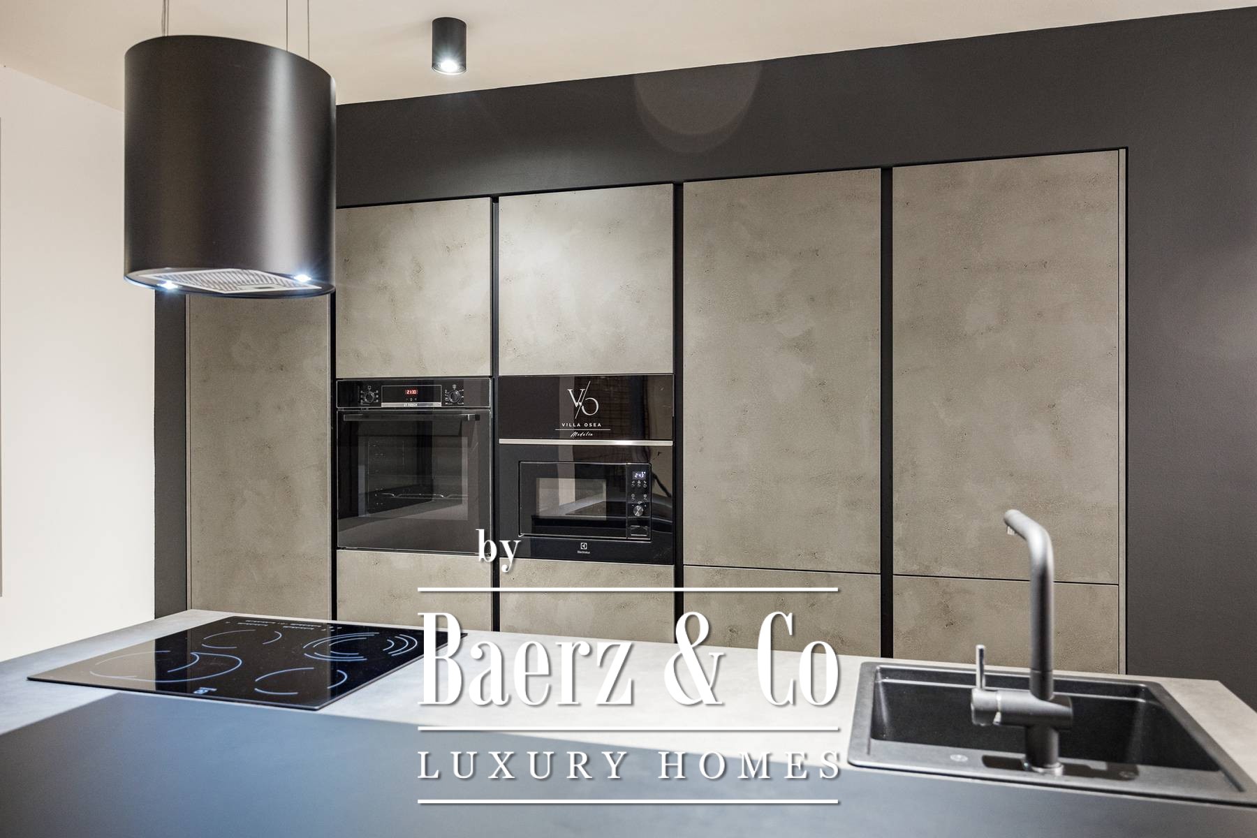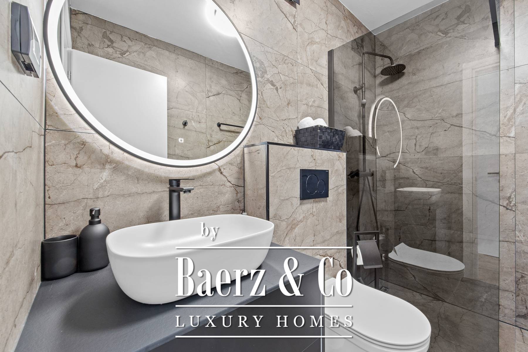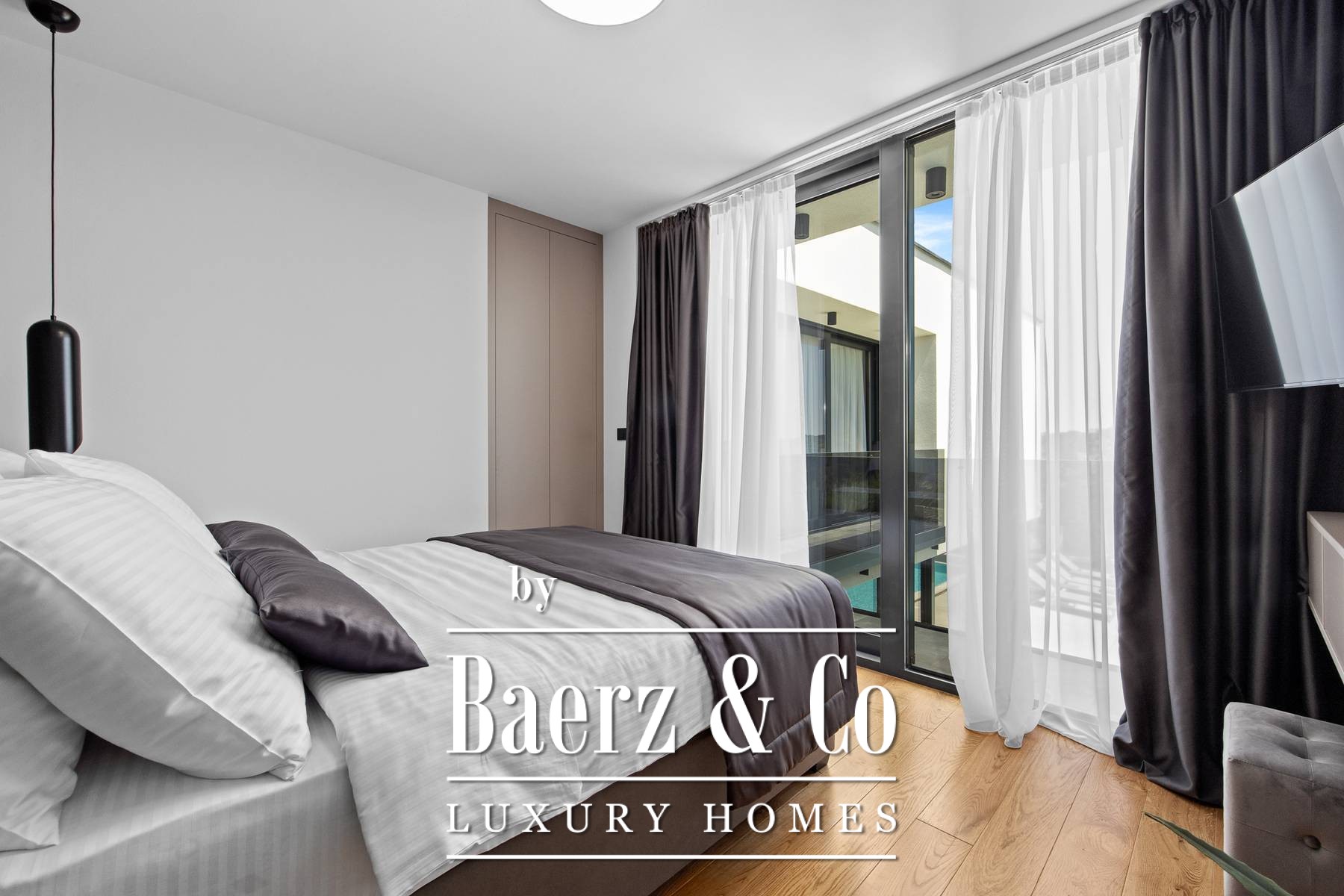 floor, where there are four well-arranged bedrooms, each with its own bathroom. Each room is air-conditioned, the floor has high-quality parquet that gives warmth to the entire space. All rooms are bright with high glass walls that give the space airiness, and have a view of the pool and nature.The ground floor also has a sauna, an outdoor shower, and a toilet. The garden of the villa is meticulously arranged and maintained. There is parking for 4 vehicles in front.We are at your disposal for more information.