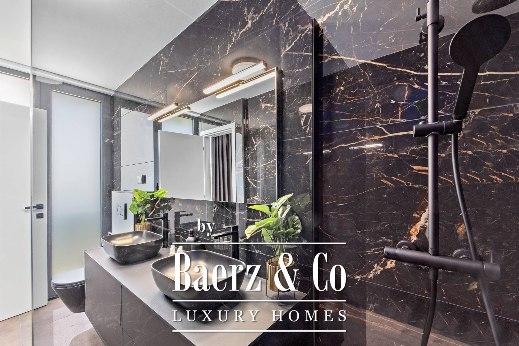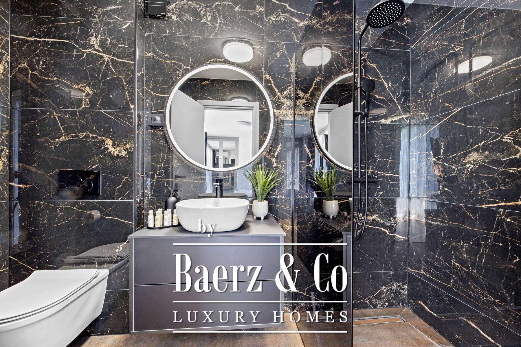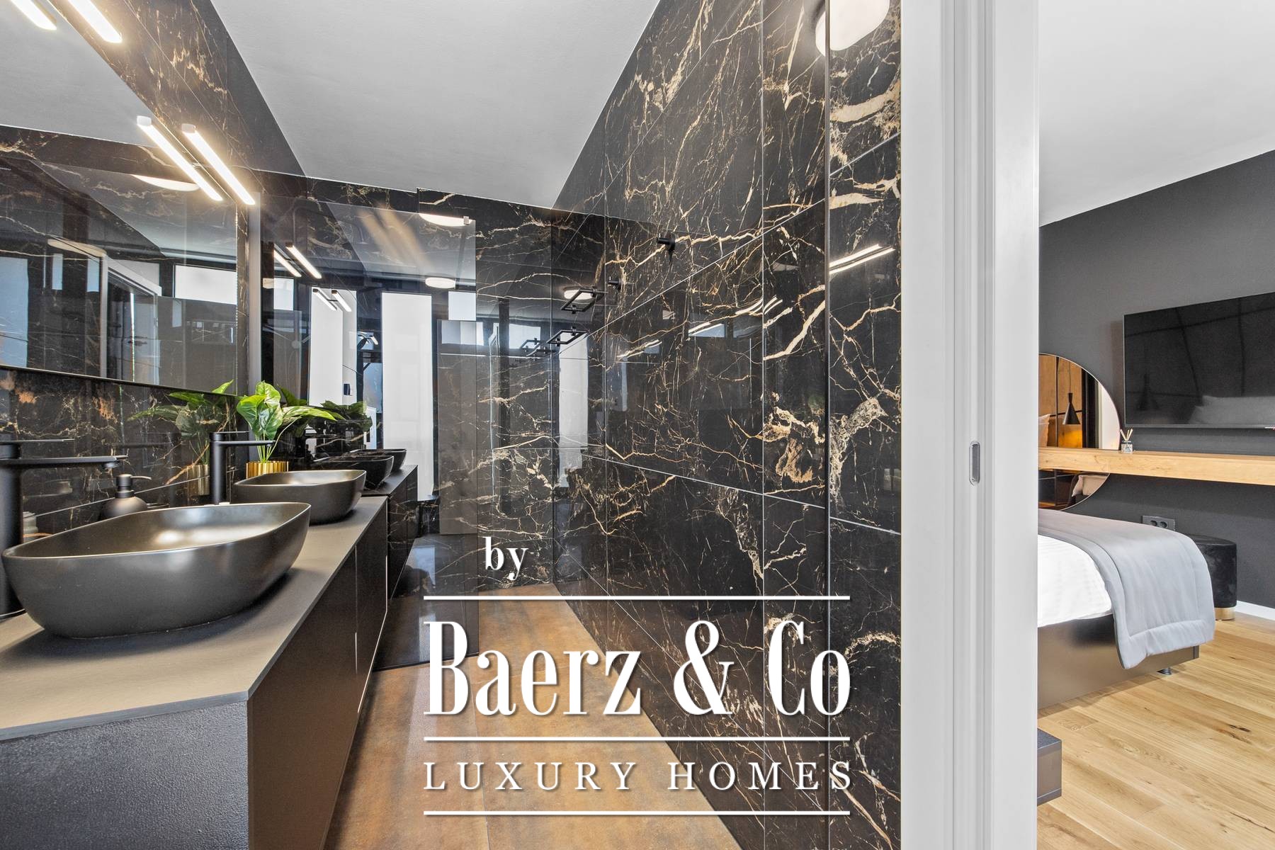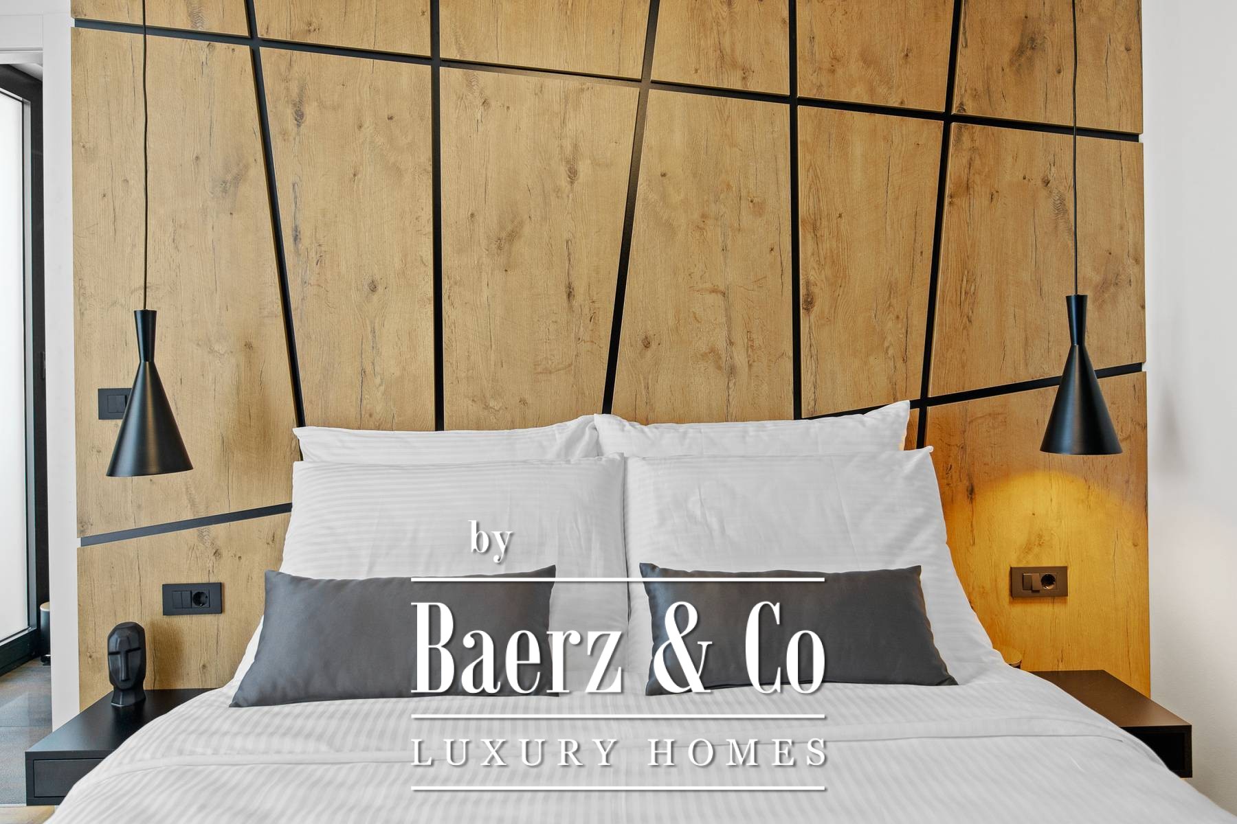 floor, where there are four well-arranged bedrooms, each with its own bathroom. Each room is air-conditioned, the floor has high-quality parquet that gives warmth to the entire space. All rooms are bright with high glass walls that give the space airiness, and have a view of the pool and nature.The ground floor also has a sauna, an outdoor shower, and a toilet. The garden of the villa is meticulously arranged and maintained. There is parking for 4 vehicles in front.We are at your disposal for more information.