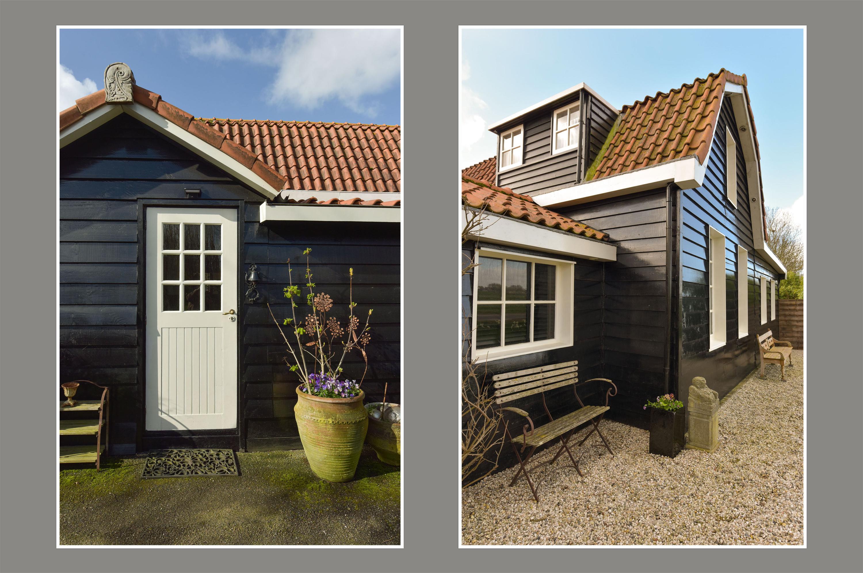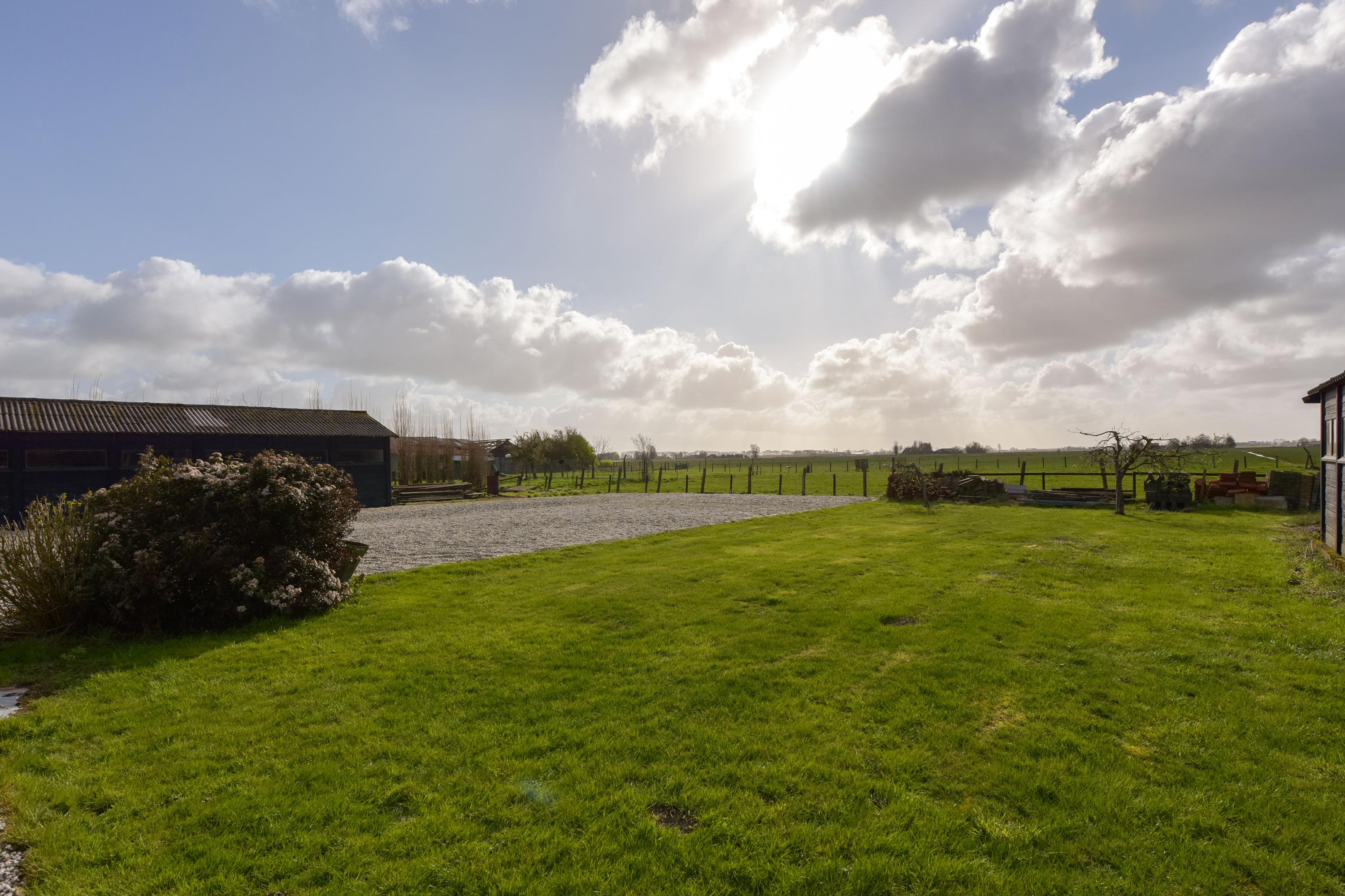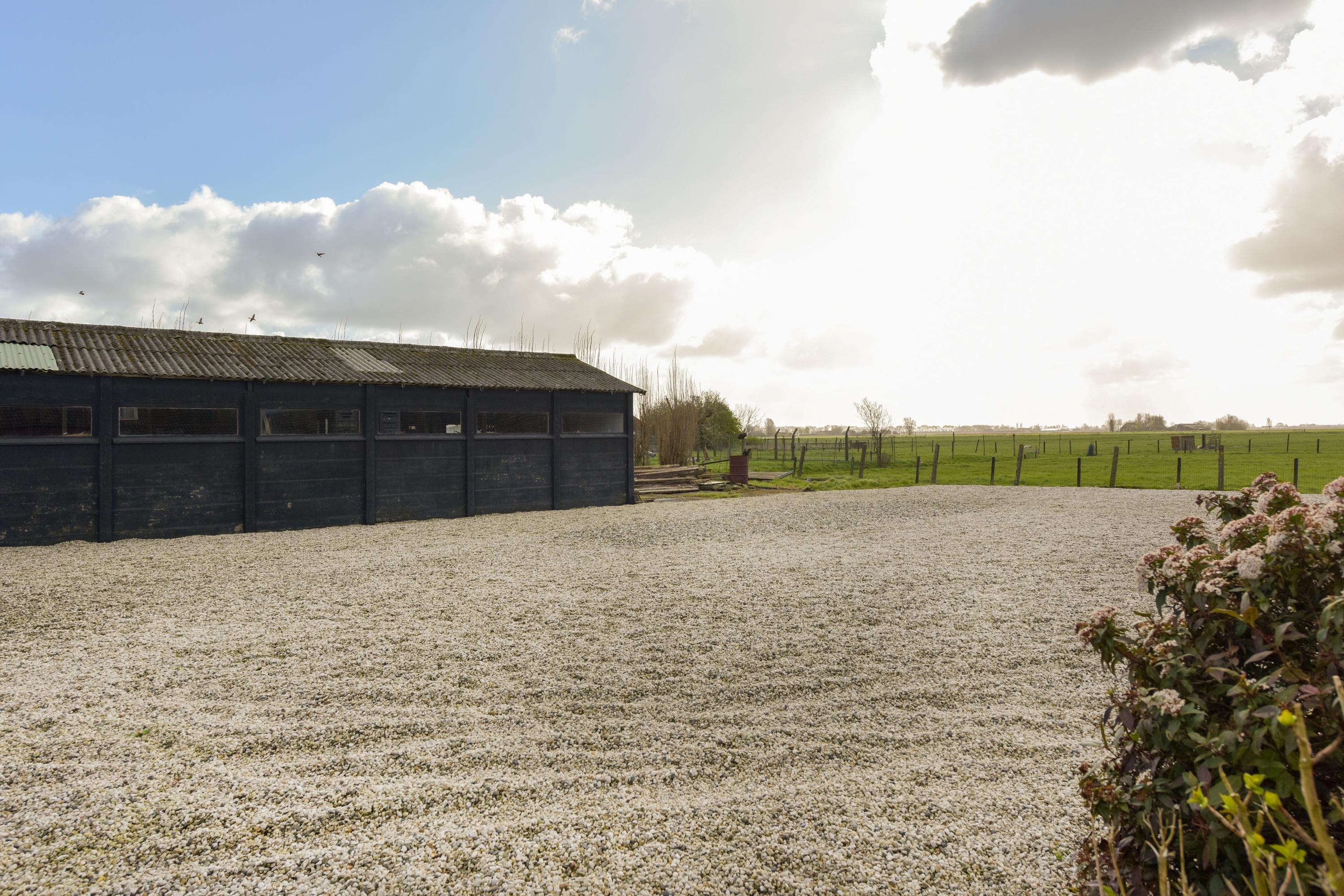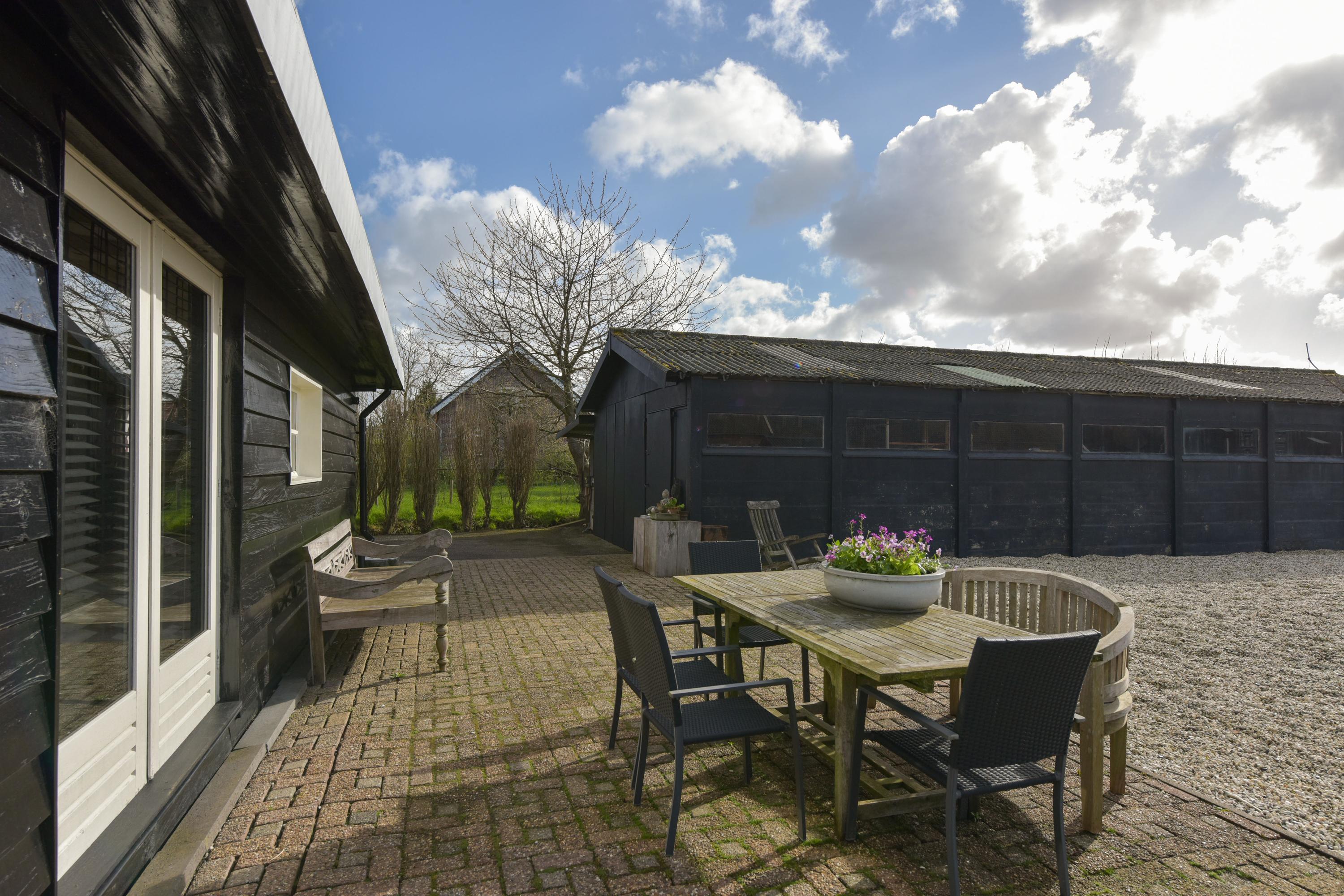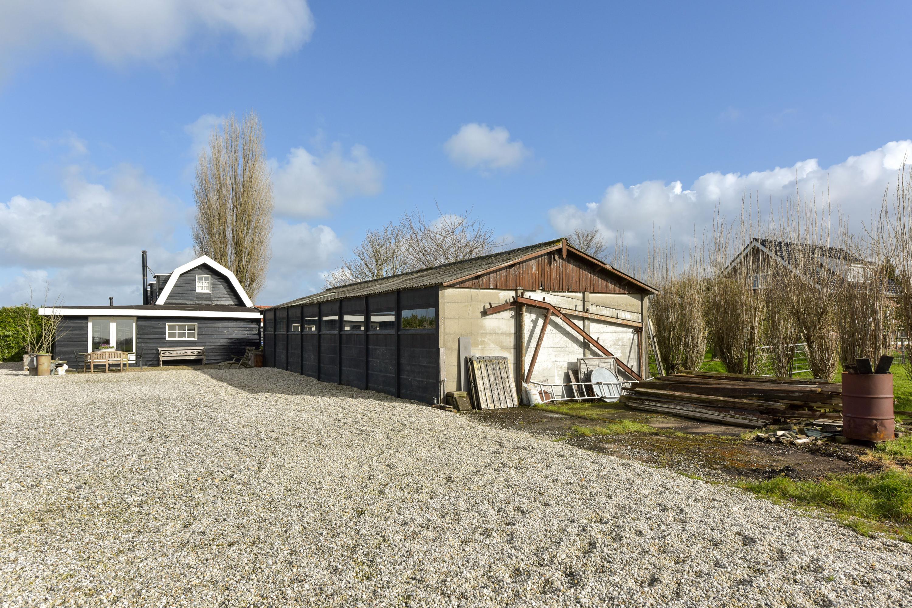 De grote loods is een droom voor hobbyisten, ondernemers of mensen die simpelweg veel ruimte nodig hebben. De loods is verdeeld in twee delen: het linkerdeel is bereikbaar via openslaande deuren, ideaal voor grotere objecten of voertuigen, terwijl het rechterdeel via een loopdeur toegankelijk is en binnendoor in verbinding staat met het andere gedeelte. Achterin de tuin bevindt zich nog een extra schuur, perfect voor opslag of als werkruimte.