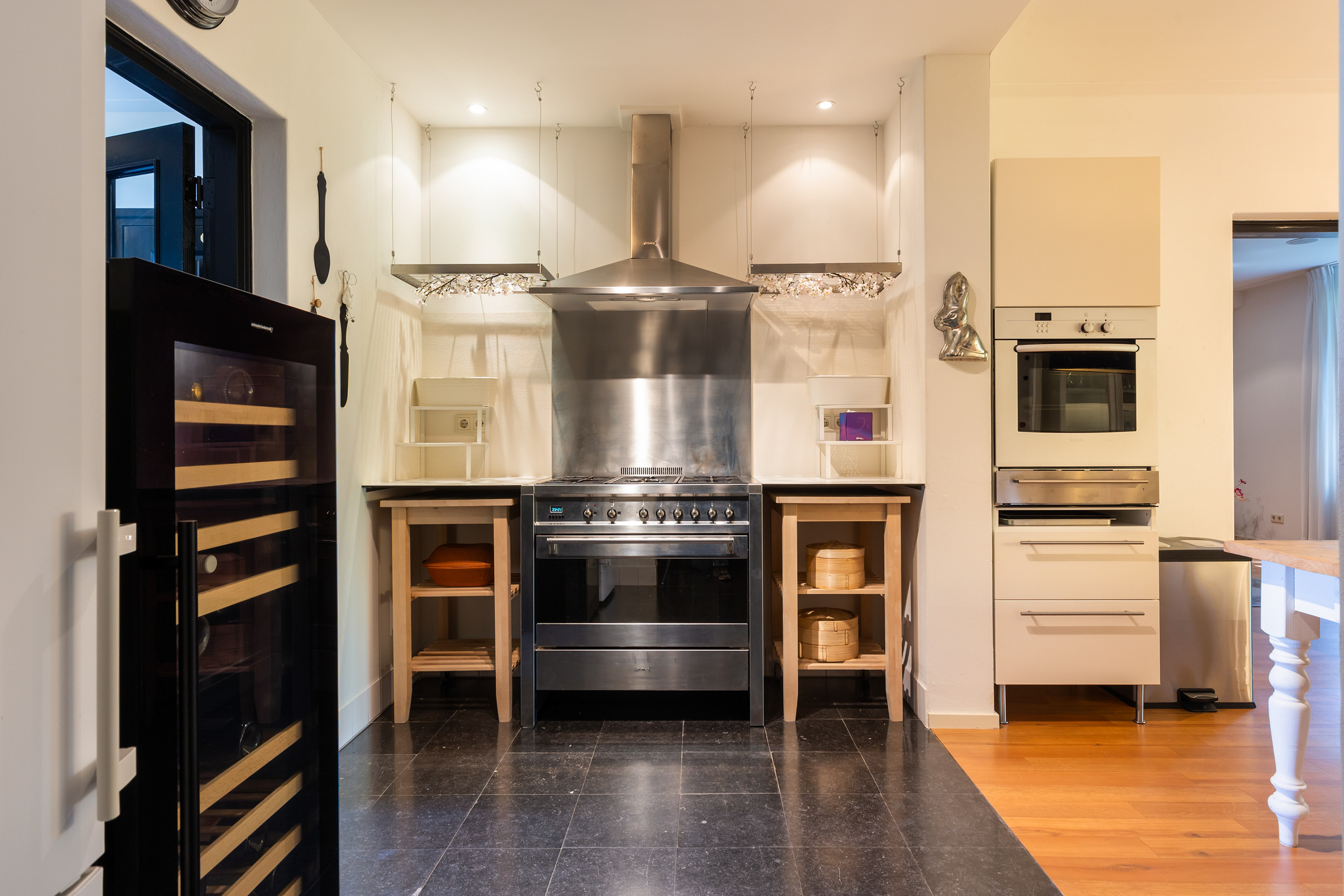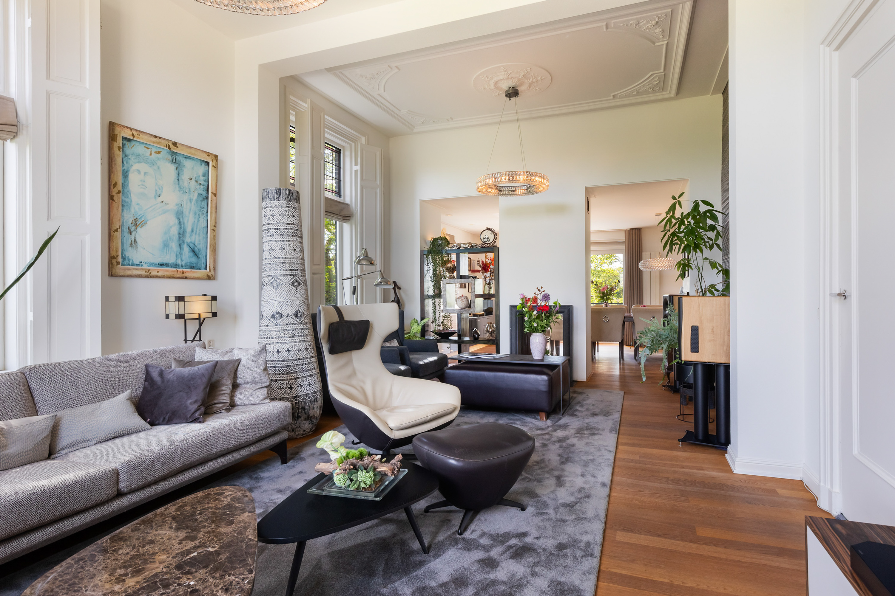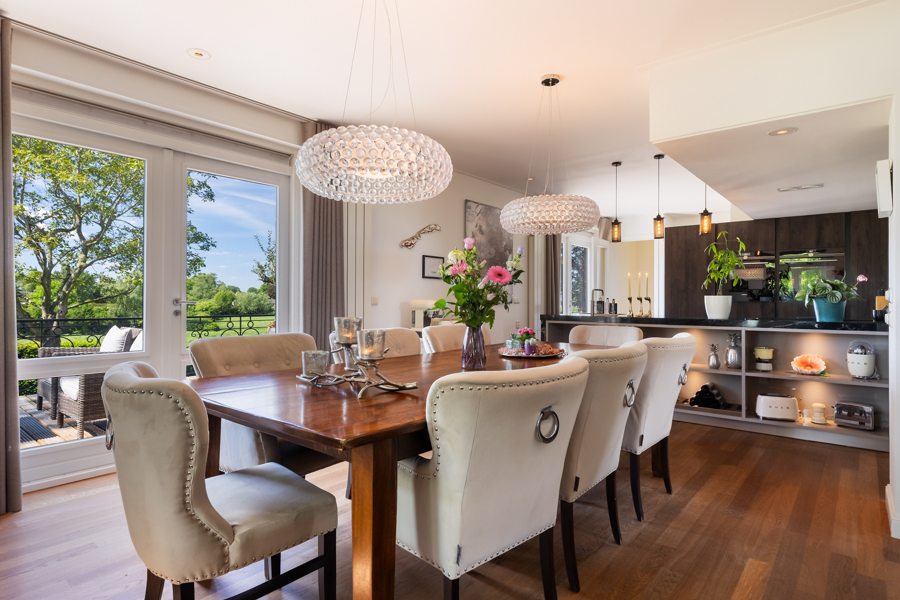De villa onderscheidt zich niet alleen door haar ligging, maar ook door haar veelzijdigheid. Met vier volwaardige woonlagen is er een natuurlijke scheiding ontstaan tussen wonen, werken en ontvangen. Op dijkniveau bevindt zich het hart van de woning: een elegante leefverdieping waar verschillende woonfuncties op harmonieuze wijze samenkomen. Vanuit de vestibule bereikt u een royale werkkamer met haardpartij en uitzicht over de rivier. De aansluitende woon- en eetkamer, evenals de open keuken, vormen één ruimtelijk geheel, verbonden door een sfeervolle doorkijkhaard. Grote raampartijen en openslaande deuren zorgen voor een directe verbinding met het balkon, waar het uitzicht over water en landerijen telkens opnieuw indruk maakt.