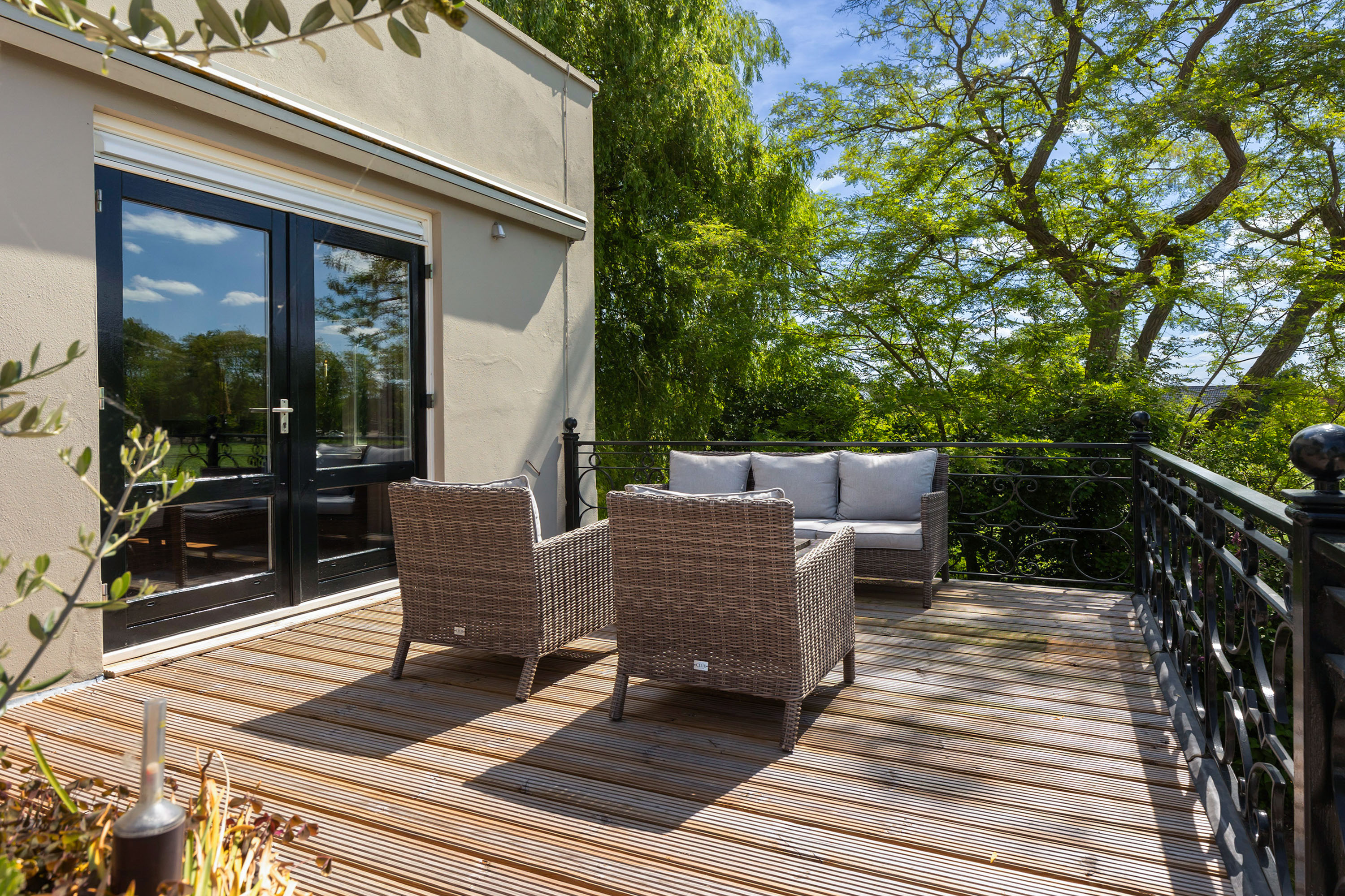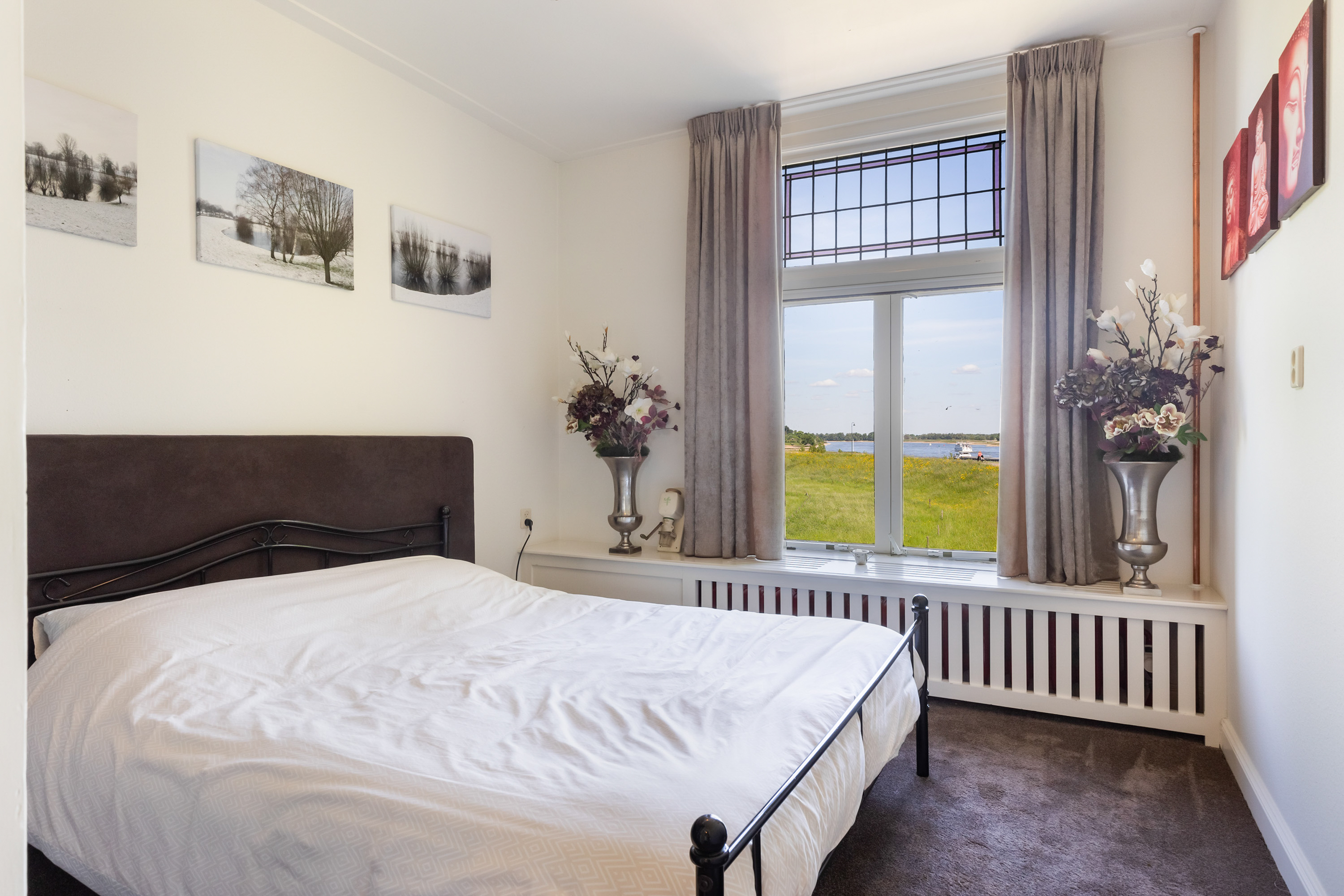 Een verdieping hoger ontvouwt zich een bijzonder element van de woning: de volledig gerestaureerde serre. Deze ruimte, omgeven door glas, biedt een spectaculair zicht op het veranderende rivierlandschap en vormt een ideale plek voor ontspanning of contemplatie. Aansluitend ligt een beschut dakterras. Op deze etage bevinden zich daarnaast drie comfortabele slaapkamers, een inloopgarderobe en een ruime badkamer voorzien van ligbad, douche, dubbele wastafel en toilet.
