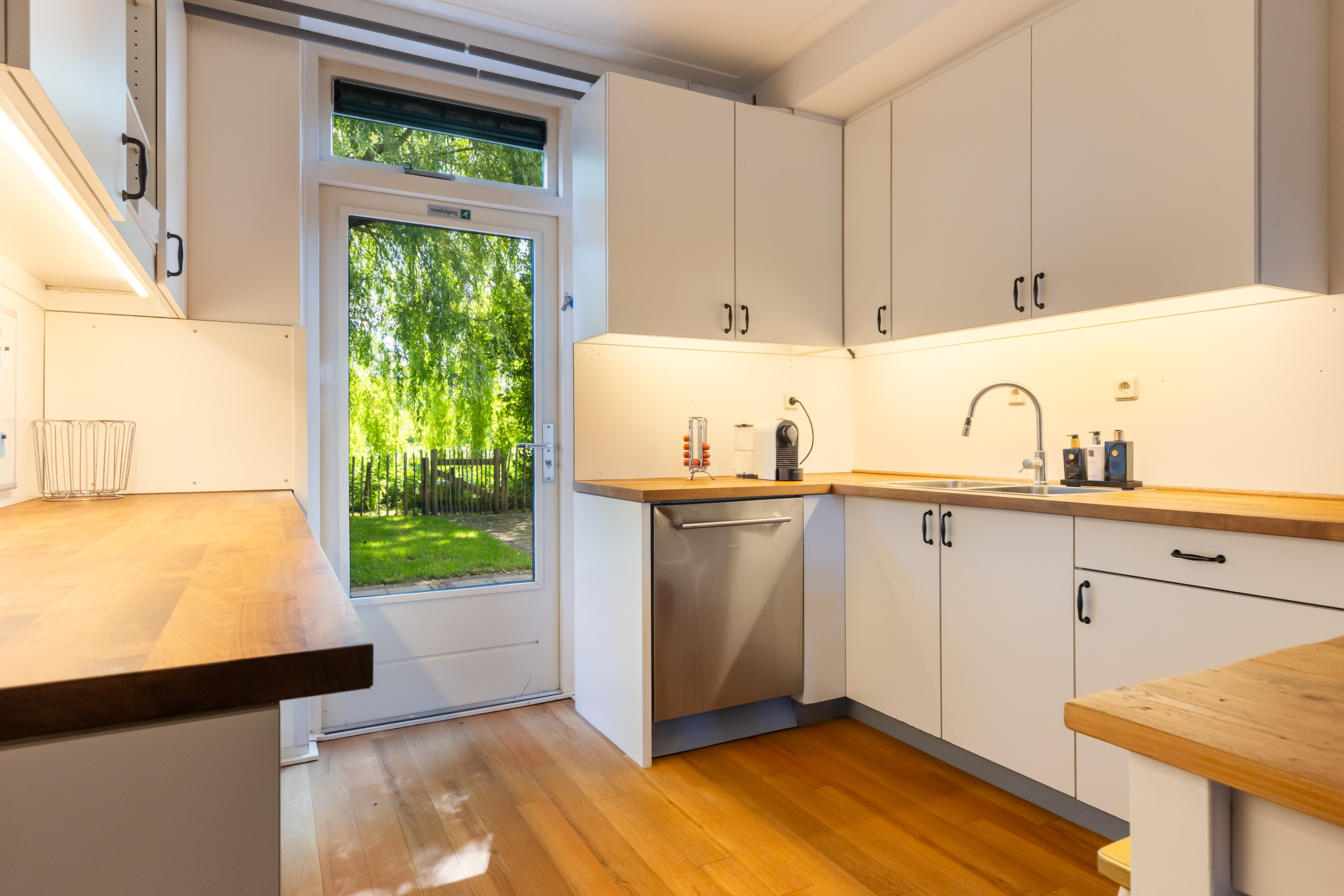 Op maaiveldniveau is een volledig zelfstandige woon- of werkunit gerealiseerd. Met een eigen entree, meerdere kamers, een keuken, sanitaire voorzieningen en een privéterras in de tuin, is deze ruimte uitermate geschikt voor inwoning, een praktijk aan huis of het ontvangen van gasten. Ook voor kortdurend verblijf op hoog niveau biedt deze verdieping interessante mogelijkheden.