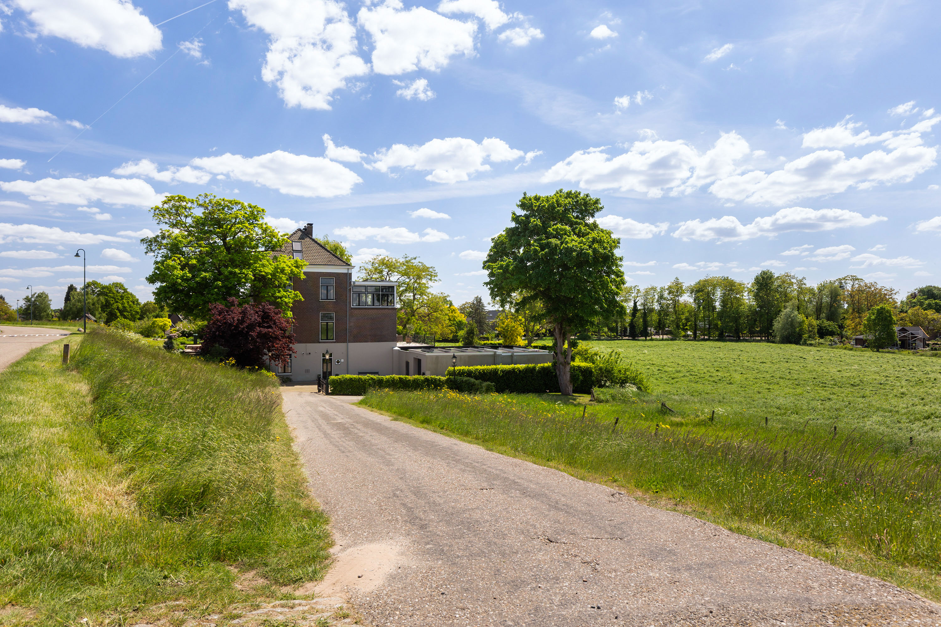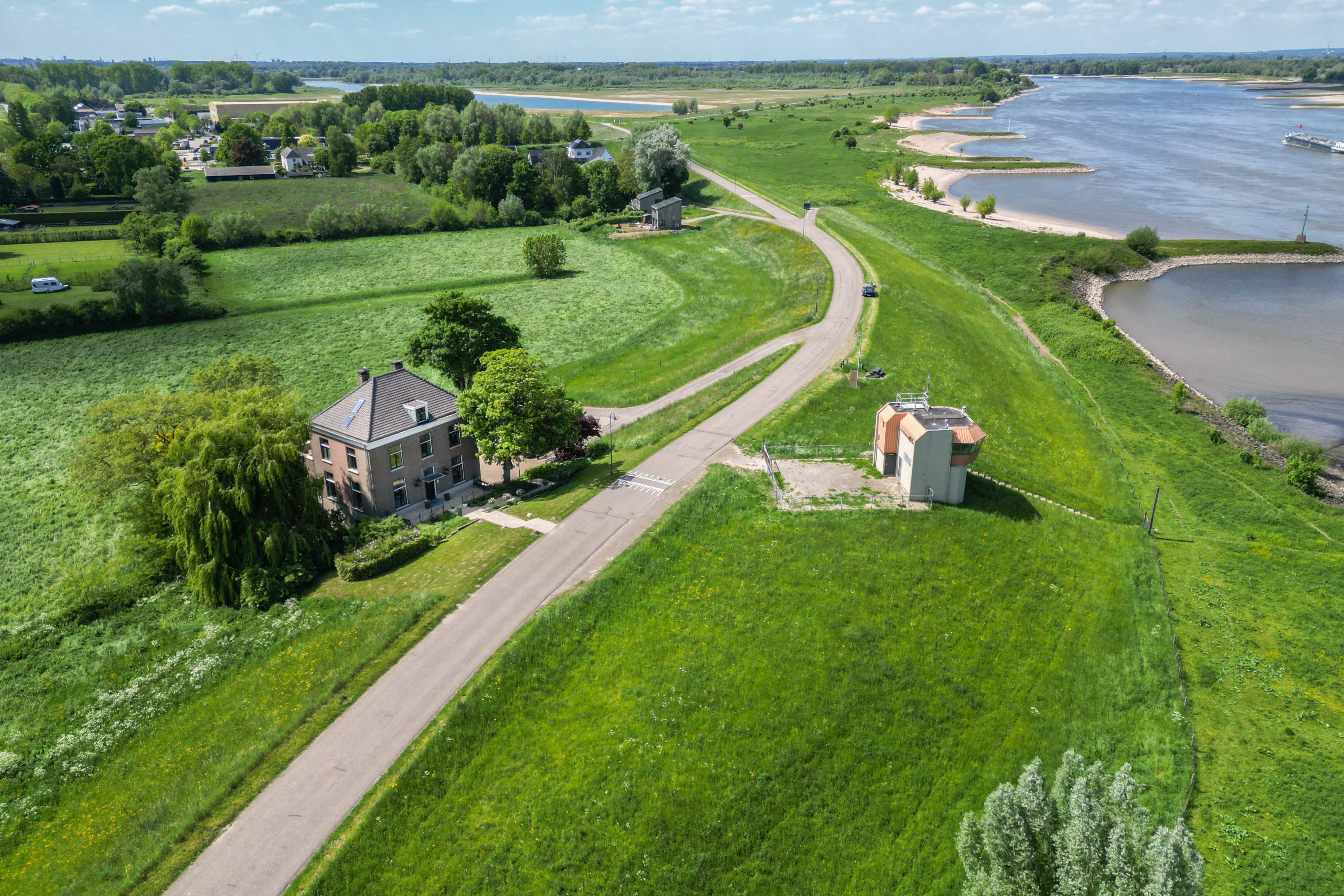 Op een markante plek waar water, natuur en historie samenkomen, bevindt zich deze karaktervolle villa met een uitzonderlijke uitstraling. Hoog gelegen aan de Rijndijk en uitkijkend over de samenvloeiing van Rijn en Waal, biedt deze voormalige rentmeesterswoning een zeldzame combinatie van privacy, ruimte en panoramisch uitzicht. Het geheel is gelegen op een volledig omsloten perceel, omgeven door een zorgvuldig aangelegde tuin die naadloos aansluit op de kwaliteit van de woning.