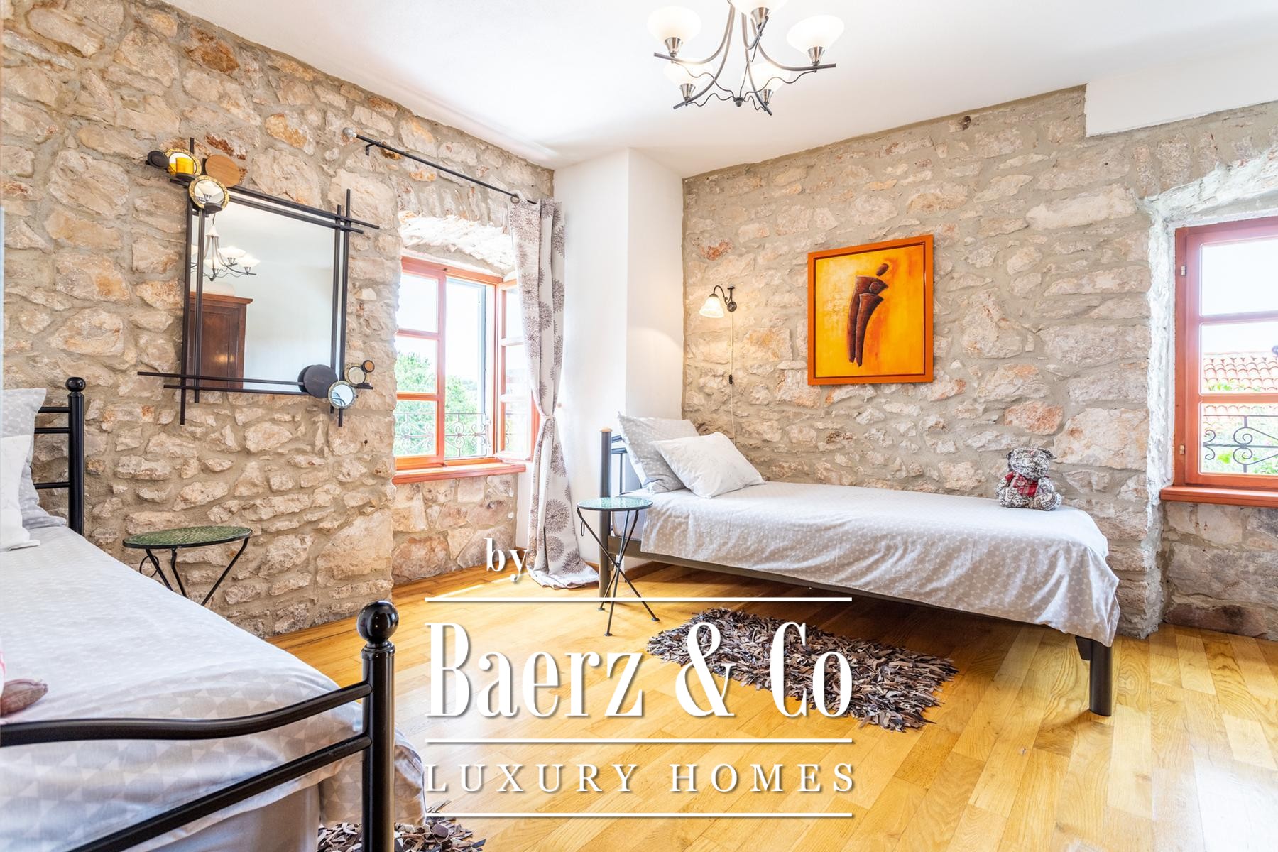 there is a lounge area, a spacious swimming pool, a sunbathing area, a barbecue area, a children's playground and a garden with native Dalmatian plants. The villa originates from the 19th century and has been completely renovated and decorated to the smallest detail in the original Dalmatian style, i.e. stone and wood, modernized to meet the needs of today's lifestyle. It is located in the very center of the small town of Milna, close to the waterfront, beach, shops, restaurants and all other essential amenities. More information on request.