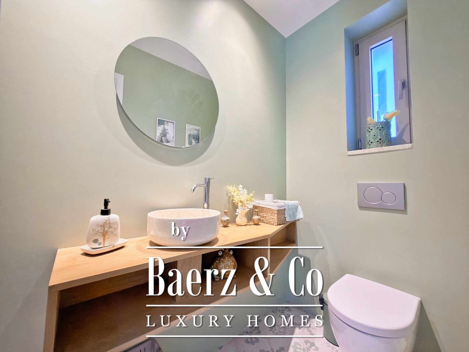 Buiten wordt de ingetogen elegantie van de patio benadrukt door een zwembad van 50 m² en een royale barbecueplek onder eiken pergola’s. Dankzij het vrije uitzicht op bergen, zee en natuur verdwijnen de grenzen tussen binnen en buiten moeiteloos. De kelder van 47 m² biedt plaats aan parkeren en opslag, terwijl het fotovoltaïsche systeem bijdraagt aan zelfvoorziening. Deze villa combineert de sereniteit van een landgoed met het comfort van een doordacht ontworpen woning, geschikt voor alle seizoenen.