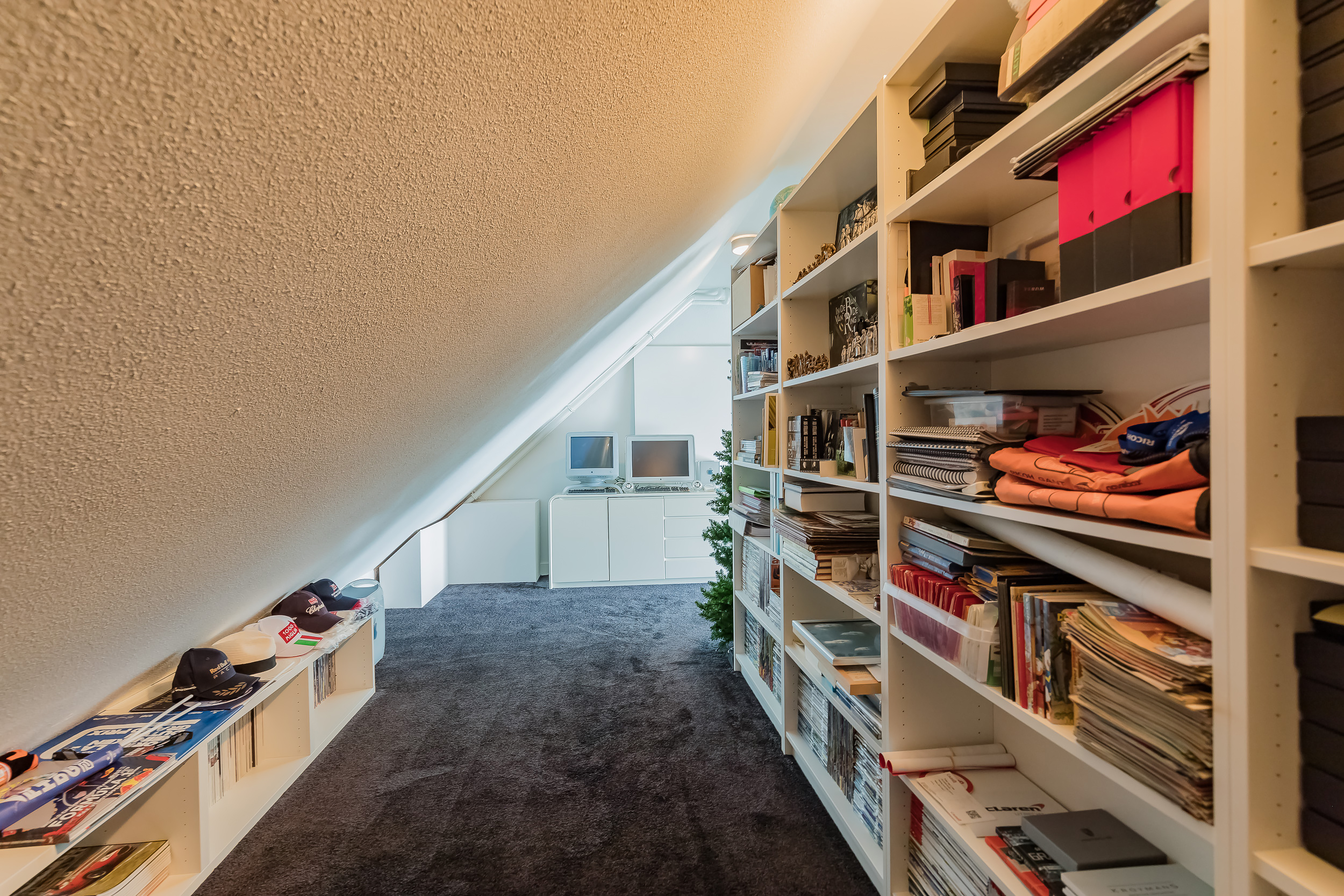 De bergzolder is bereikbaar met een Vlizotrap en hier staan de cv-ketel en de WTW installaties opgesteld.