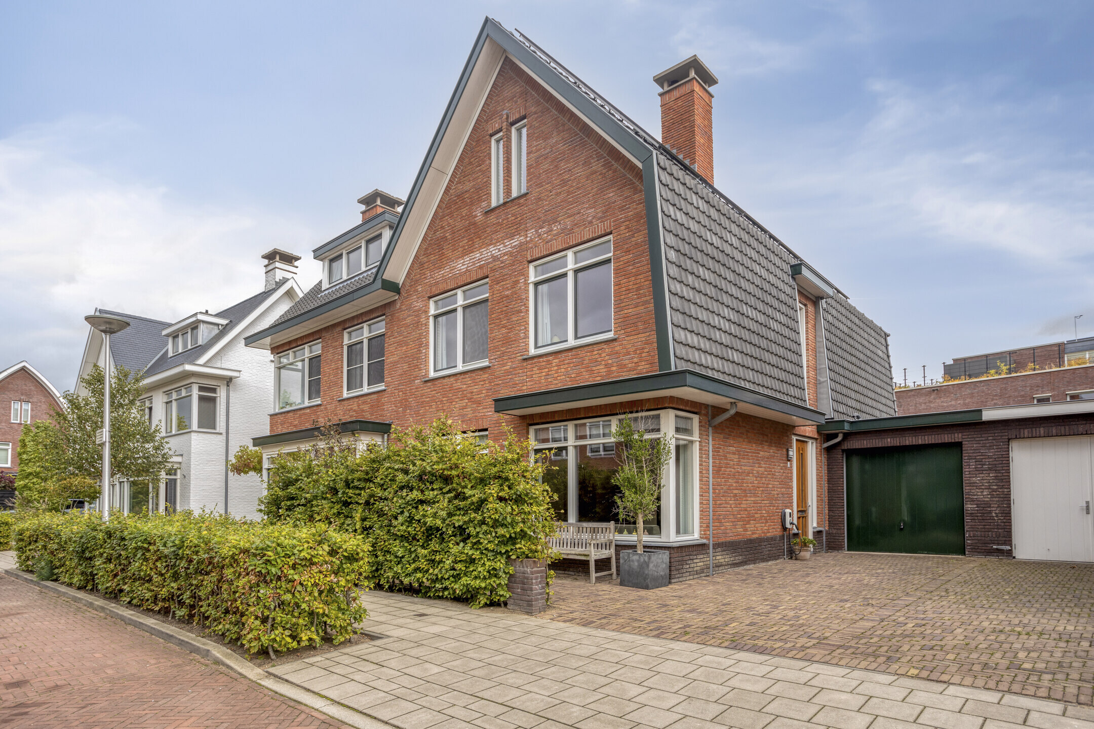 In 2020 verrees op het voormalige terrein van voetbalvereniging ASC, midden in het geliefde Oud Oegstgeest, de kleinschalige nieuwbouwwijk Park Duivenvoorde. Een groene woonomgeving met de uitstraling van de jaren ’30: ruime kavels, fraaie architectuur en veel variatie in stijl, dakvormen en kleurgebruik. Inmiddels is het een van de meest gewilde locaties van Oegstgeest – en precies hier staat deze prachtige halfvrijstaande villa.