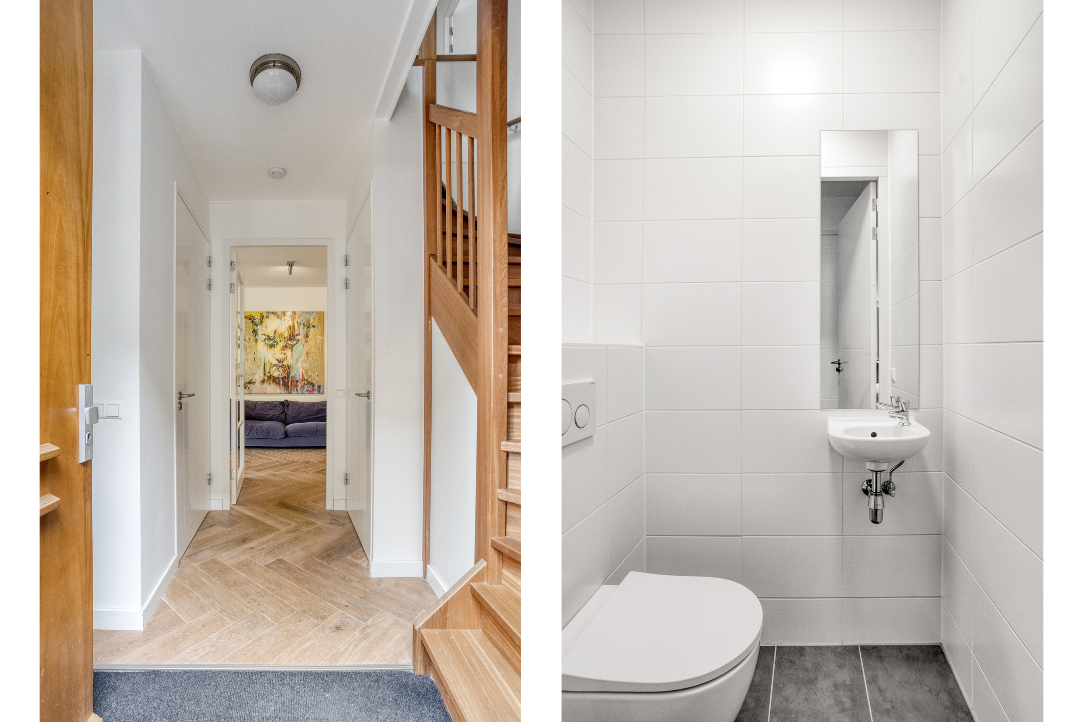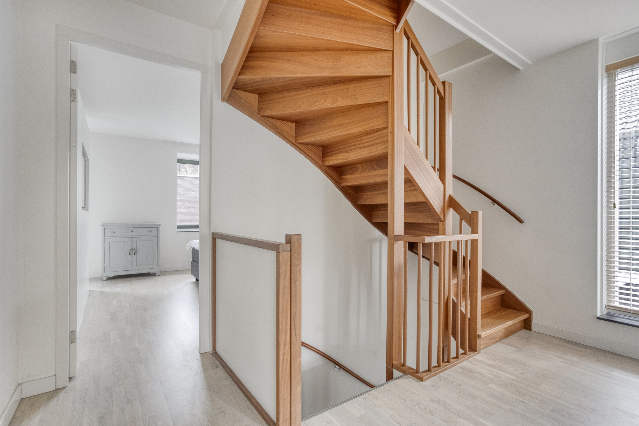 Overloop met wasruimte, separaat toilet en CV-opstelling. Tweede moderne badkamer met inloopdouche en wastafel. Verder twee bijzonder ruime en sfeervolle slaapkamers.