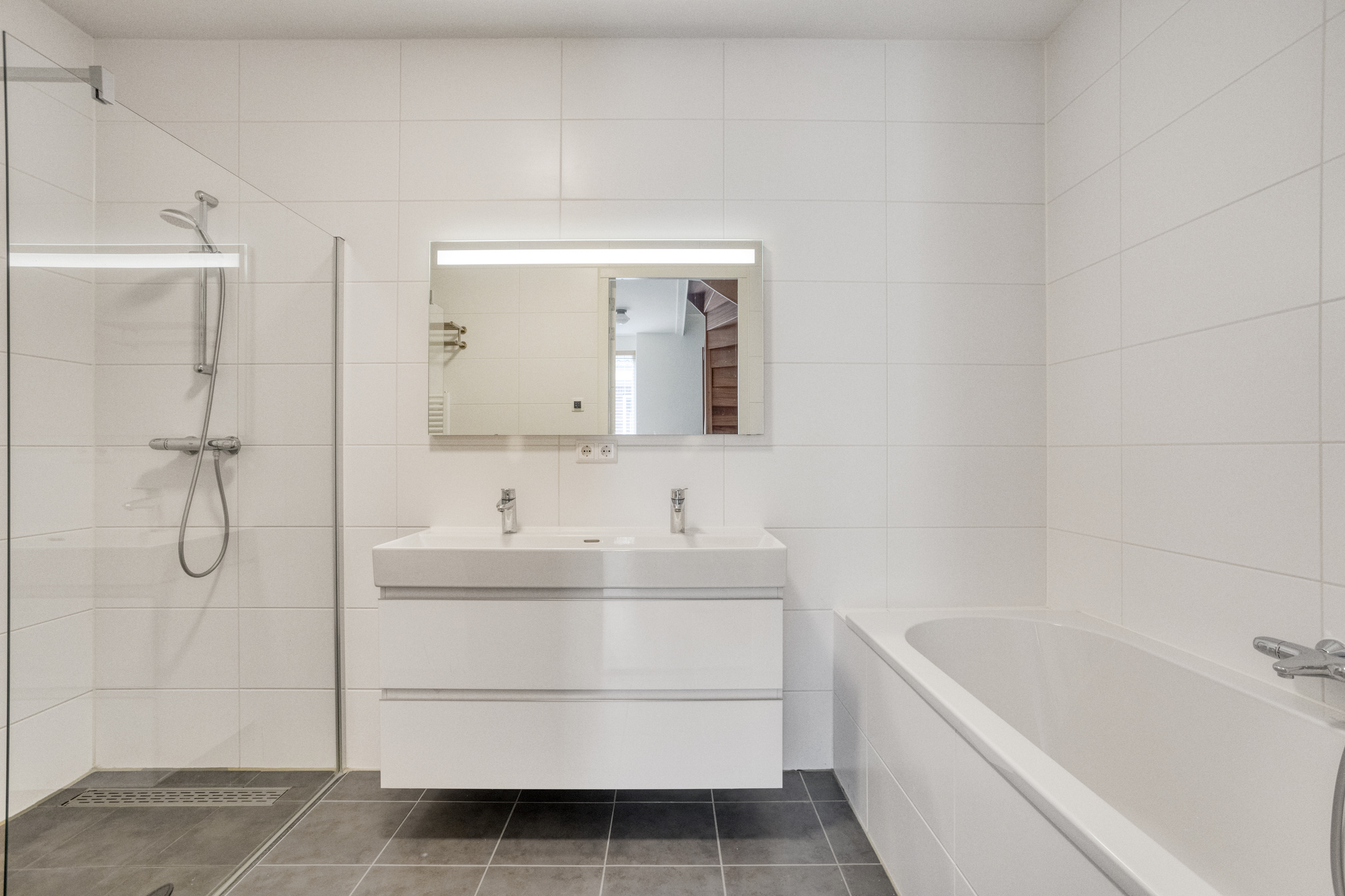 Royale overloop met separaat toilet. Luxe badkamer met inloopdouche, ligbad en dubbele wastafel. Aan de achterzijde de zeer ruime master bedroom met inloopkast. Aan de voorzijde twee ruime slaapkamers.
