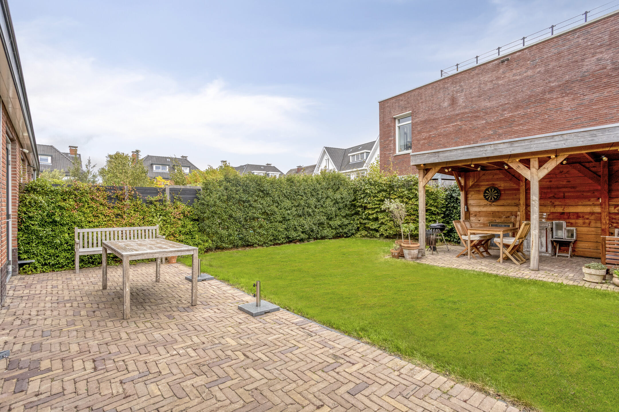 De zonnige achtertuin beschikt over een gezellige veranda, ideaal voor lange zomeravonden. De voortuin biedt ruimte om fietsen te stallen en zorgt met haar diepte en hoge heg voor veel privacy in de woonkamer.
