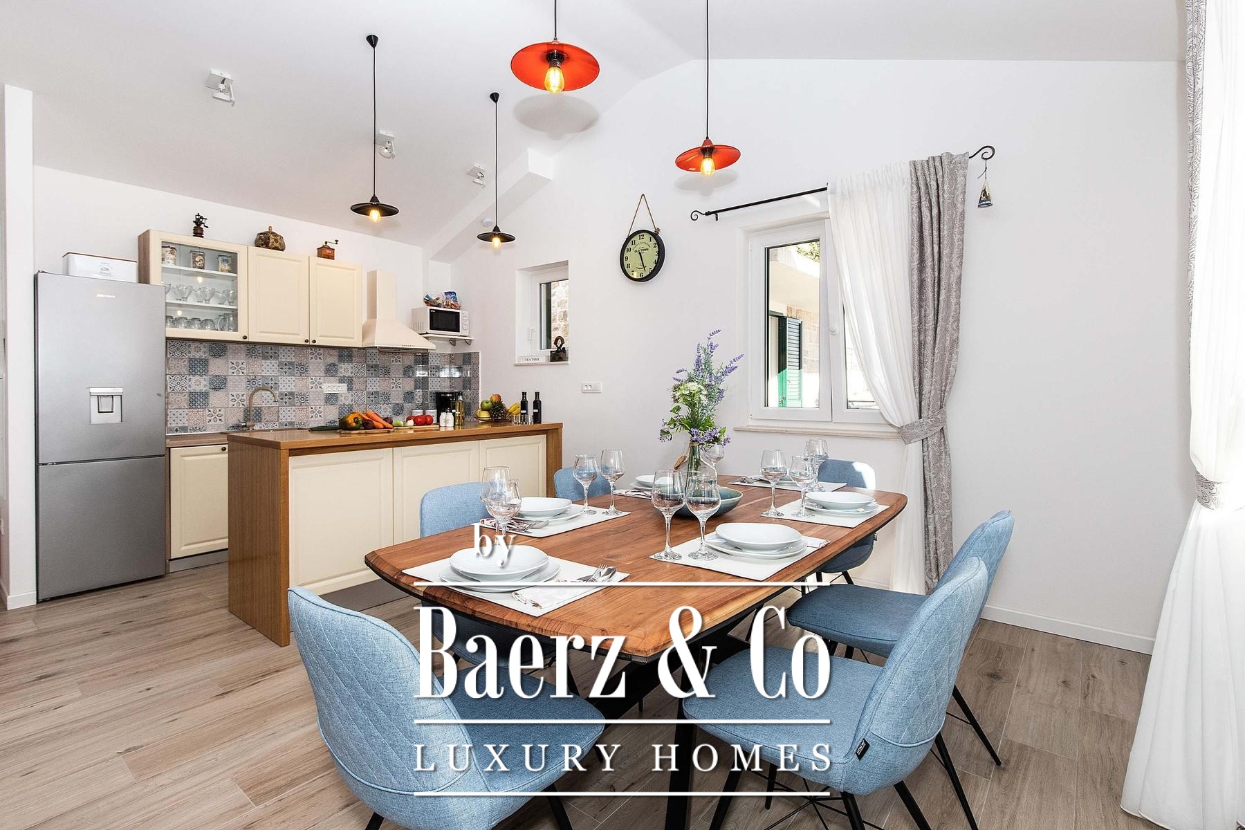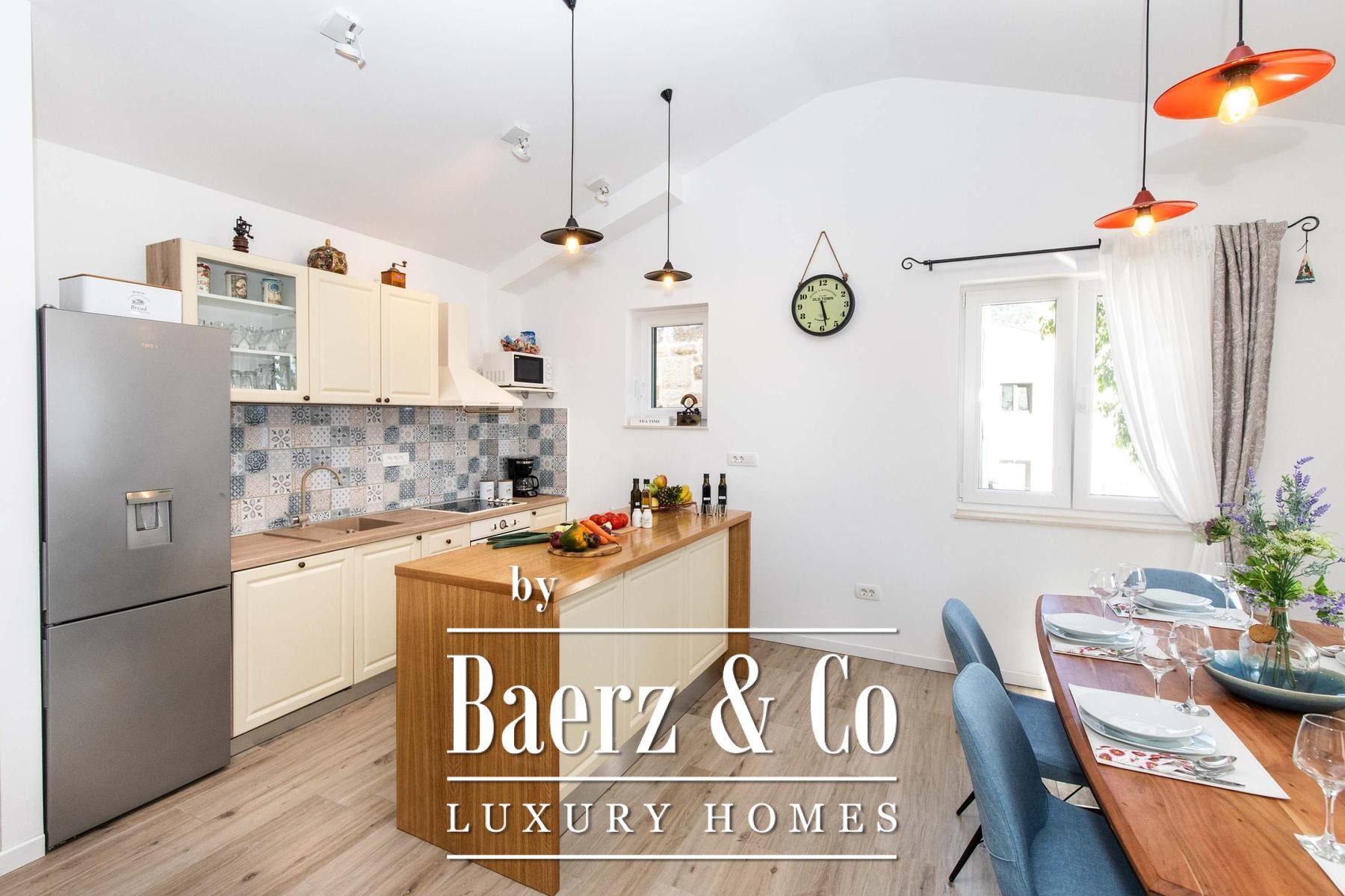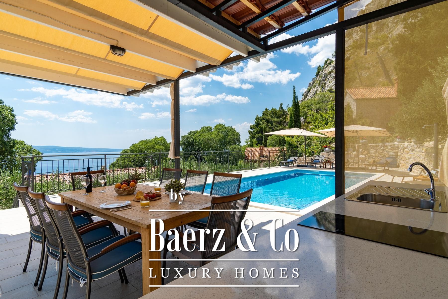 room, bedroom, bathroom and balcony.The property also has an auxiliary facility with an area of 19m2, 49 olive trees, a fireplace and a children's playroom. The house is also connected by a footpath to the center of Omiš, a distance of 700 m.There is a possibility of forming another building plot and building an additional building.All other information on request.
