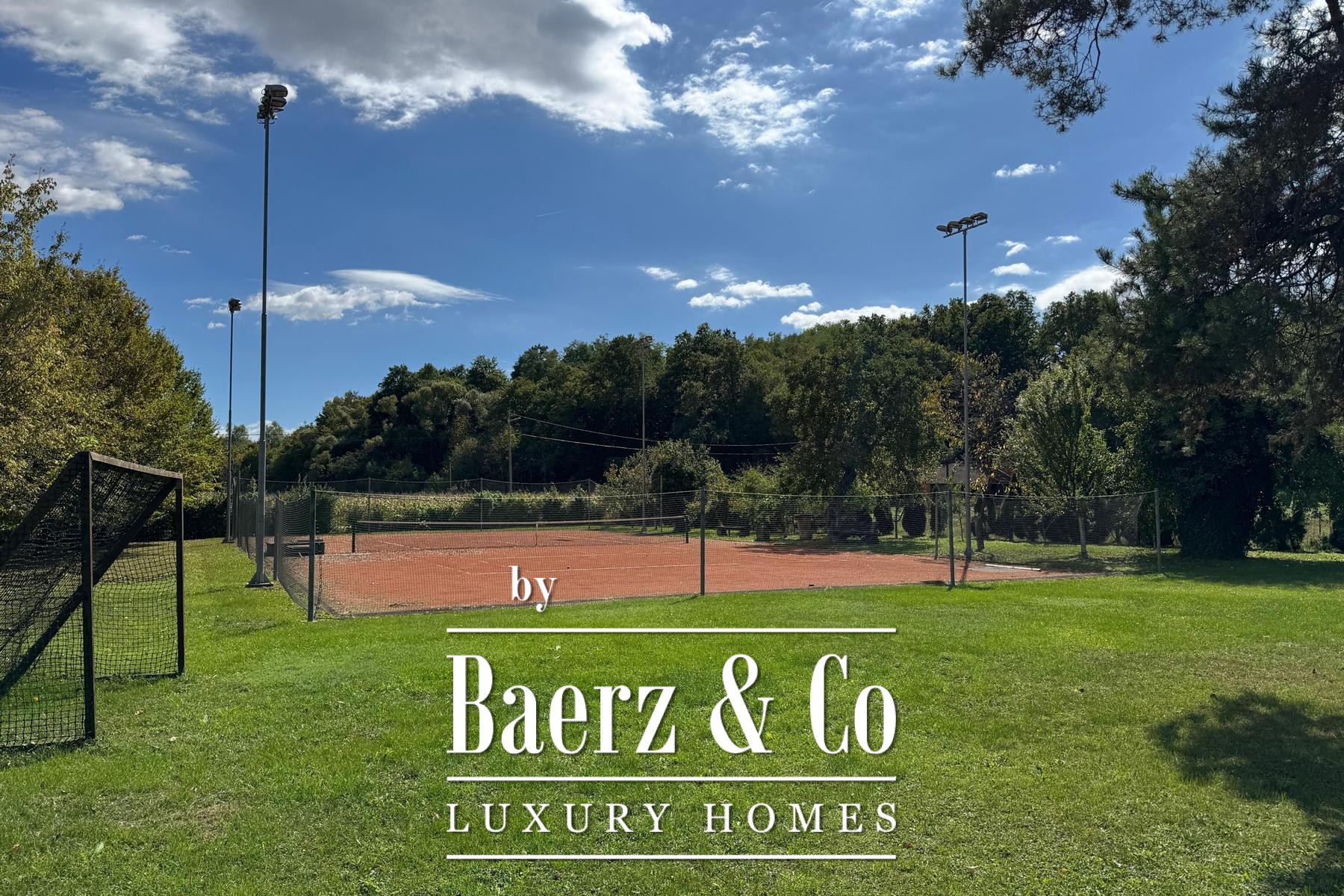 tennis court with accompanying shower facilities