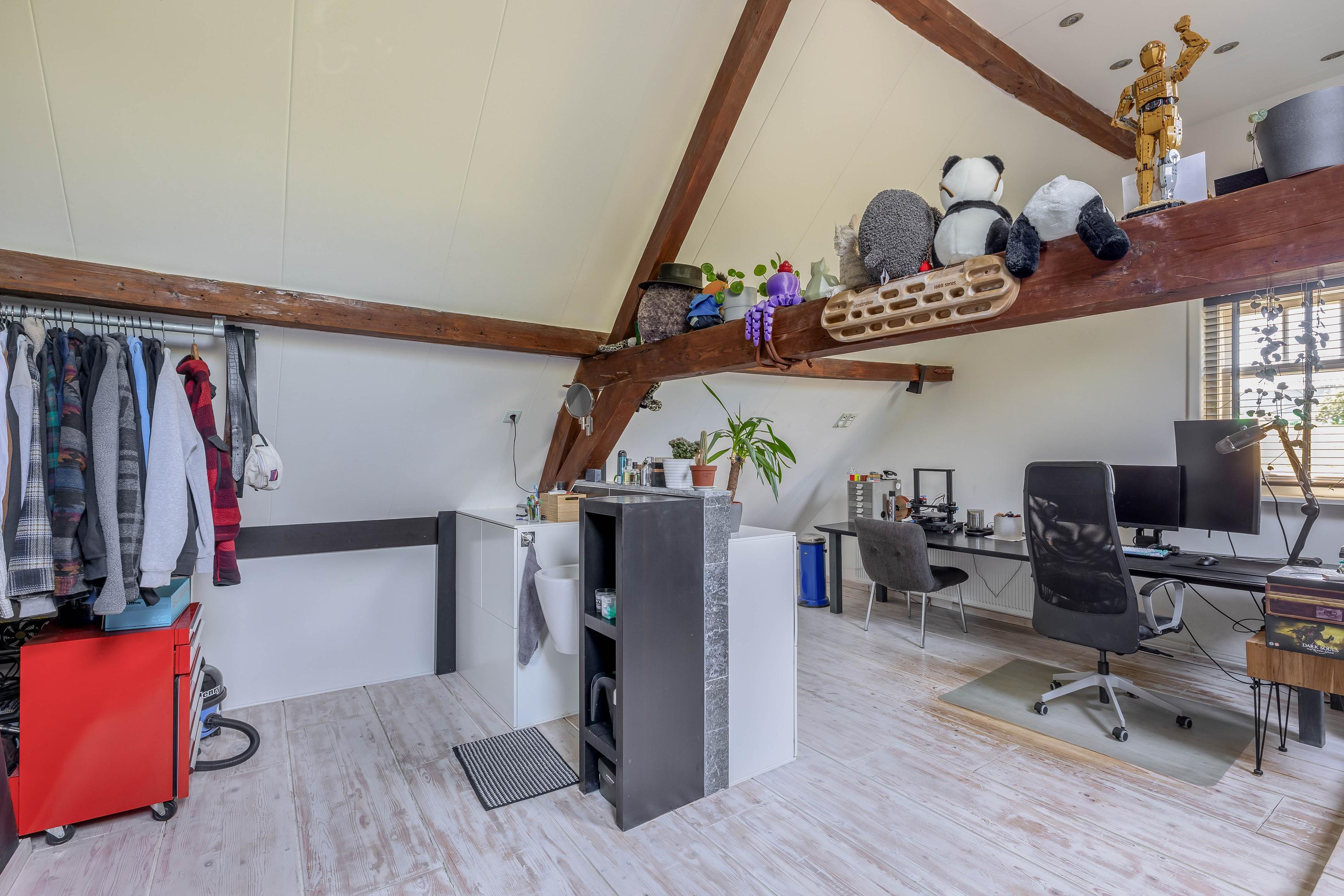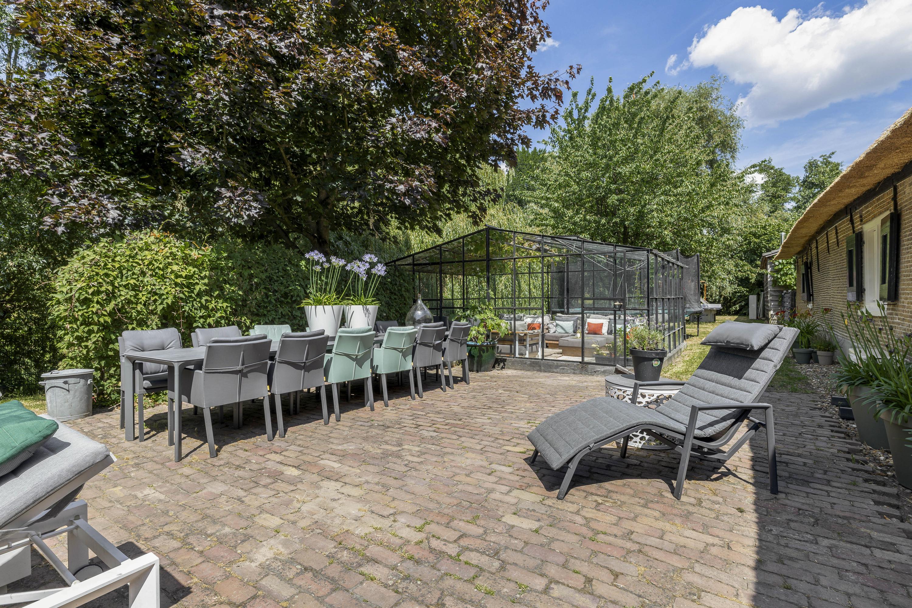 Het erf is voorzien van een royale garage/schuur van ruim 80m², een ruime kas, waar het ook op koelere dagen heerlijk vertoeven is, en een sfeervolle overkapping direct grenzend aan de keuken. Voor paardenliefhebbers zijn er drie paardenboxen aanwezig, in het verleden is er een gedraineerde all-weather rijbak en uitloopbak aangelegd. Het geheel is stijlvol afgezet met een dubbelspaaks hekwerk en toegankelijk via een automatische toegangspoort.
