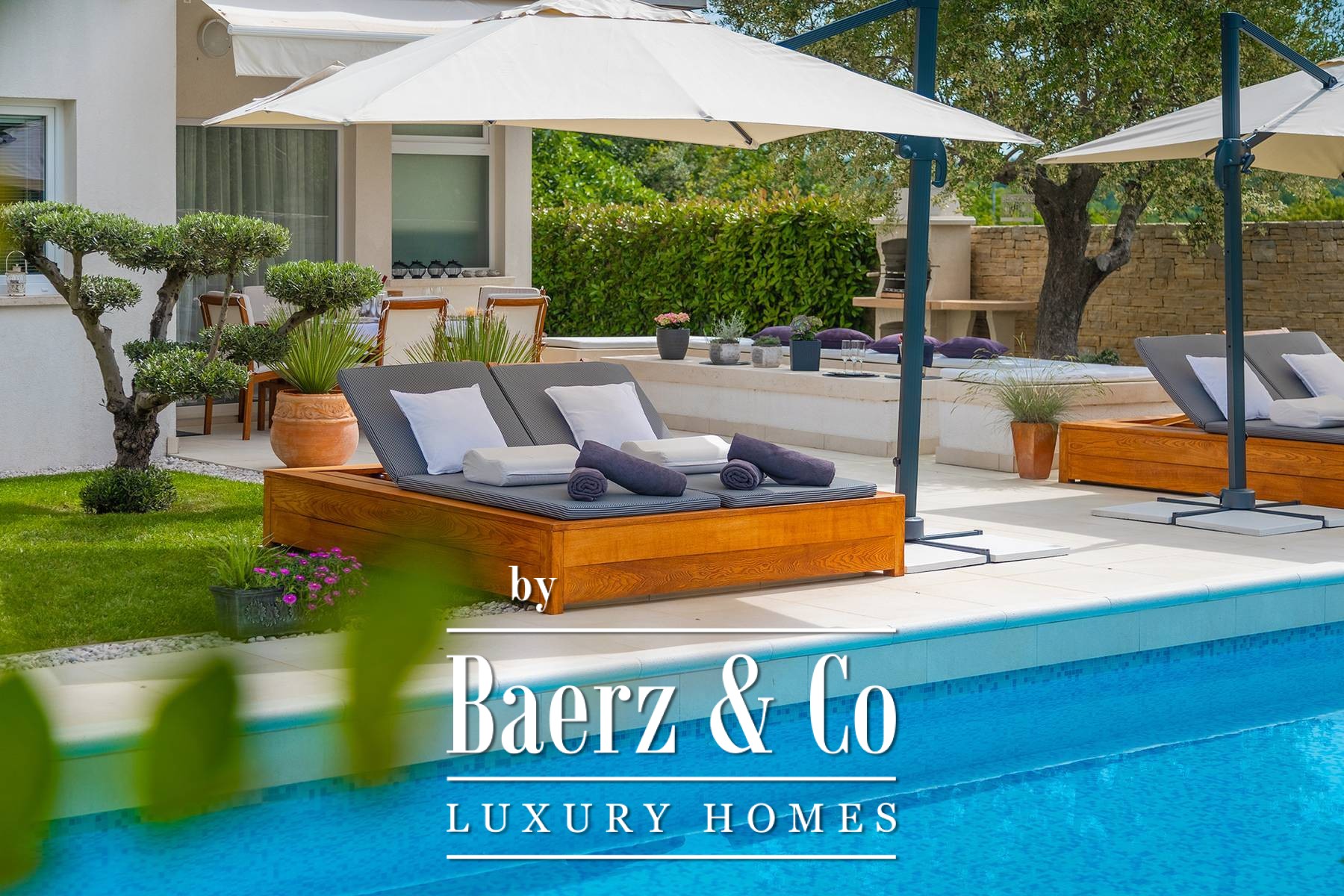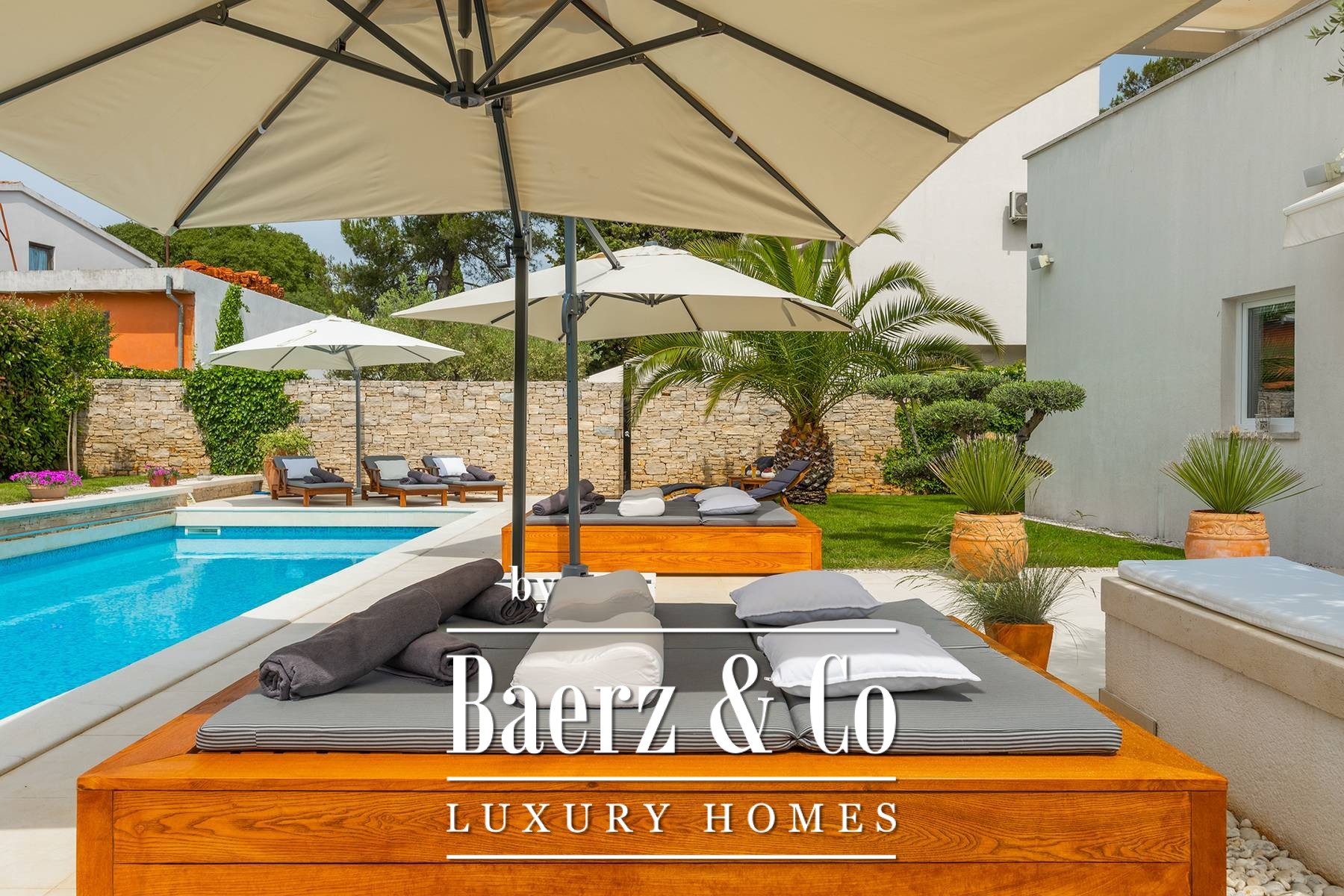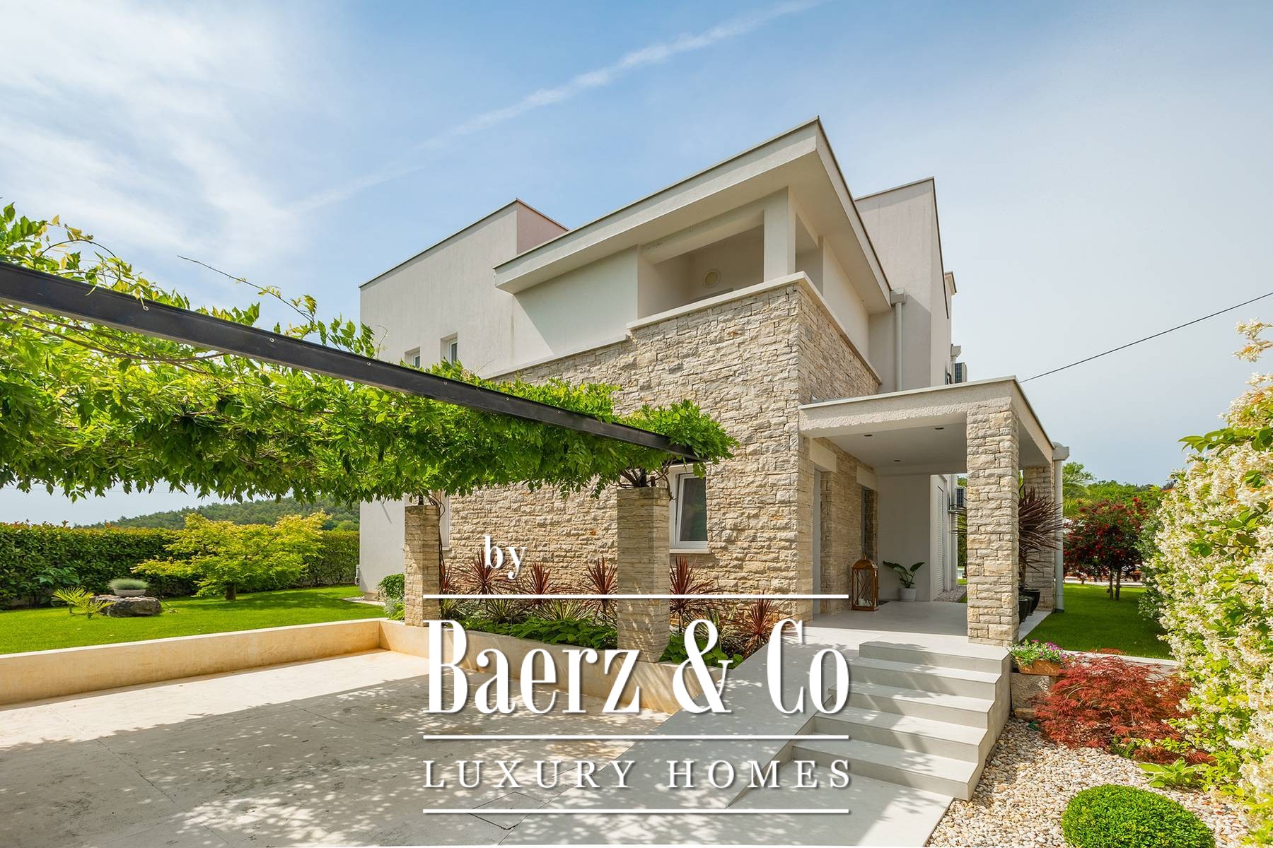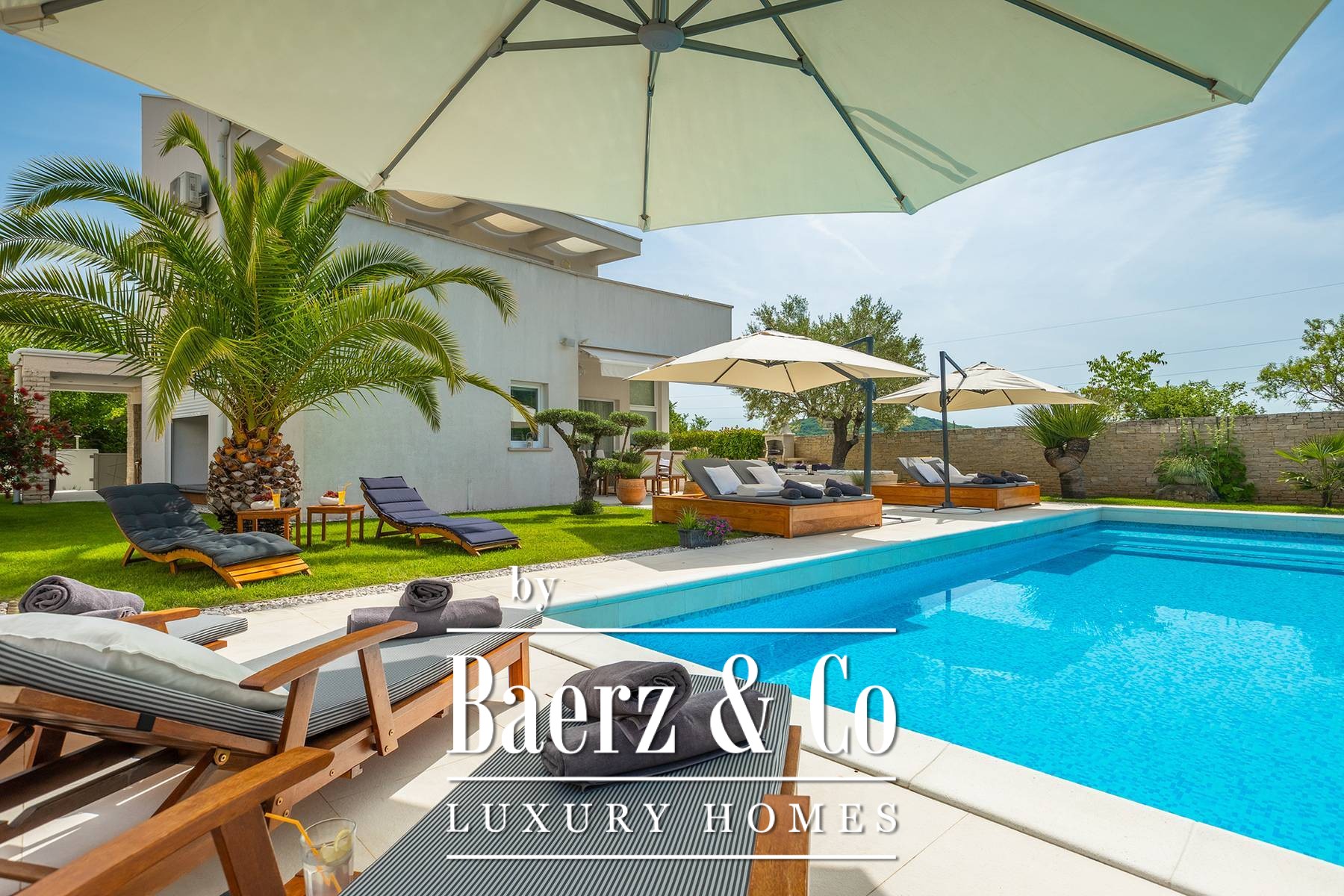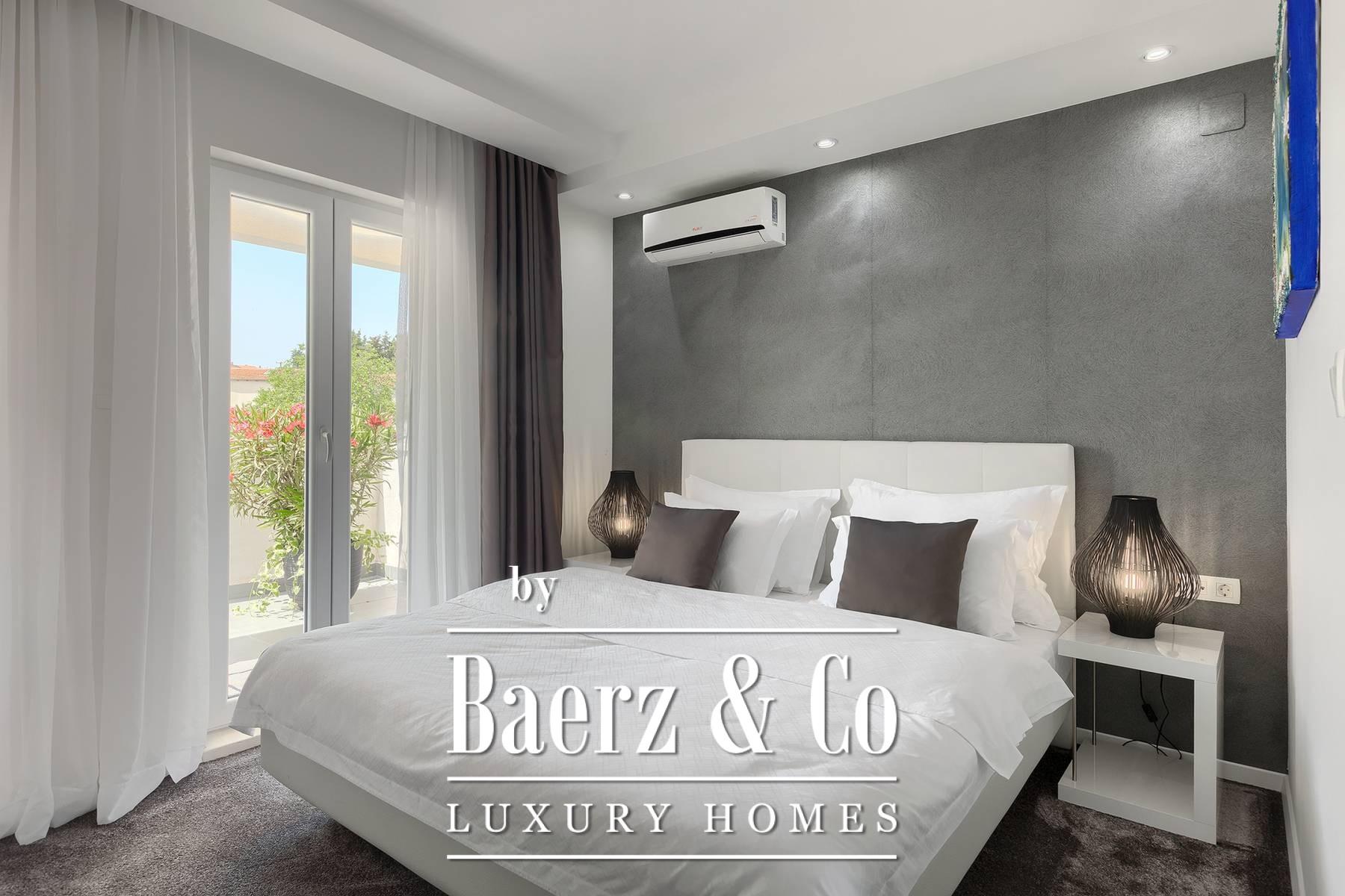 landscaped and maintained with an irrigation system. There is also a barbecue in the garden. On the first floor there are two bedrooms with private bathrooms and a spacious terrace that unites the rooms. The villa's underfloor heating is electric, it is also air-conditioned. It is sold in a furnished condition. Electric blinds. Complete villa sound system. Private parking for 2 cars and video surveillance. The villa is owned by the company, which is an additional benefit to the future buyer. It is used for tourist purposes, has a 5* rating and is occupied throughout the entire tourist season, and due to its characteristics, it can be rented throughout the year. We are at your disposal for more additional information.