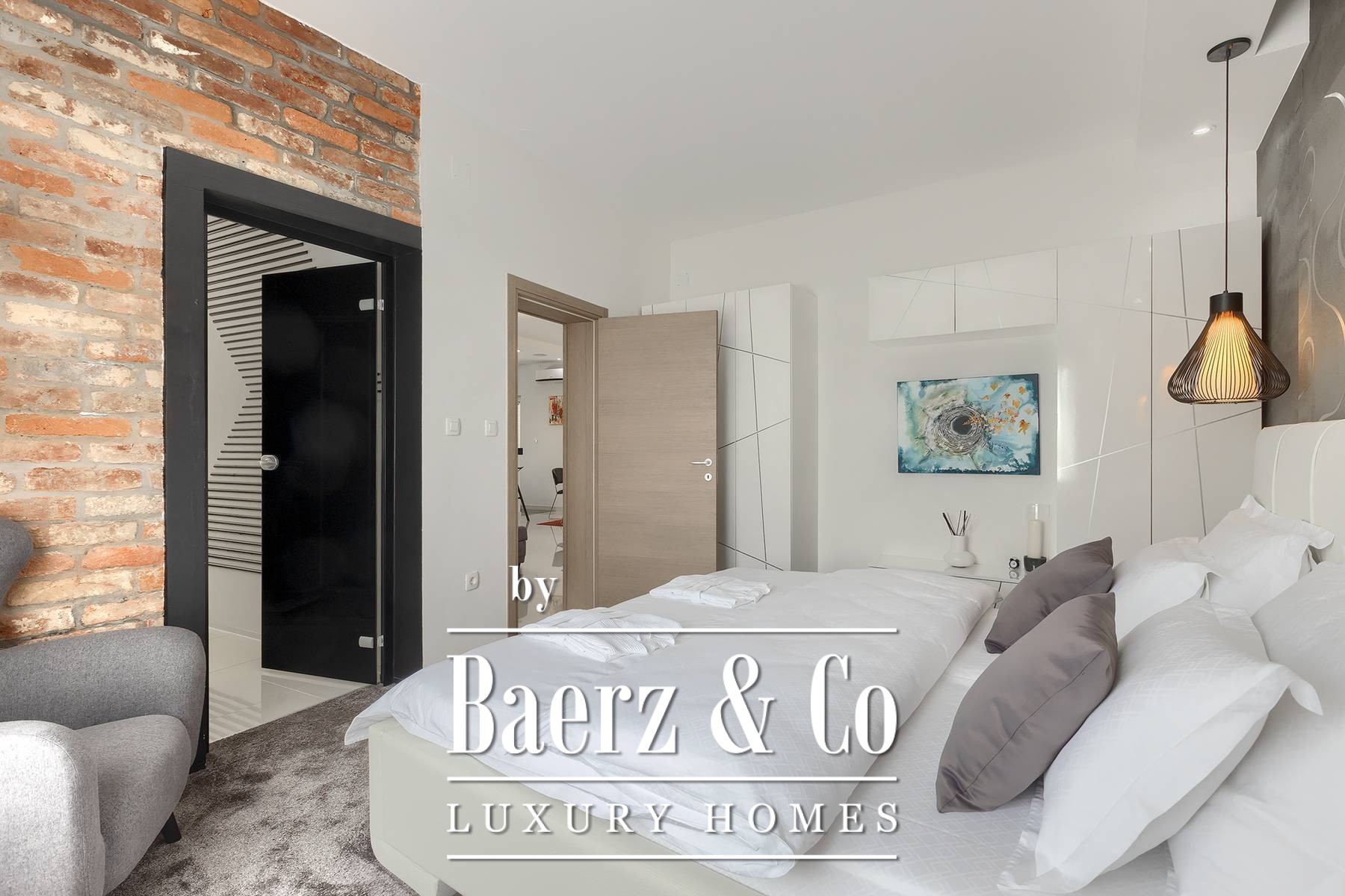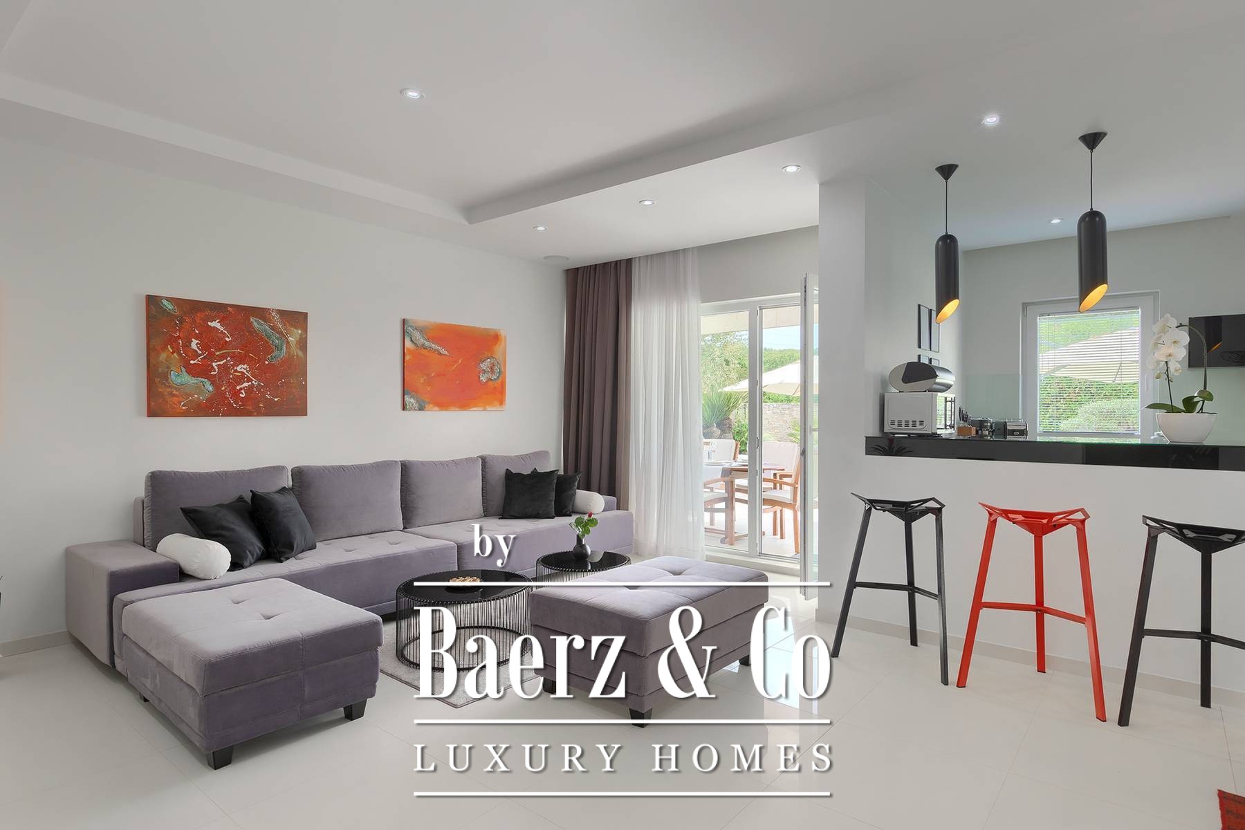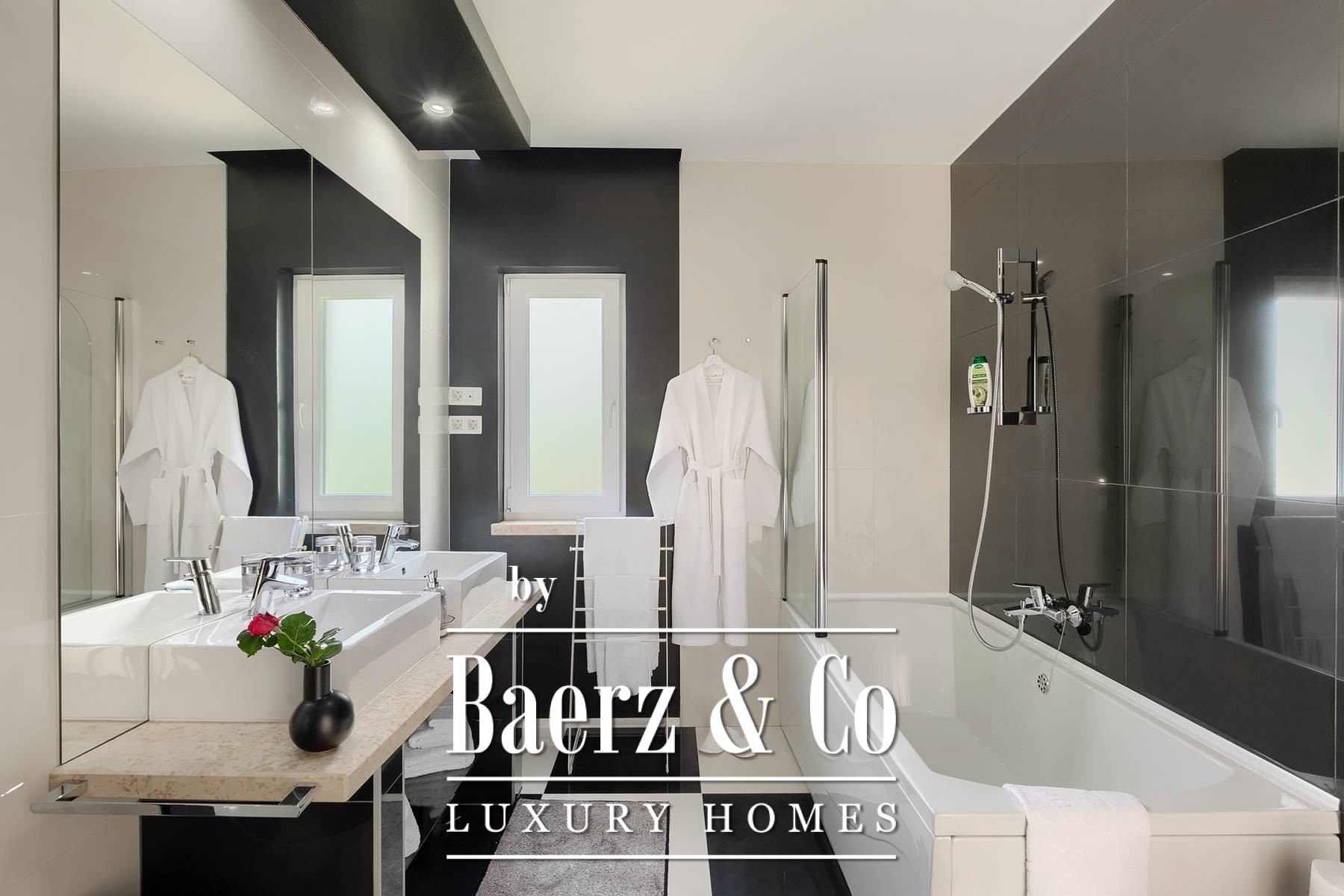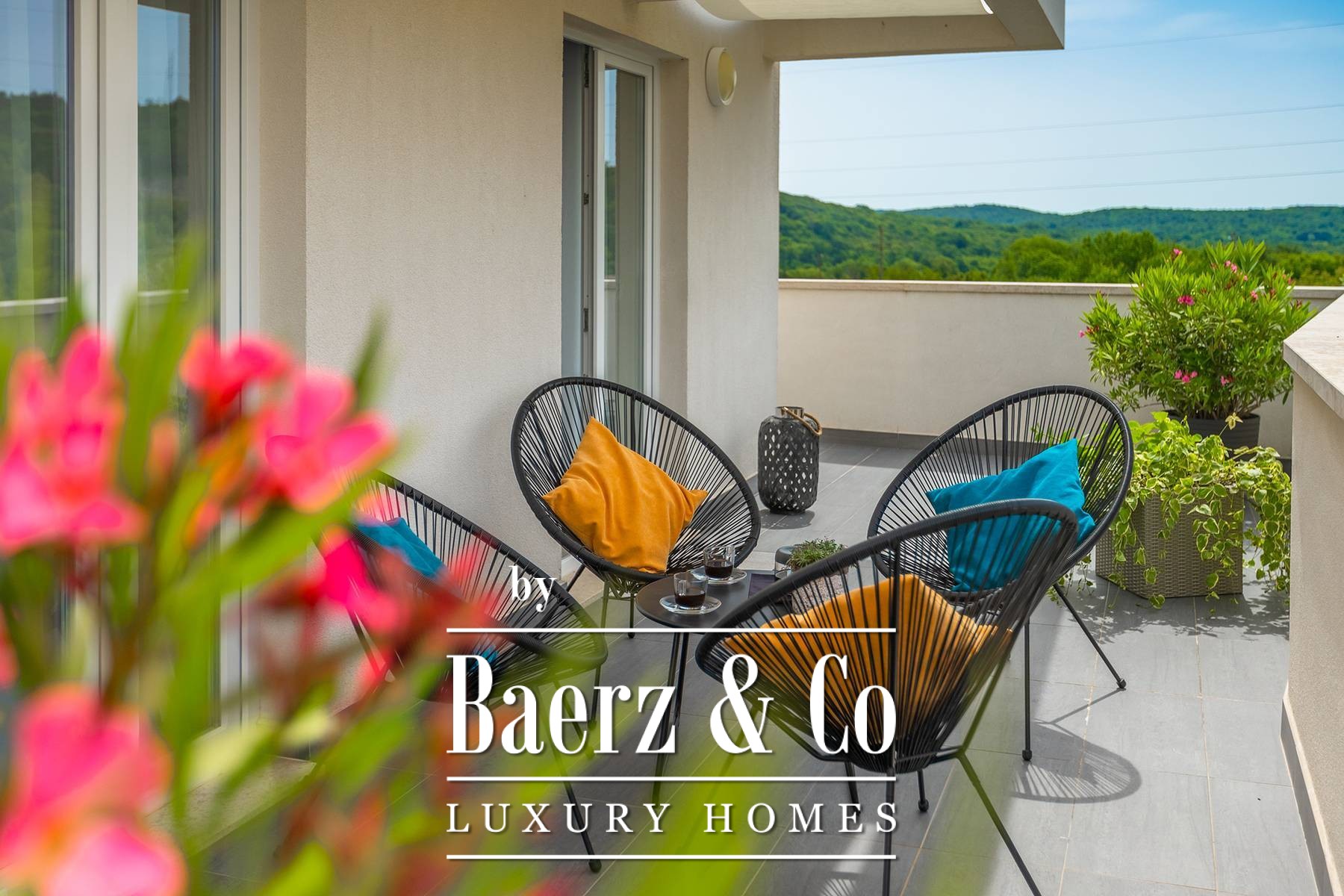 landscaped and maintained with an irrigation system. There is also a barbecue in the garden. On the first floor there are two bedrooms with private bathrooms and a spacious terrace that unites the rooms. The villa's underfloor heating is electric, it is also air-conditioned. It is sold in a furnished condition. Electric blinds. Complete villa sound system. Private parking for 2 cars and video surveillance. The villa is owned by the company, which is an additional benefit to the future buyer. It is used for tourist purposes, has a 5* rating and is occupied throughout the entire tourist season, and due to its characteristics, it can be rented throughout the year. We are at your disposal for more additional information.