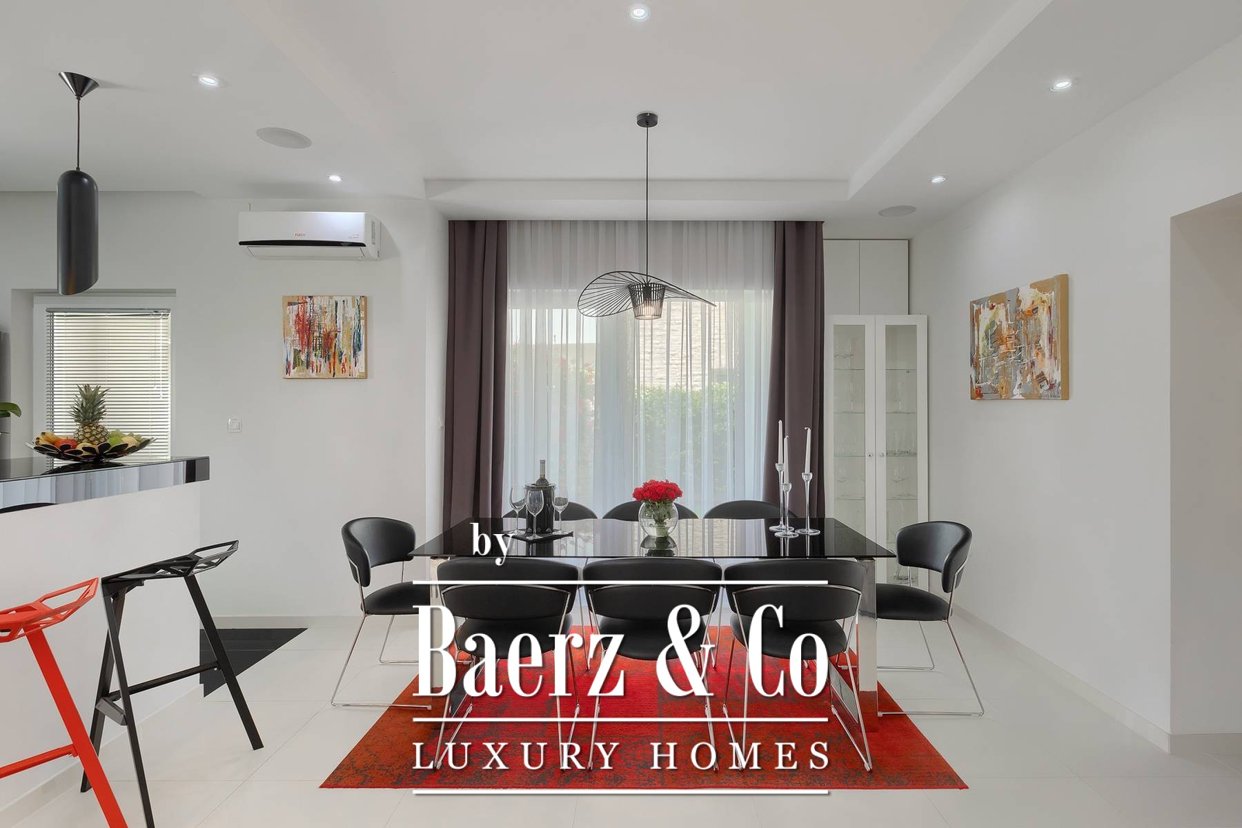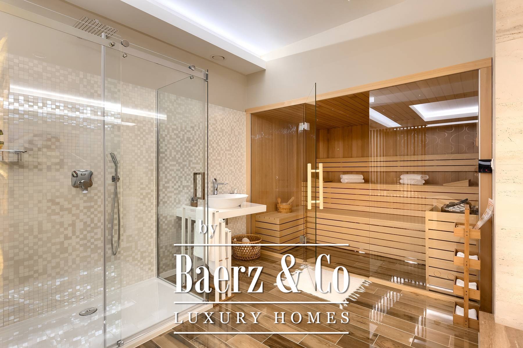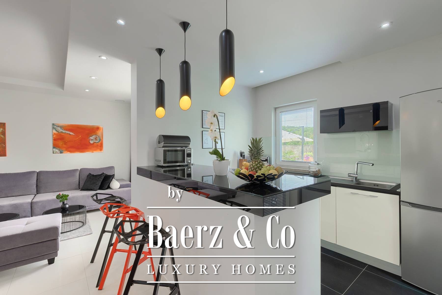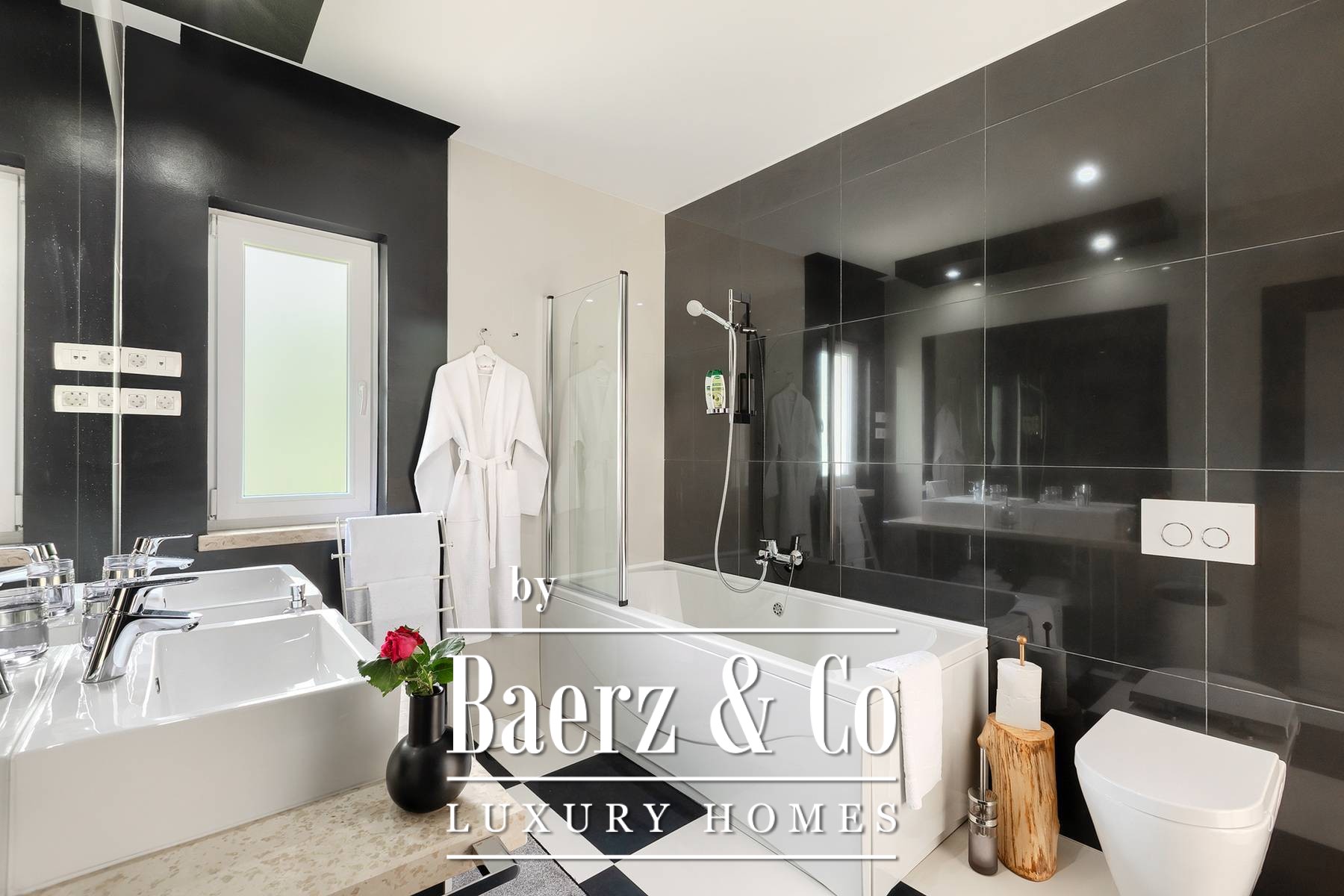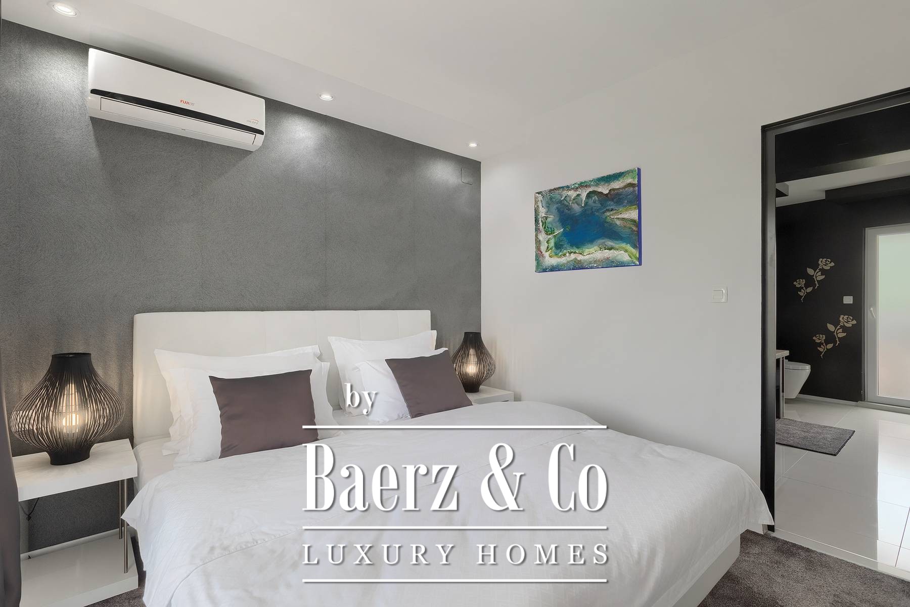 landscaped and maintained with an irrigation system. There is also a barbecue in the garden. On the first floor there are two bedrooms with private bathrooms and a spacious terrace that unites the rooms. The villa's underfloor heating is electric, it is also air-conditioned. It is sold in a furnished condition. Electric blinds. Complete villa sound system. Private parking for 2 cars and video surveillance. The villa is owned by the company, which is an additional benefit to the future buyer. It is used for tourist purposes, has a 5* rating and is occupied throughout the entire tourist season, and due to its characteristics, it can be rented throughout the year. We are at your disposal for more additional information.