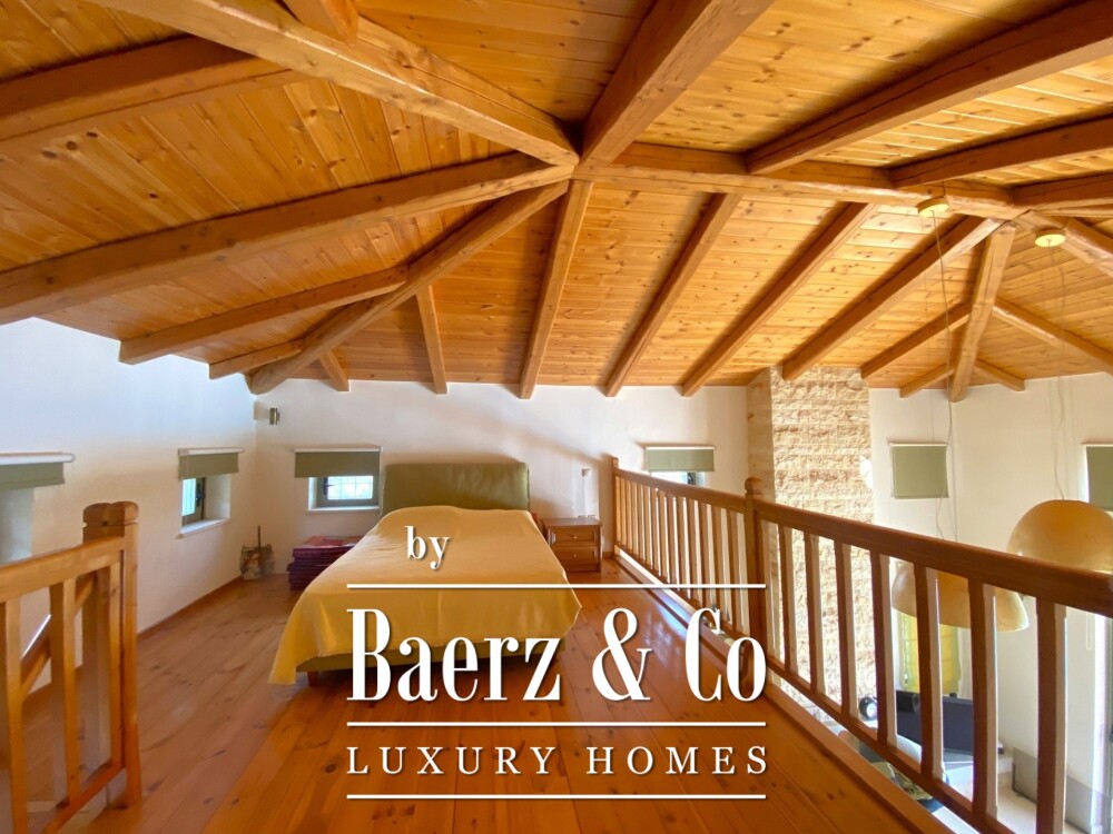 Vrijstaande woning Salanti vormt een toevluchtsoord op slechts 240 meter van een rustige kustlijn en vangt het kalme ritme van het Griekse kustleven. Deze stenen villa, met 175 m² zorgvuldig opgebouwde leefruimte, getuigt van een subtiele harmonie tussen warmte en precisie. De lichte woon- en eetkamer grenst aan een doordachte keuken, perfect voor samenzijn en dagelijkse rituelen. Drie ruime slaapkamers beschikken elk over een eigen badkamer; de royale zolder met eiken vloeren en zichtbare houten balken biedt de mogelijkheid voor een vierde kamer onder het gewelfde dak.