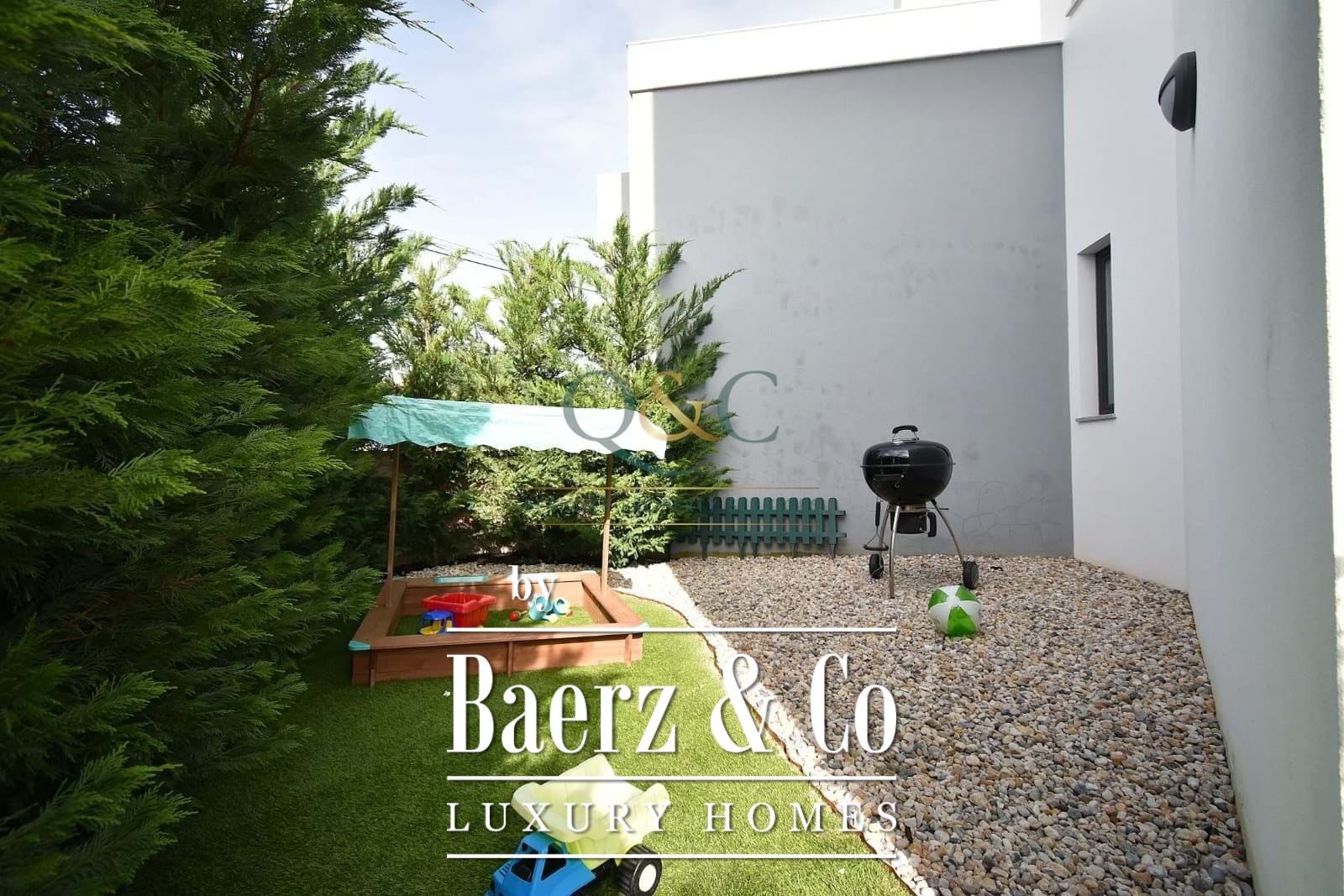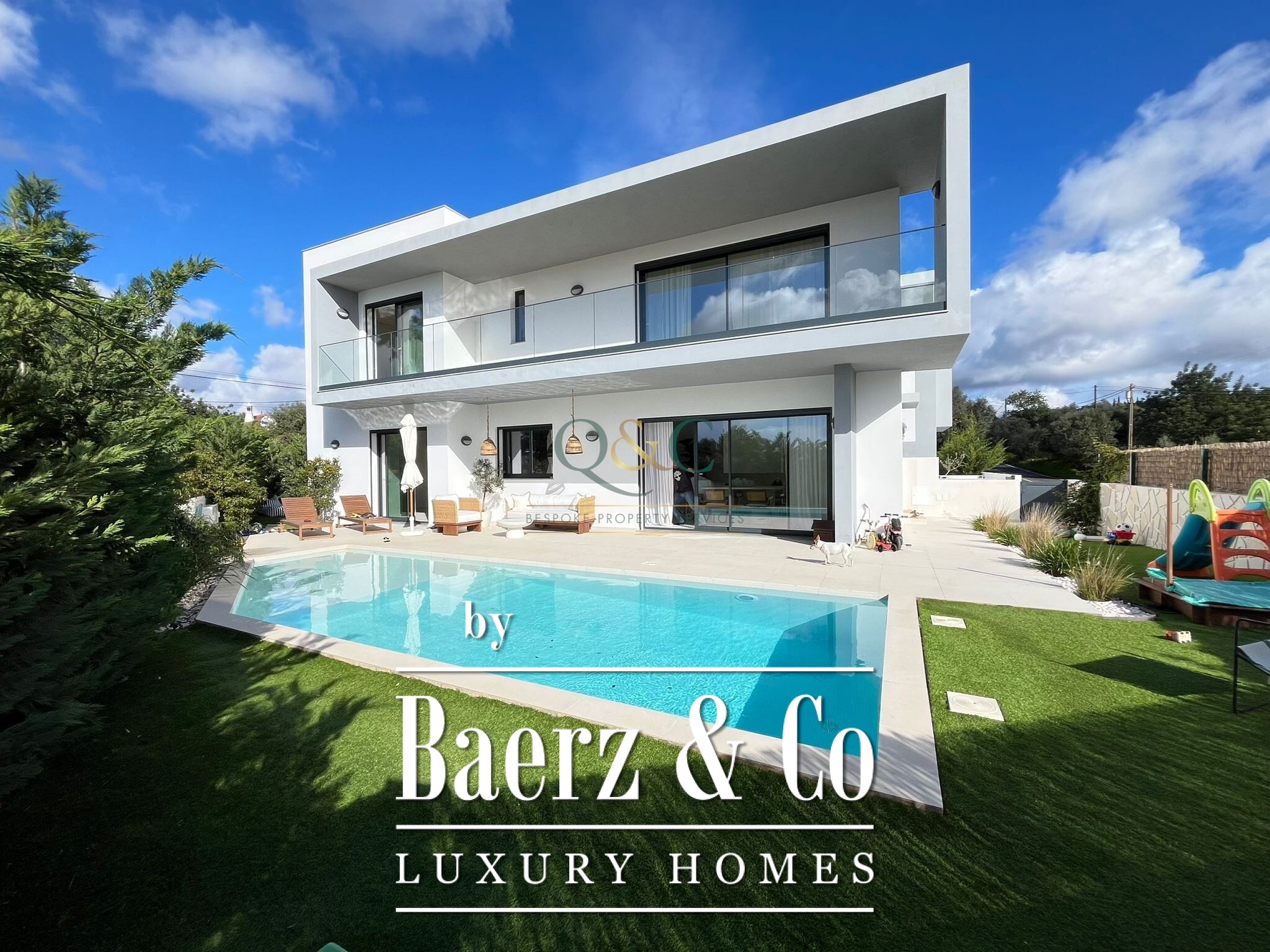 Deze eigentijdse woning in Santa Bárbara de Nexe kenmerkt zich door een verfijnde architecturale stijl, met vier slaapkamers en drie badkamers verspreid over een woonoppervlakte van 273 m². Bij aankomst bieden twee privéparkeerplaatsen in het souterrain directe en discrete toegang tot het hart van de woning.