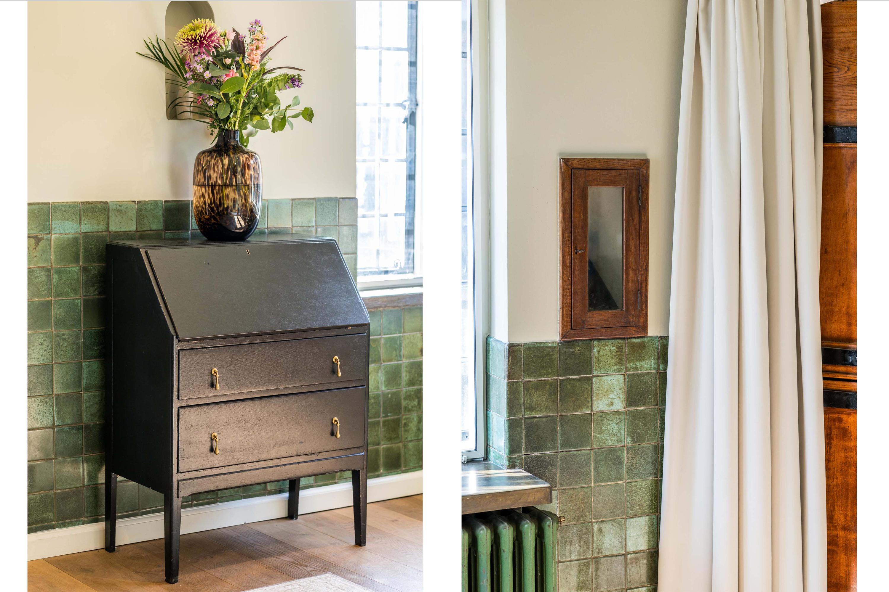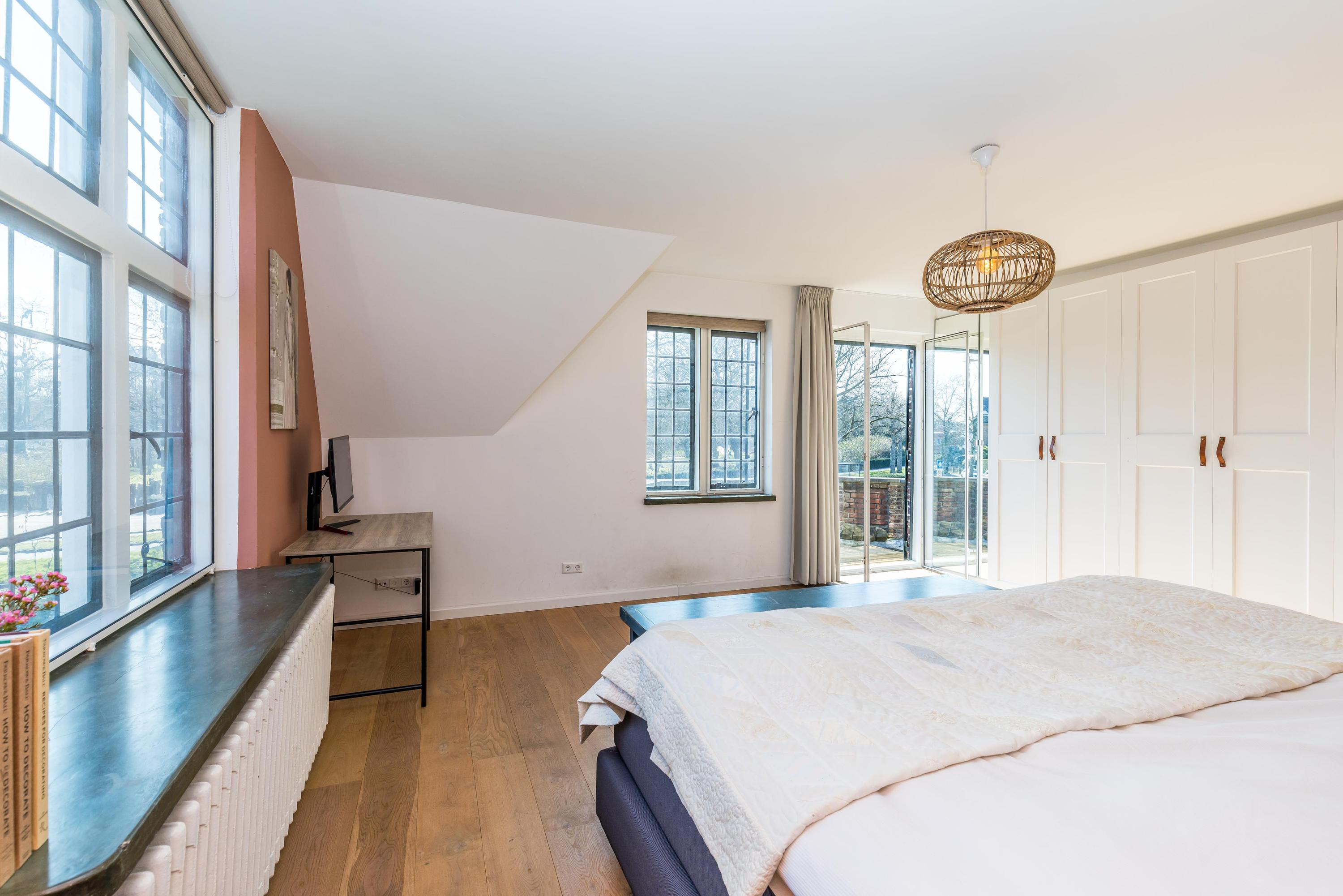 1e Verdieping: Prachtige en lichte overloop met eveneens originele wandtegeltjes. Er bevinden zich maar liefst 4 slaapkamers op deze verdieping en tevens een waskamer, een separaat toilet en een verrassend ruime en zeer smaakvol ingerichte badkamer voorzien van ligbad, inloopdouche en wastafelmeubel. De hoofdslaapkamer is om van te dromen, je voelt je de koning te rijk qua ruimte, maar ook vanwege het charmante balkon dat te bereiken is d.m.v. openslaande deuren. Je waant je in de jaarlijkse koninklijke balkonscene terwijl je mijmert over het sublieme uitzicht over het Julianapark.