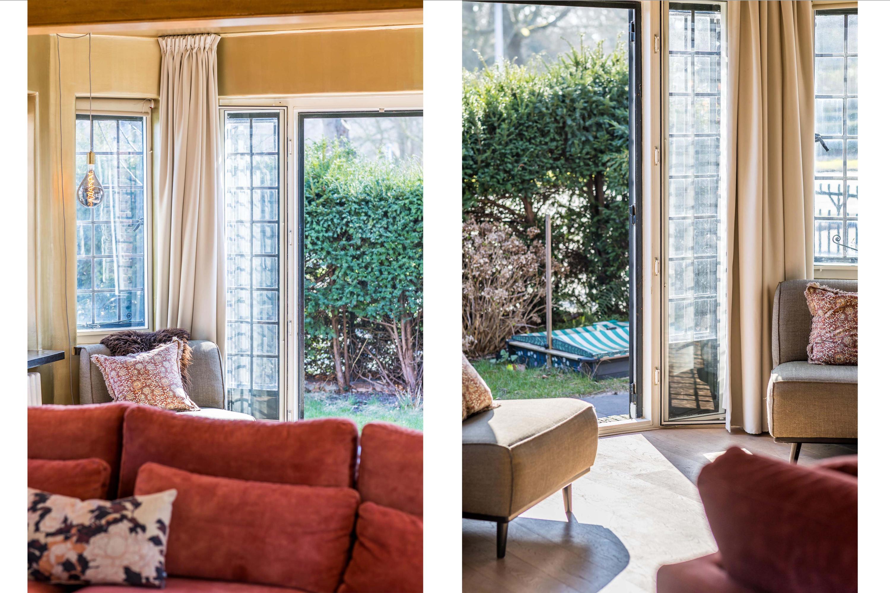 - opvallend licht huis vanwege de vele en grote raampartijen