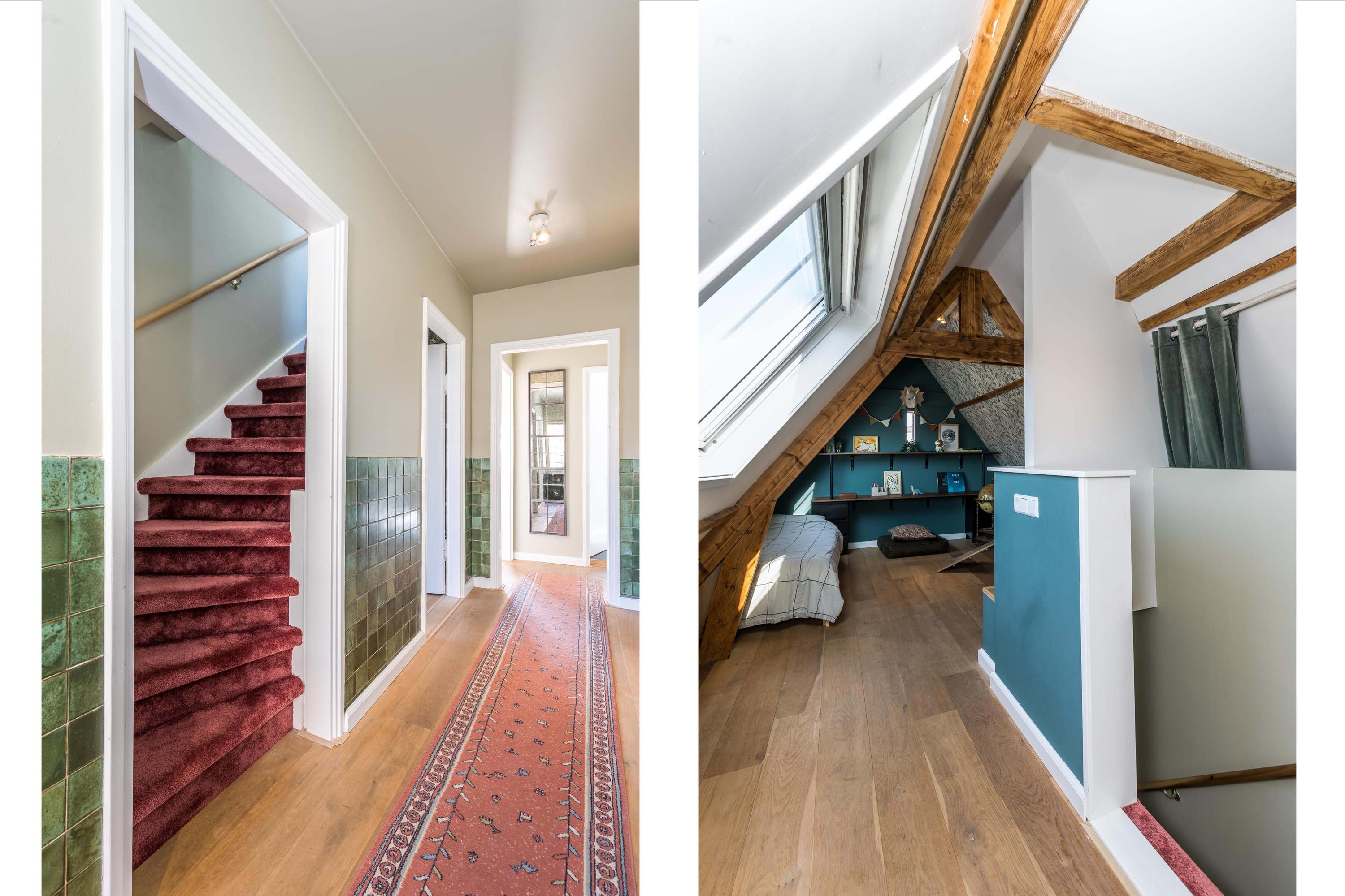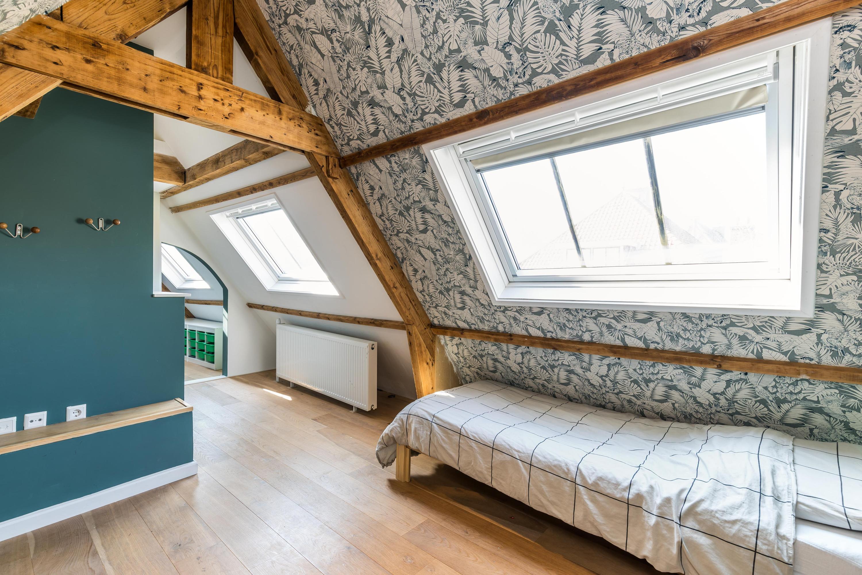 2e Verdieping: Ook deze verdieping is weer heel verrassend en speels ingedeeld. Met misschien wel een van de leukste kinderkamers die je maar kunt verzinnen, dakspant in het zicht, leuke verstopplekjes en genoeg ruimte om te spelen. In werkelijkheid is deze verdieping groter dan de plattegrond doet vermoeden. Het oppervlak wordt op papier door de schuine dakvlakken ‘gestraft’, terwijl er heel veel bruikbare ruimte is. Er bevindt zich tevens een badkamer met toilet, douche en wastafel.