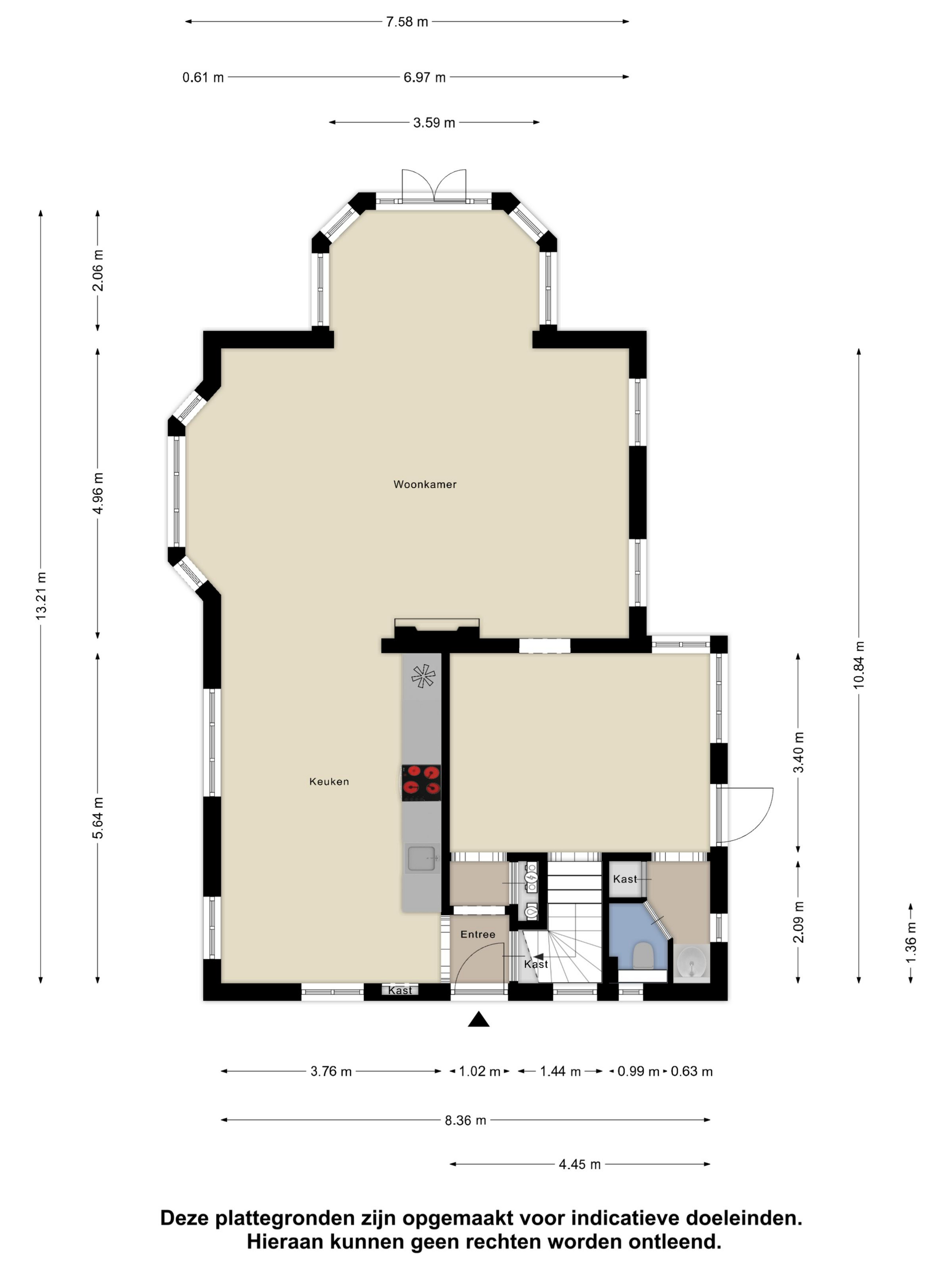 De gebruiksoppervlakte van de woning is opgemeten conform de branchebrede meetinstructie (BBMI). De BBMI is gebaseerd op de NEN2580. De BBMI is bedoeld om een meer eenduidige manier van meten toe te passen voor het geven van een indicatie van de gebruiksoppervlakte. De meetinstructie sluit verschillen in meetuitkomsten niet volledig uit, door bijvoorbeeld interpretatieverschillen, afrondingen of beperkingen bij het uitvoeren van de meting.