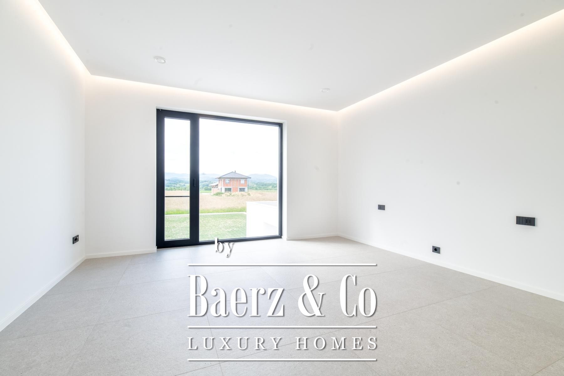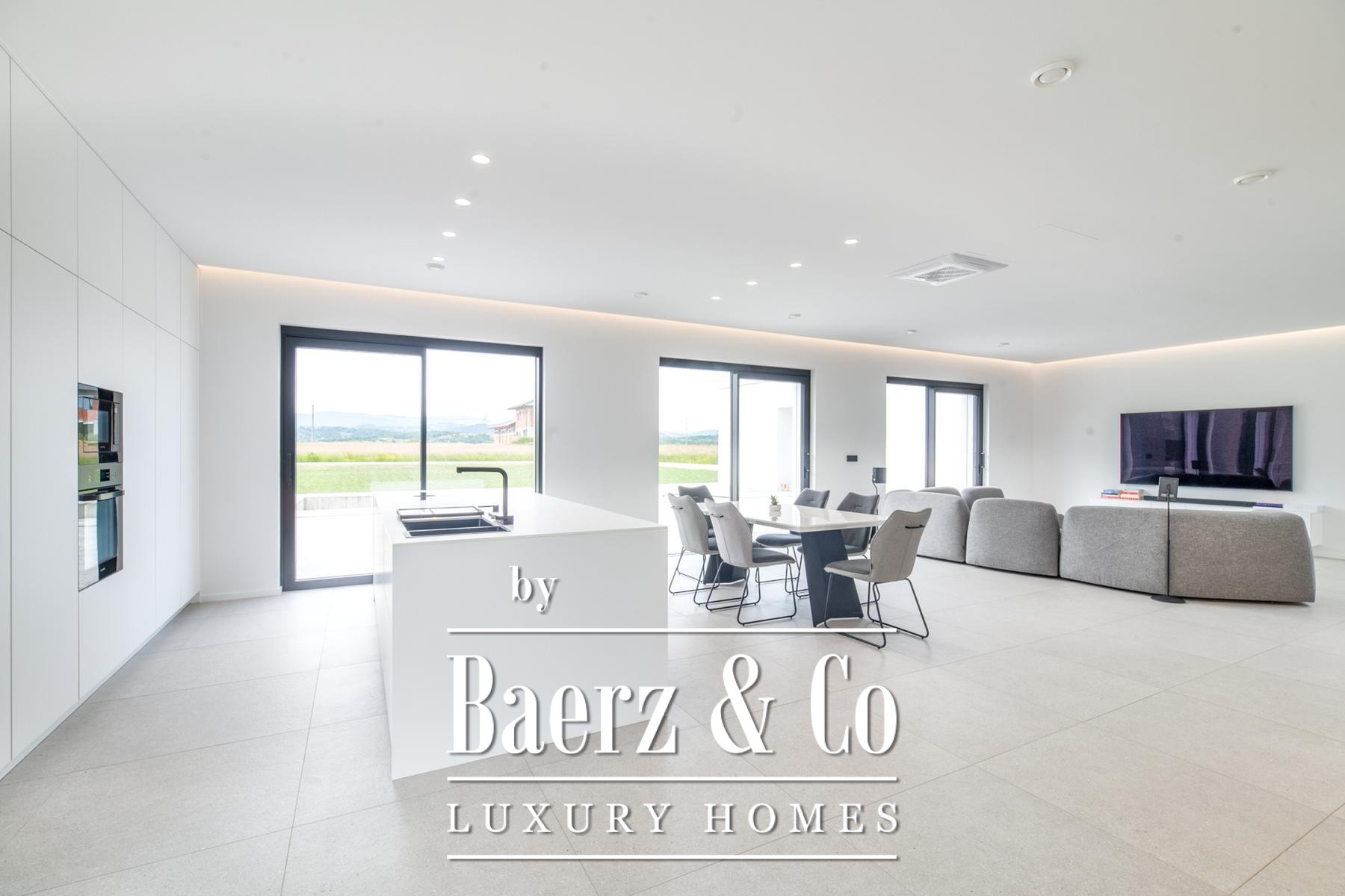 - Spacious open-space living room (85 m²) with a high-end kitchen and dining area, with direct access to a large garden terrace and swimming pool