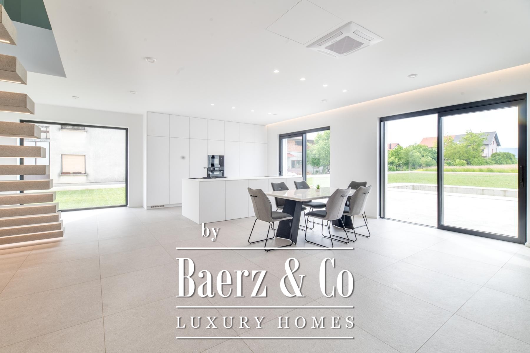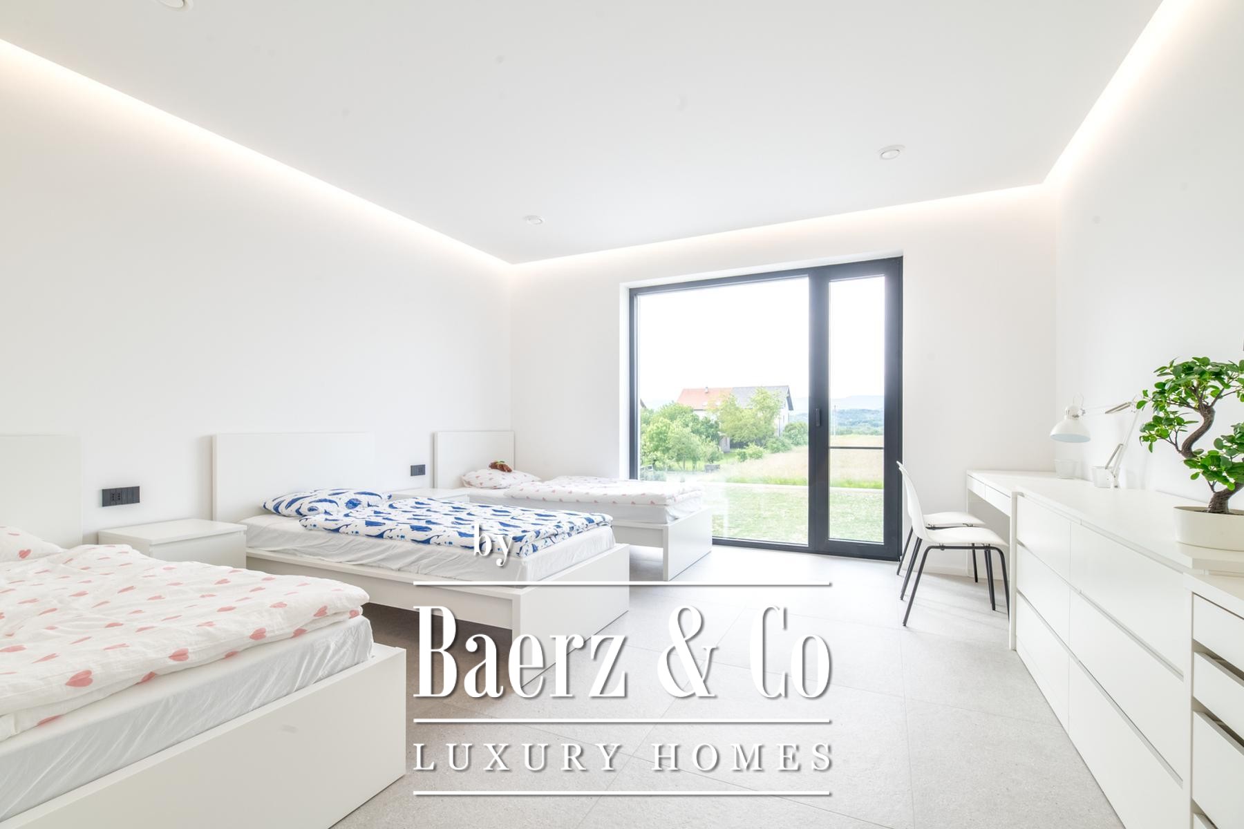 Zagreb, Sesvete - For sale: a top-tier, architecturally designed modern villa with a total area of 390 m², located on a beautifully landscaped 2,000 m² plot. The property includes a carefully planned yard, a swimming pool, and a wide range of premium features. Fully equipped with state-of-the-art technology, the villa is energy-independent thanks to its photovoltaic system, and has been designed to provide maximum comfort with minimal maintenance.Layout and Floor PlanGround Floor: