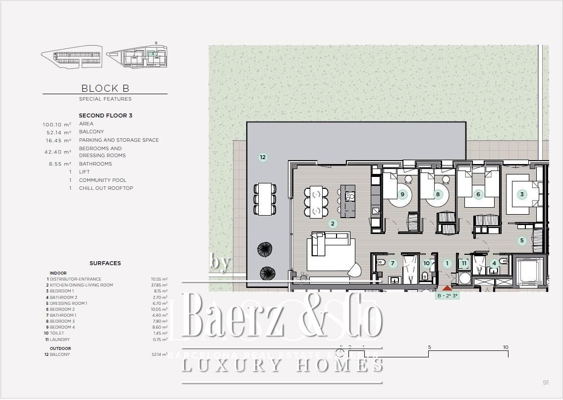 LASOSE is delighted to present a fabulous Calablanca Residences, an exclusive collection of sustainable luxury homes located in La Plana, one of the most desirable areas of Sitges. Built under the prestigious Passivhaus energy-efficiency standard, this development offers a lifestyle where comfort, elegance and wellbeing come together in perfect harmony.. Comprising 20 premium apartments across two buildings, Calablanca has been designed for maximum light, space and connection with nature. Most residences exceed 100 m² and feature open-plan living areas, large sea-facing terraces and exterior bedrooms flooded with natural light. Each home includes custom-made storage solutions and high-performance insulation and glazing, ensuring complete acoustic and thermal comfort all year round.. Passivhaus technology allows residents to enjoy up to 75% savings on heating and cooling, thanks to exceptional insulation and a mechanical ventilation system with heat recovery that keeps indoor air fresh and pure at all times. Living here means fewer energy costs, healthier interiors and a quieter, more serene home environment.. The communal areas rival those of a boutique resort. On the ground floor, a stunning swimming pool is set within a Mediterranean garden designed with native plants such as lavender, grasses and cypresses. Walking paths and shaded corners offer peaceful places to relax outdoors. On the rooftop of each building,