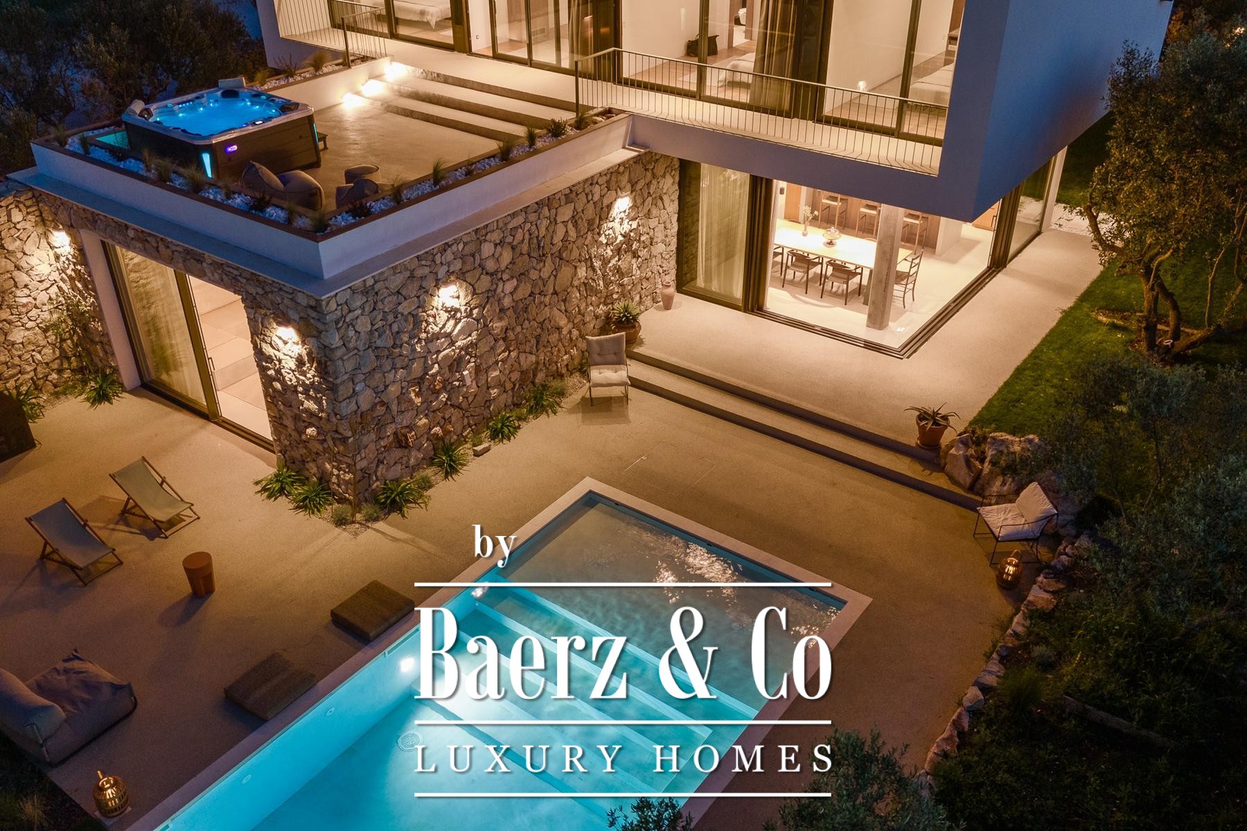 kitchen and an outdoor dining area.The entire garden is enriched with Mediterranean greenery, olive trees and herbs, creating the impression of true harmony with nature.The villa is technically sophisticated and includes an underfloor heating system, security cameras, high-speed wireless internet (Starlink), a smart management system and a charger for electric vehicles. A garage with automatic doors offers accommodation for two cars, while additional parking spaces ensure carefree reception of guests.Thanks to its luxurious equipment, exceptional location and top-notch amenities, this villa represents an excellent opportunity for both personal enjoyment and investment. It is currently successfully rented in the segment of highly categorized tourism, with the possibility of a complete management and reception service, which further confirms its investment potential. The perfect balance of privacy, comfort and natural beauty - an ideal opportunity for those looking for a quality living space with a touch of Mediterranean luxury.For all other information and inquiries, we are always at your disposal.