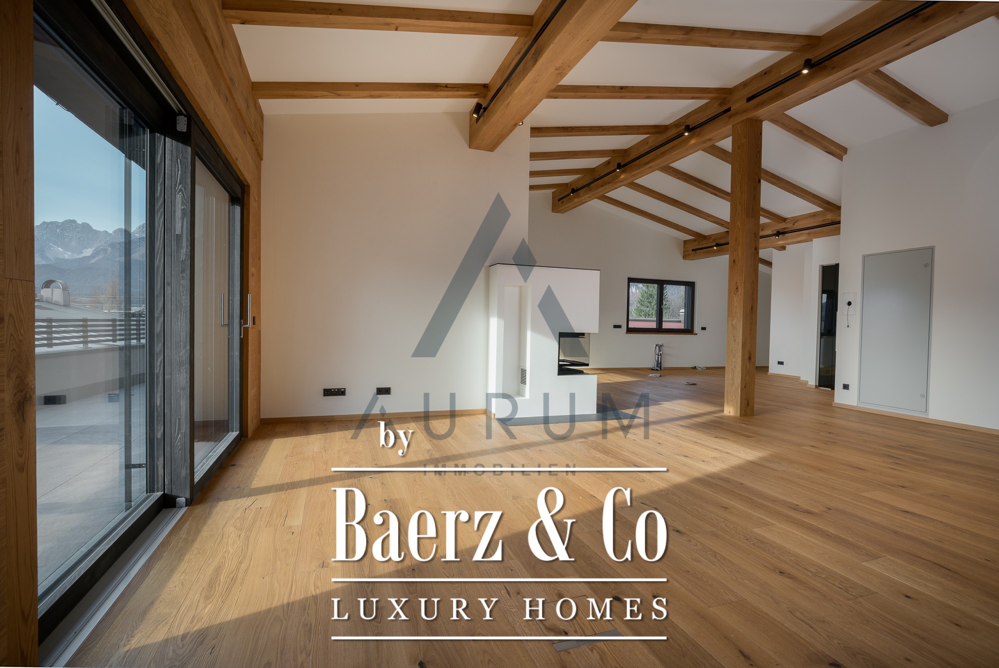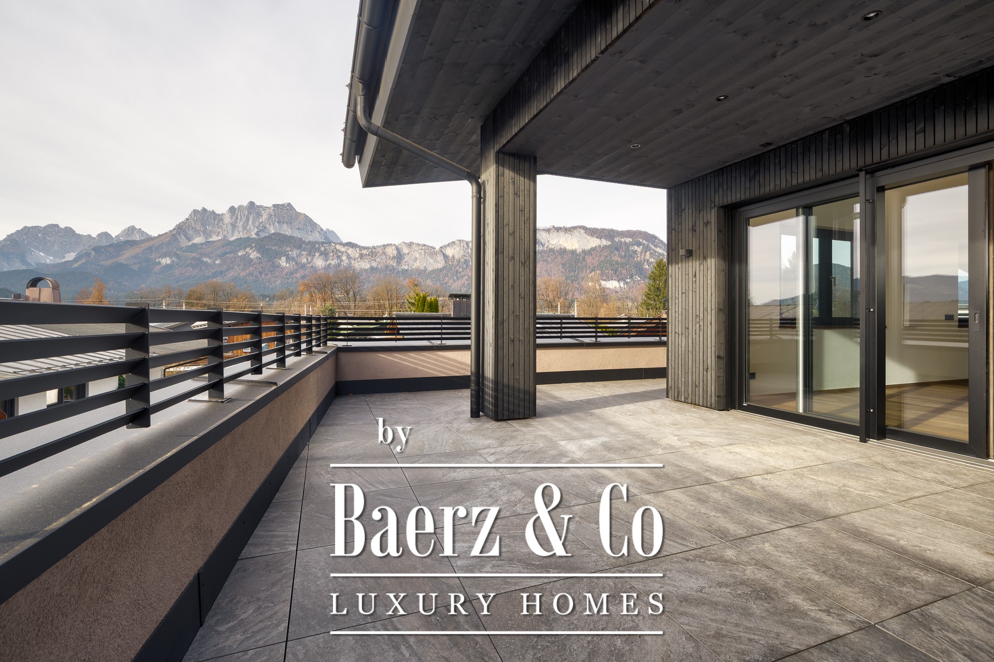Het penthouse in St. Johann in Tirol brengt stedelijke elegantie en berguitzichten op bijzondere wijze samen. Gelegen in een discreet, nieuw gebouw met slechts vijf verfijnde residenties, combineert deze woning van 175 m² een centrale ligging met zorgvuldig vormgegeven privacy. Bij binnenkomst valt direct het overvloedige licht op, dat via grote raampartijen de 110 m² zonnenterras bereikt – hier vormen het ononderbroken uitzicht op de Kitzbüheler Horn en de Wilder Kaiser het decor. Binnen zorgen drie slaapkamers en twee badkamers, gekenmerkt door strakke lijnen en hoogwaardige afwerking, voor dagelijks comfort. Een aparte dressing en vloerverwarming versterken het gevoel van ingetogen luxe. De haard in de woonkamer biedt authentieke warmte. Duurzame bouwmethoden en een hernieuwbaar energiesysteem weerspiegelen een toekomstgerichte visie. Directe lifttoegang, een privéberging en twee overdekte parkeerplaatsen verhogen het woonplezier. U woont hier op steenworp afstand van St. Johann’s bekende voorzieningen – winkels, scholen, medische diensten – te midden van skipistes, langlaufloipes en wandelroutes. Dit penthouse is zowel een toevluchtsoord als een uitkijkpunt over het beste wat het Alpenleven te bieden heeft, en vormt een unieke kans voor wie een luxe penthouse zoekt in St. Johann in Tirol.