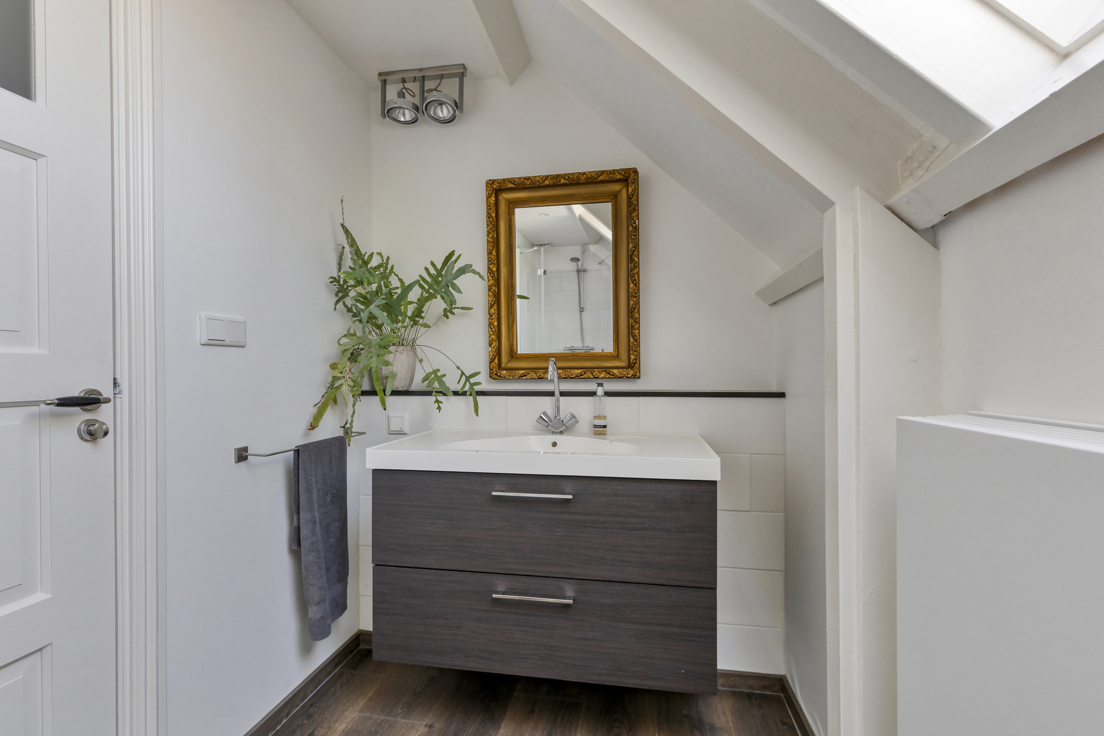 bijkeuken met wasmachine-/drogeraansluiting en een aanrechtblad, wandafwerking stucwerk, tegelvloer, plafond afgewerkt met stucwerk vv. inbouwspots;