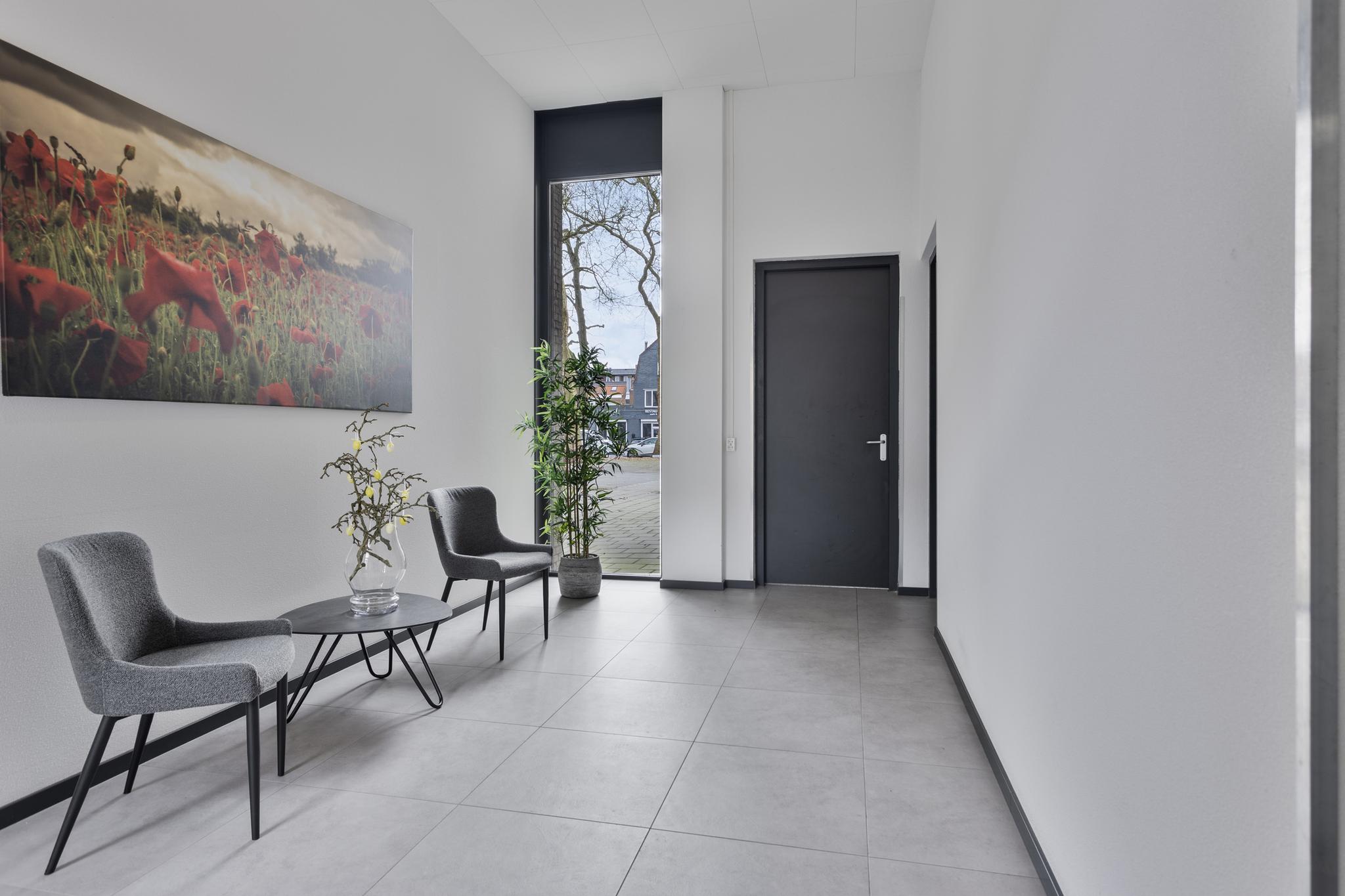 Hal/entree vv. een garderobekast en een intercom, wandafwerking vlak stucwerk, tegelvloer, plafond afgewerkt met vlak stucwerk, taatsdeur naar de woonkamer;