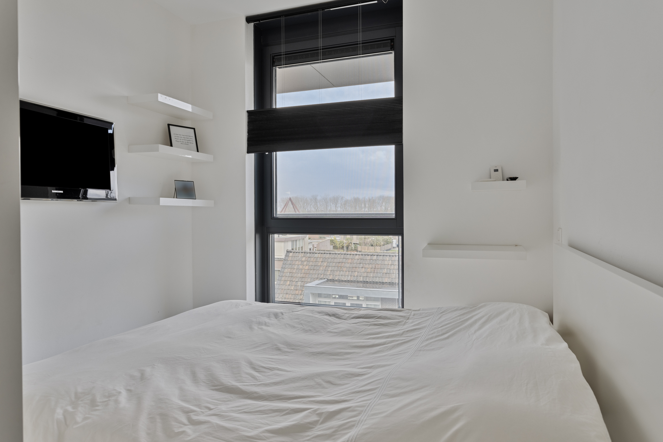 hoofdslaapkamer (ca. 22,5 m²) voorzien van een inbouwkastenwand en airconditioning, wandafwerking vlak stucwerk, vloer afgewerkt met tapijt, plafond afgewerkt met vlak stucwerk, loopdeur naar balkon;