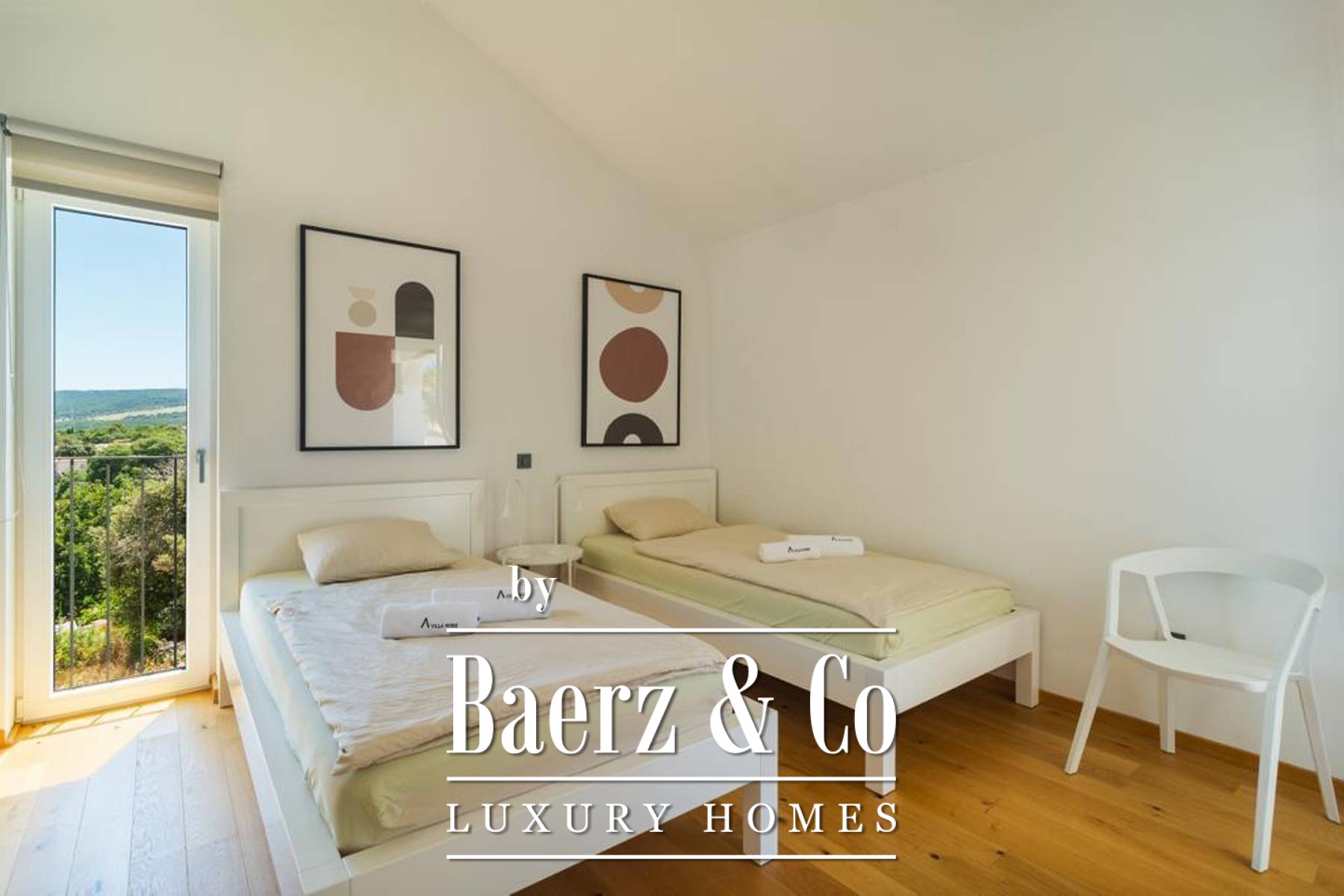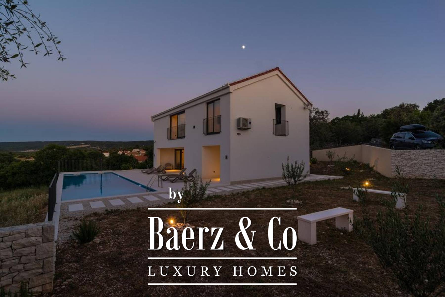 equipment were used during construction and decoration. AJAX smart system - alarm, video surveillance, smoke detectors, water detectors, card entry - all controllable via mobile. POOL 13 x 4 meters has a heat pump and ELECTROLYSIS (eco - natural water chlorination - through salt water). Oak parquet, Jika (Laufen) and Hansgrohe sanitary ware, Wollbett beds, most furniture made to measure.Timeless architecture, modern design, harmoniously planned spaces and the relaxing environment of the outdoor garden make this villa unique and as such a superb opportunity for investment and continued successful tourist rental, categorized with 4*.All other information on request.